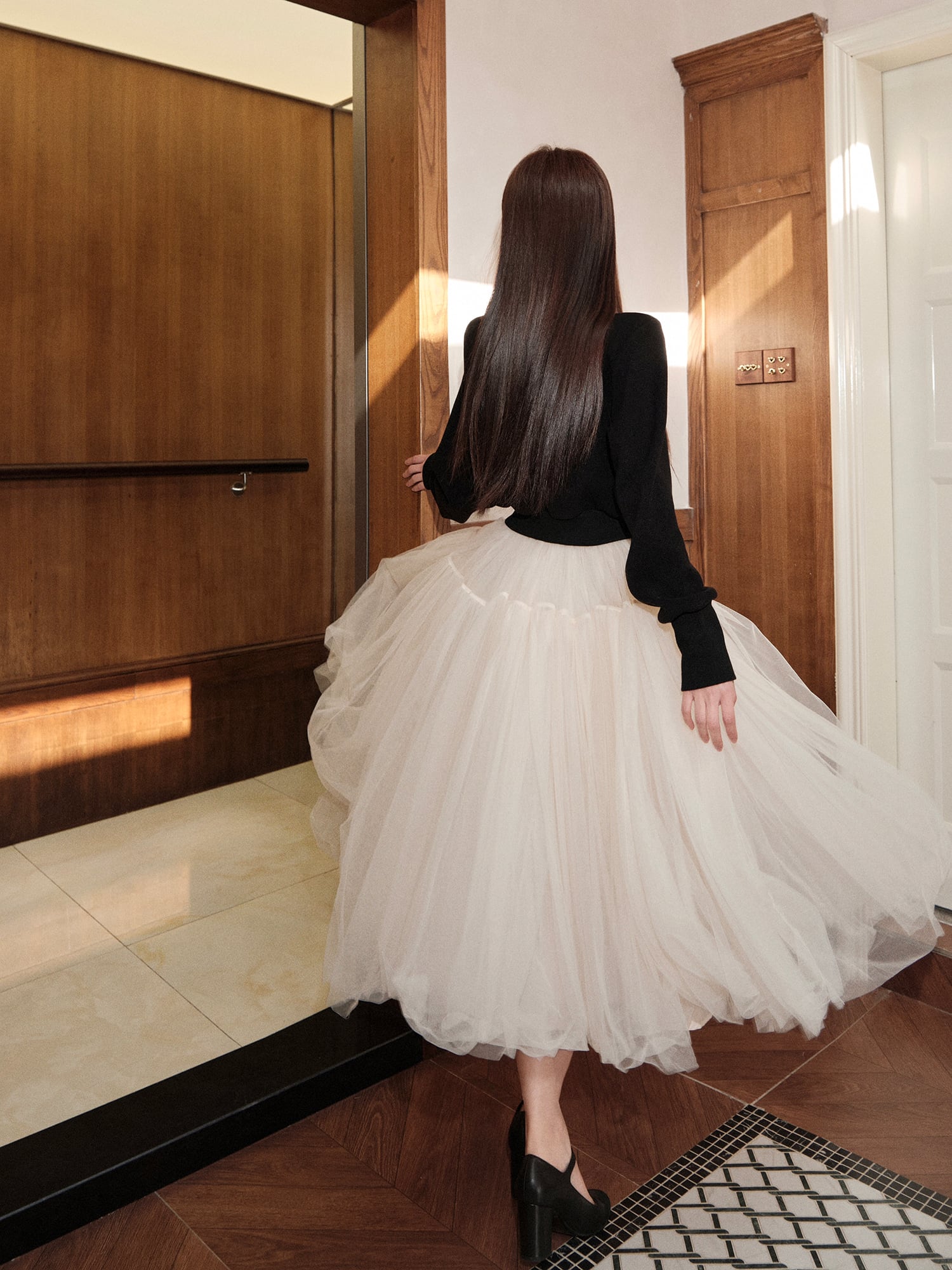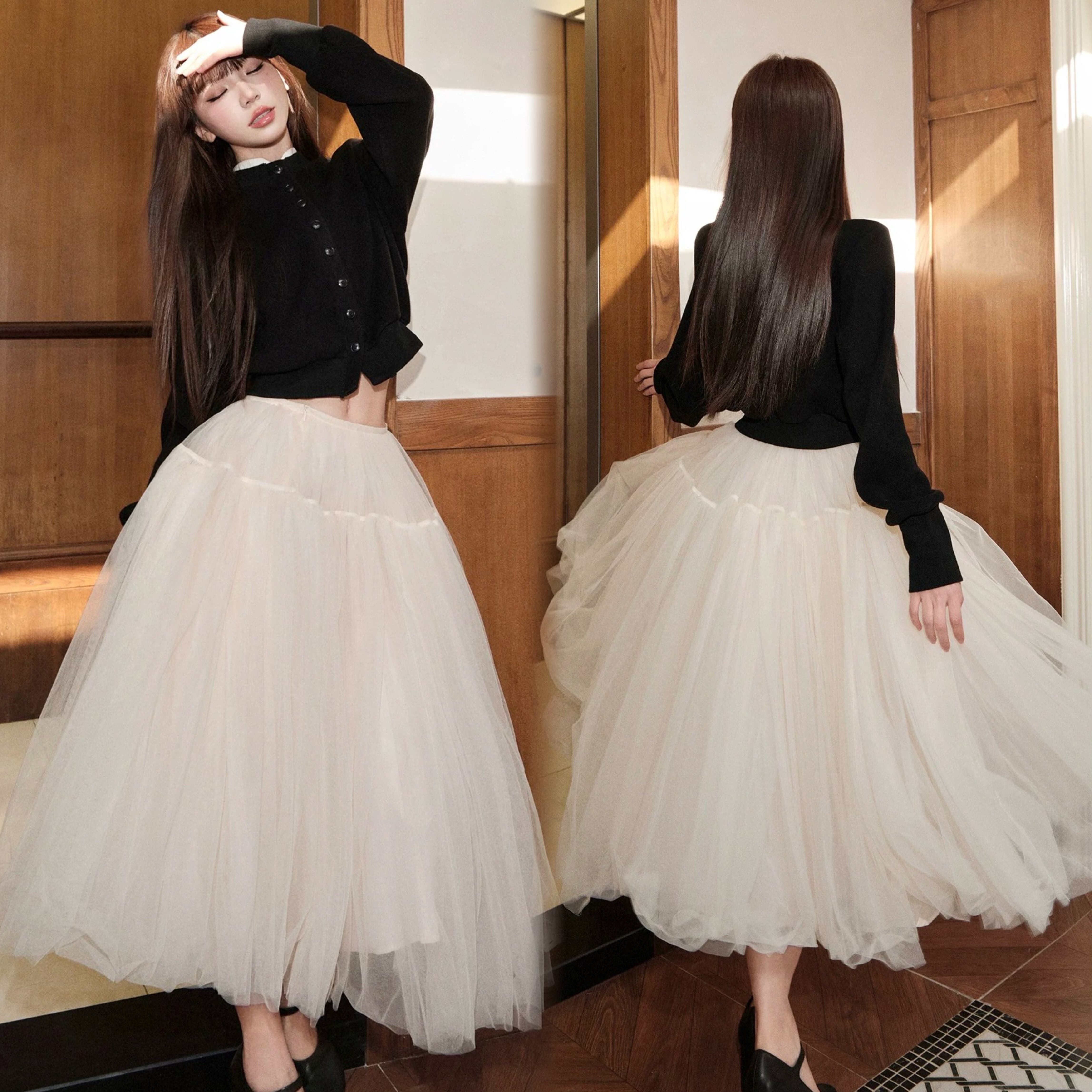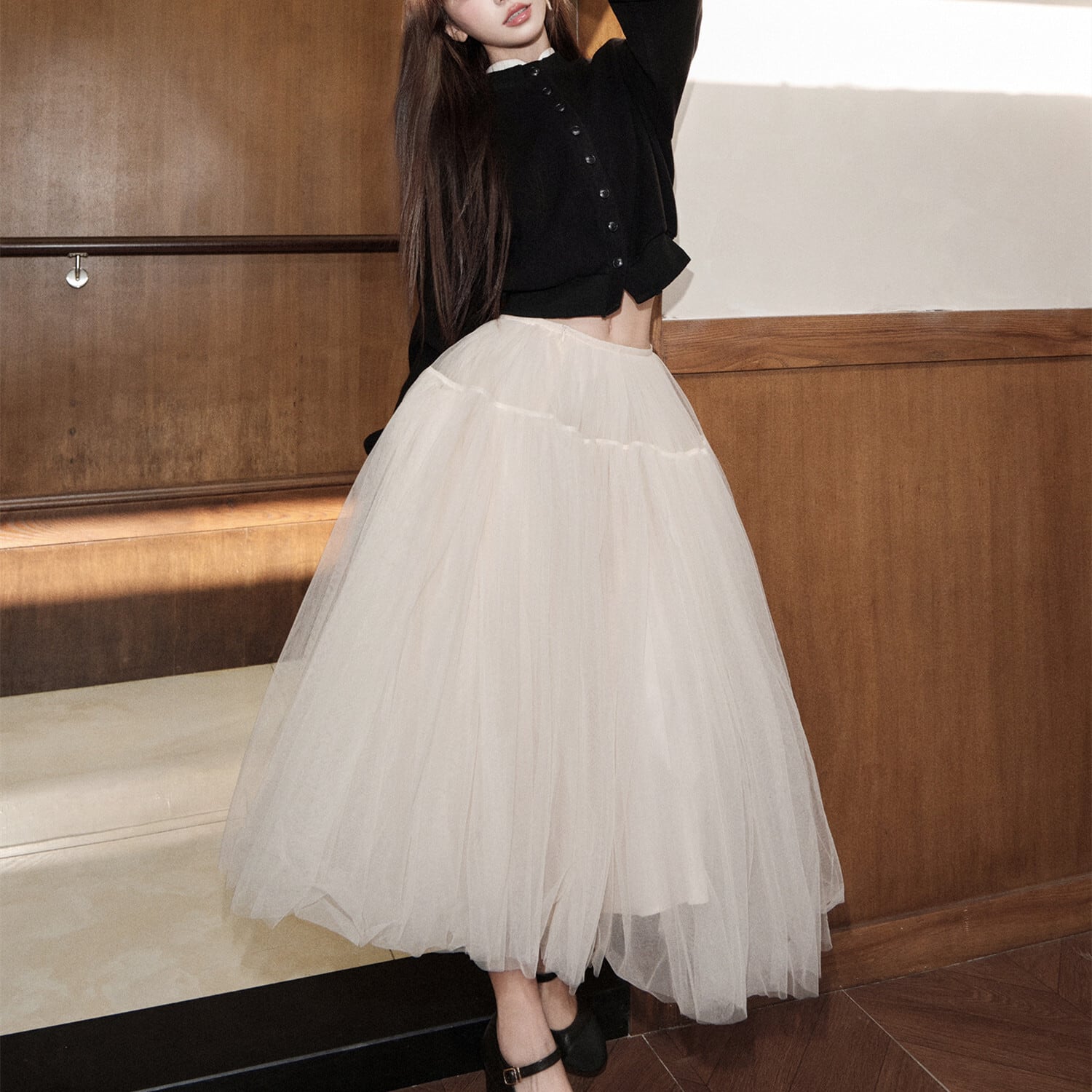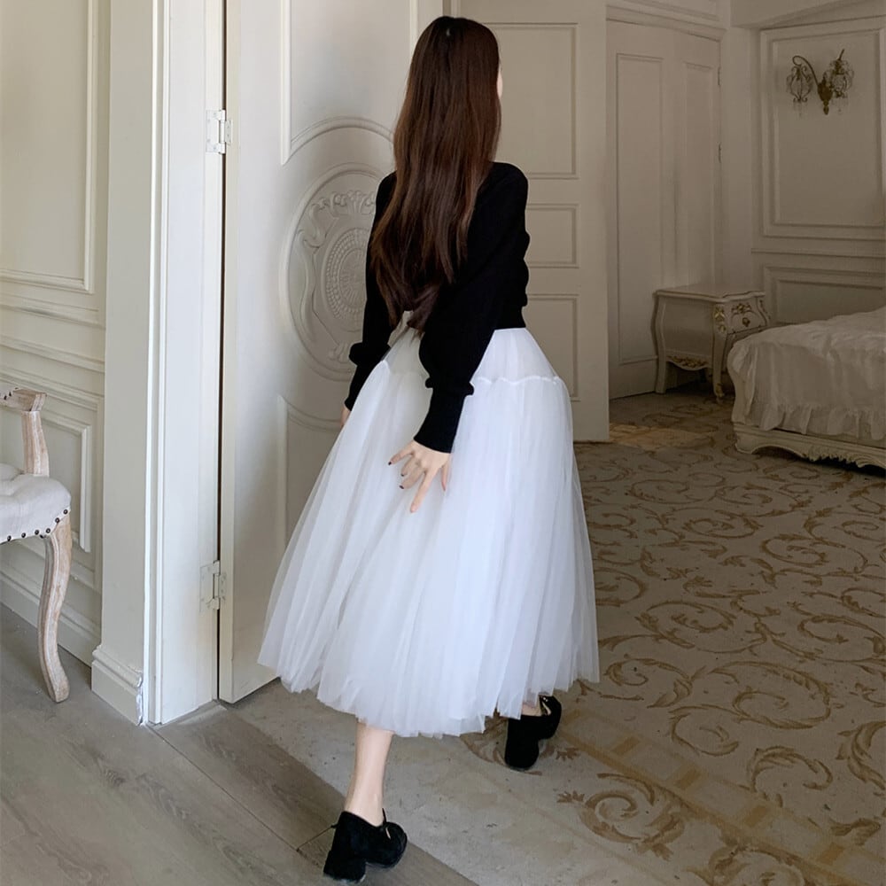 【set】ドッキングカーディガン×チュールスカートセット N3376
