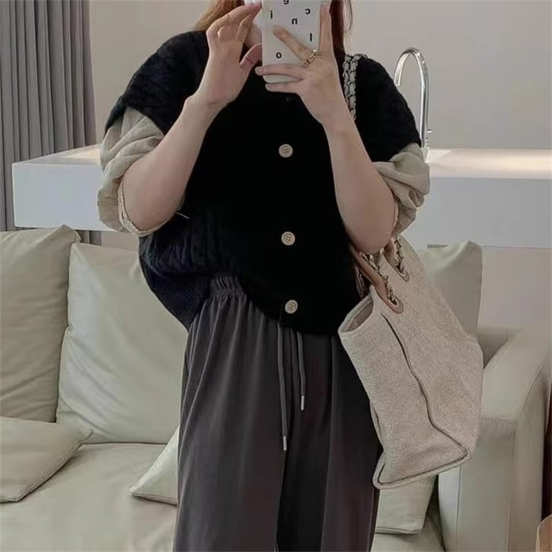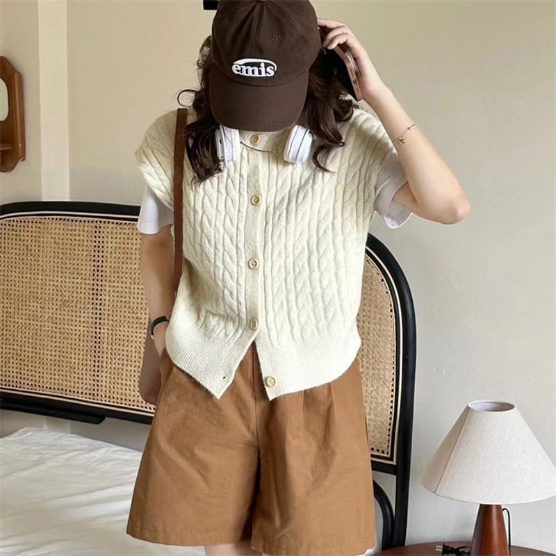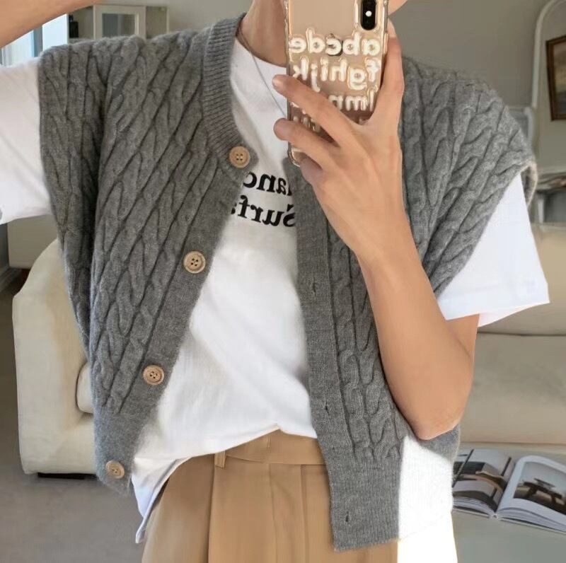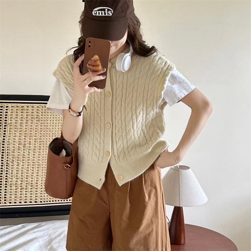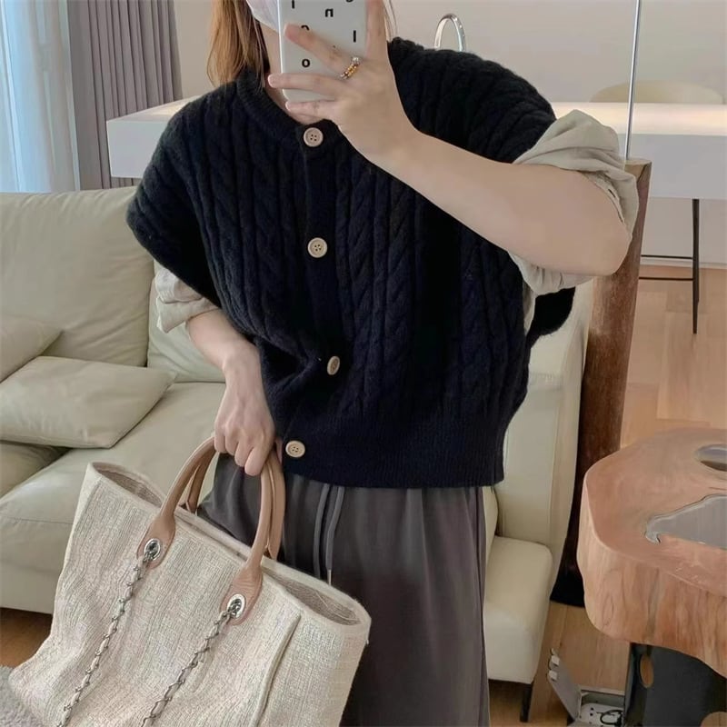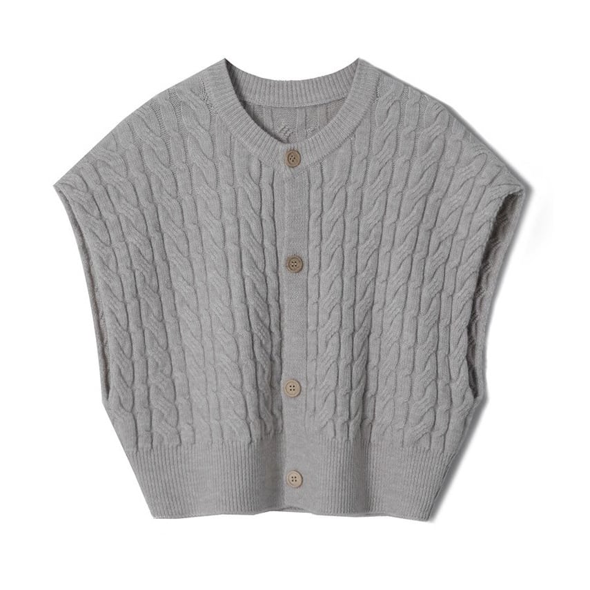 【outer】ヴィンテージショート ケーブル編み ニットベストカーディガンL1031
