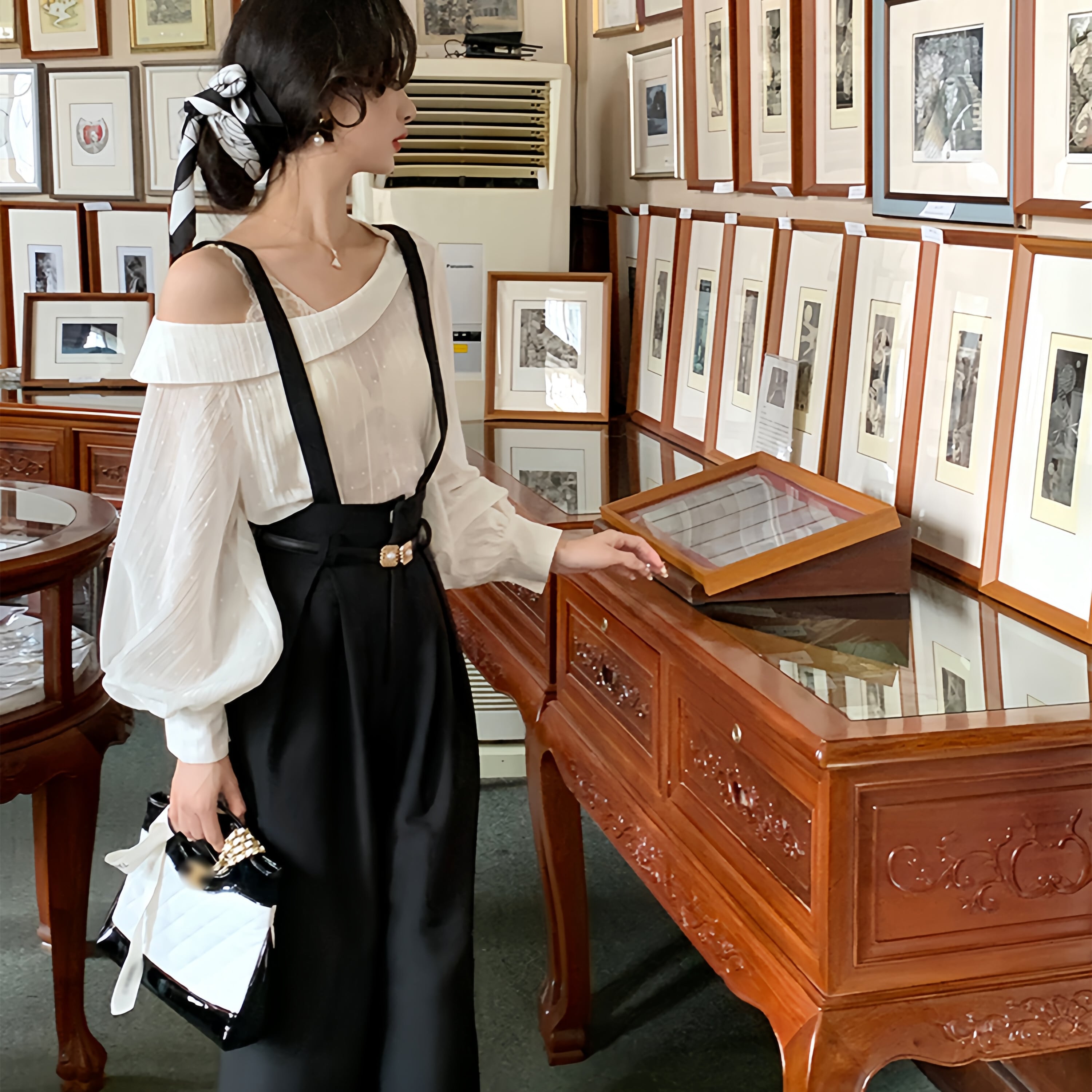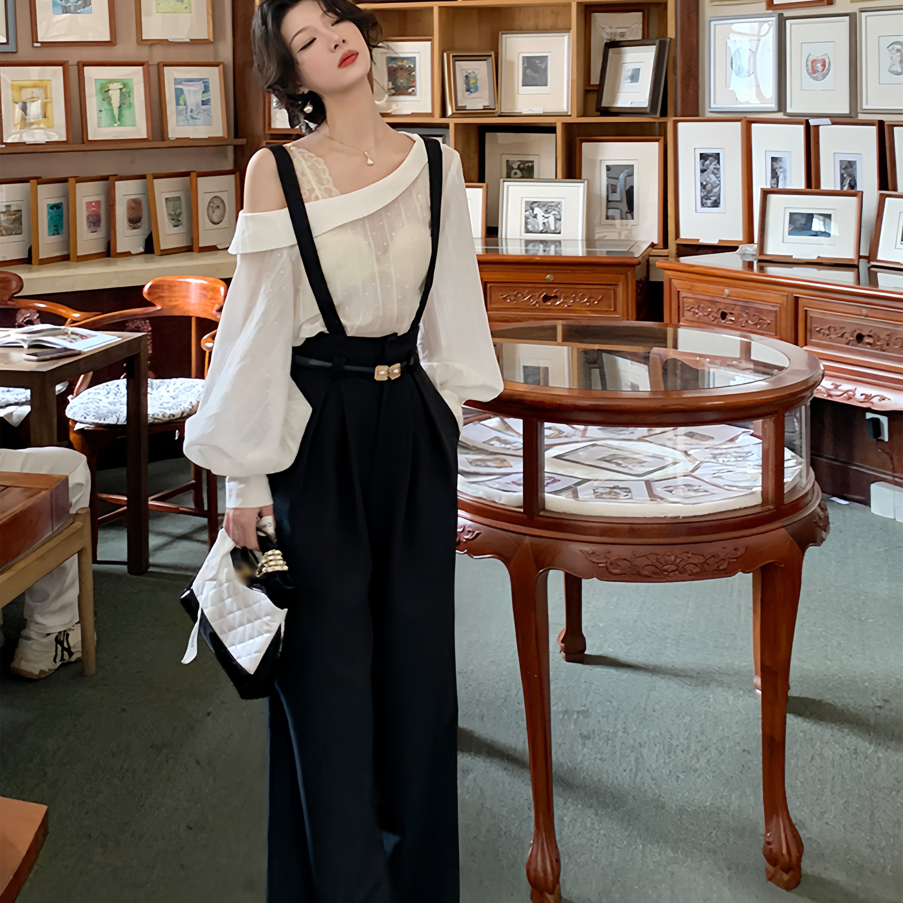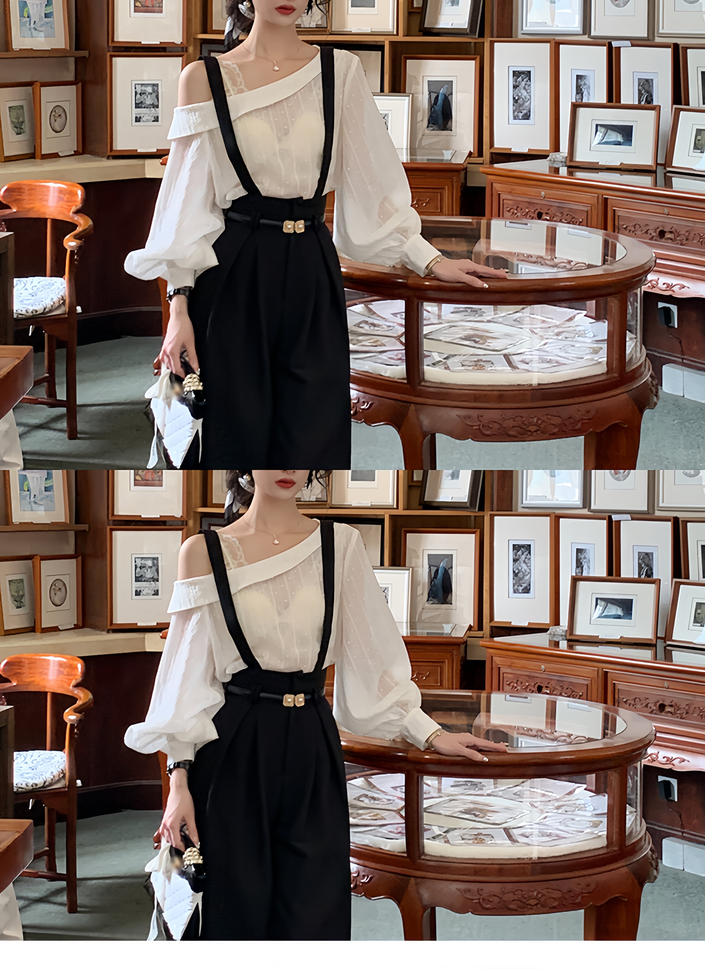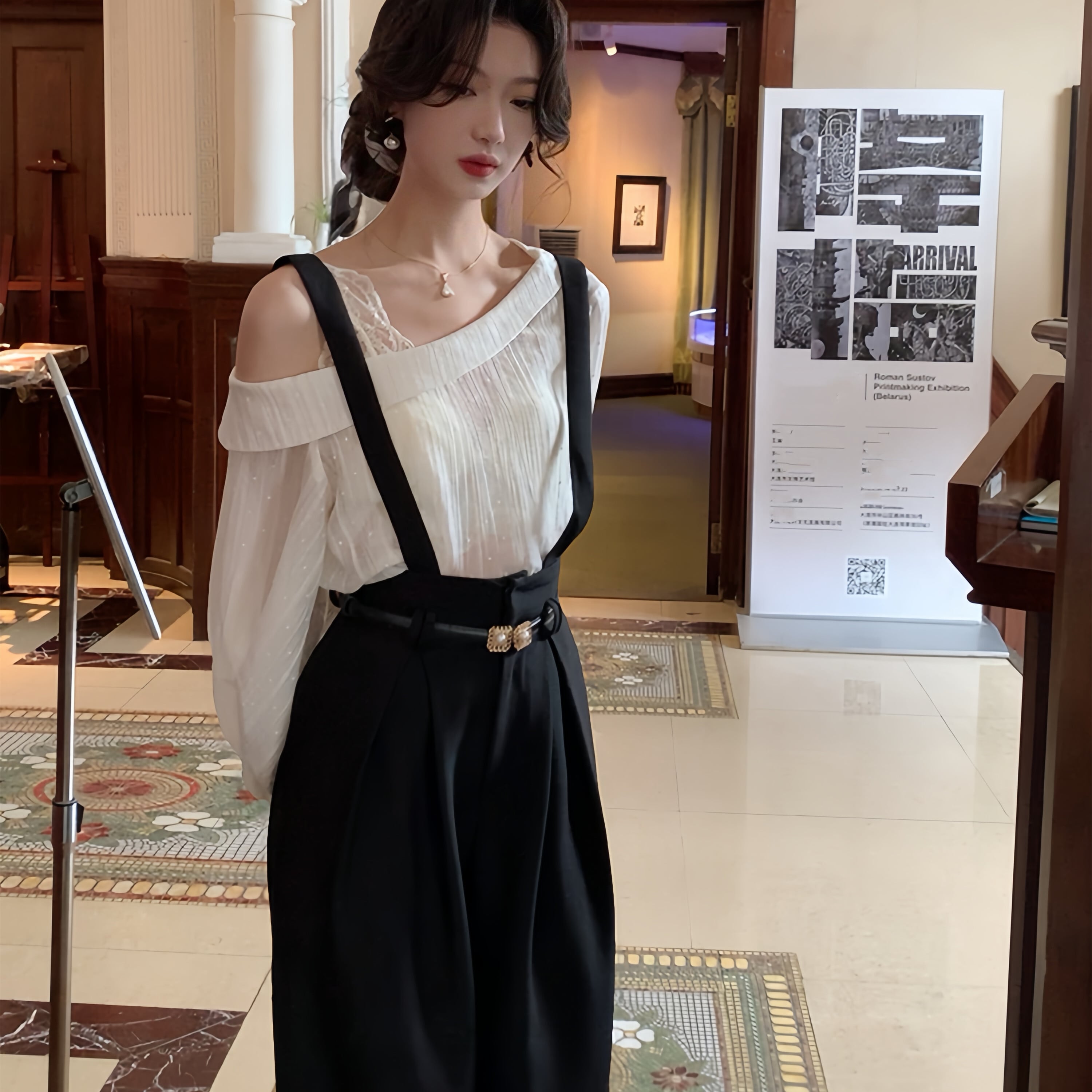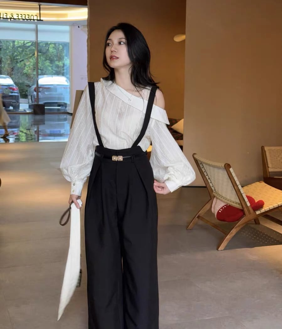 【set】オフショルブラウス×サスペンダーパンツセット N3377