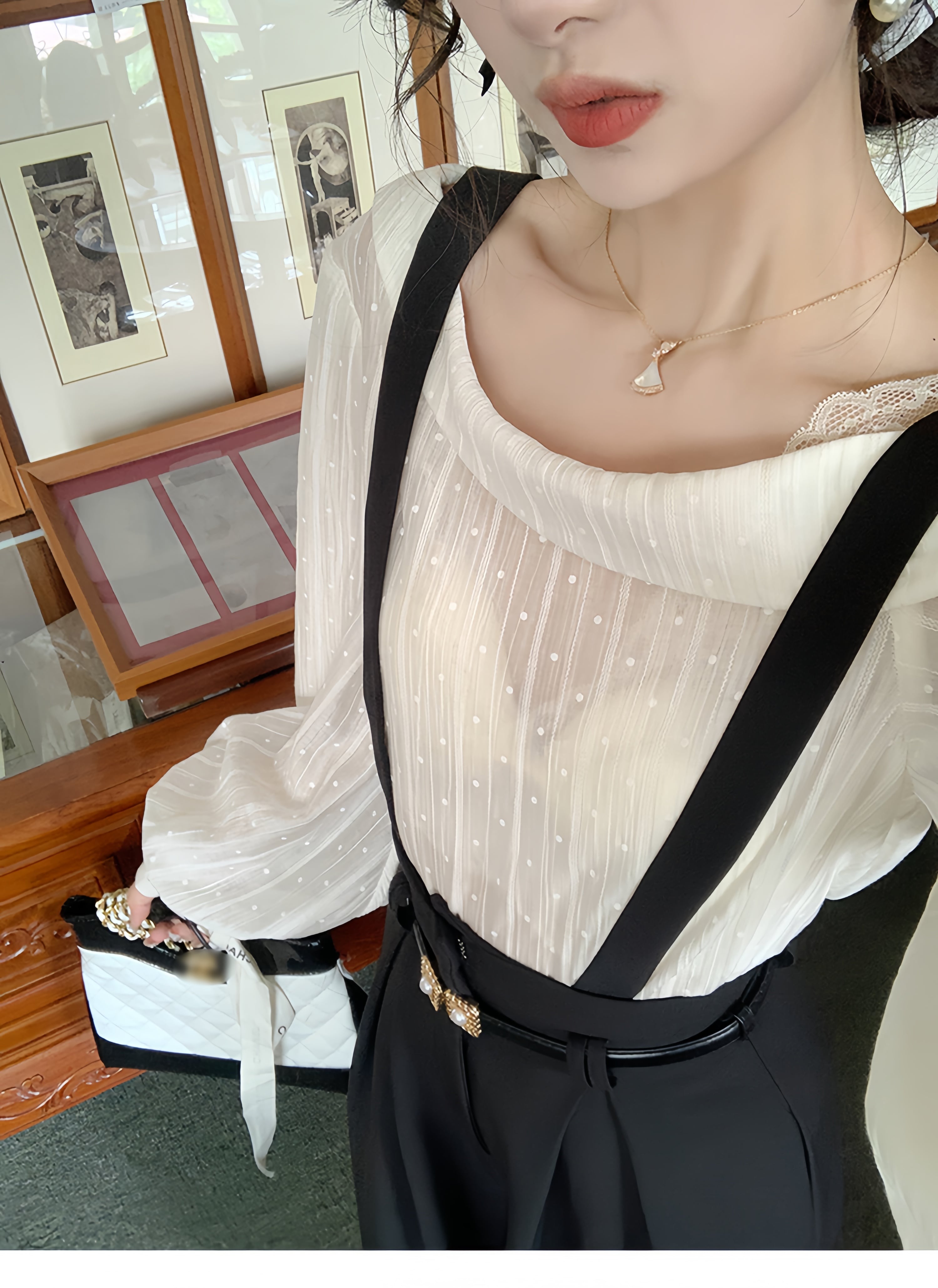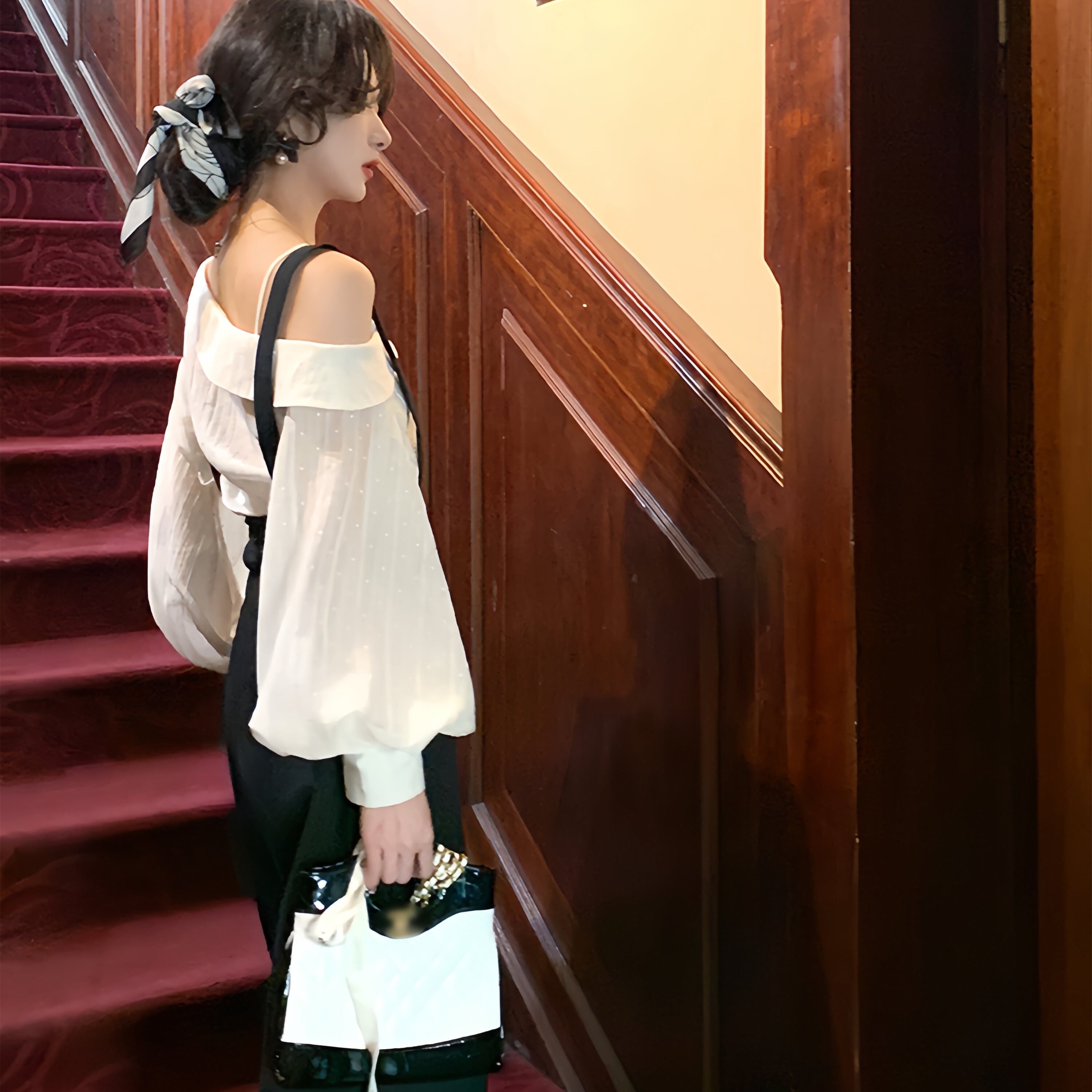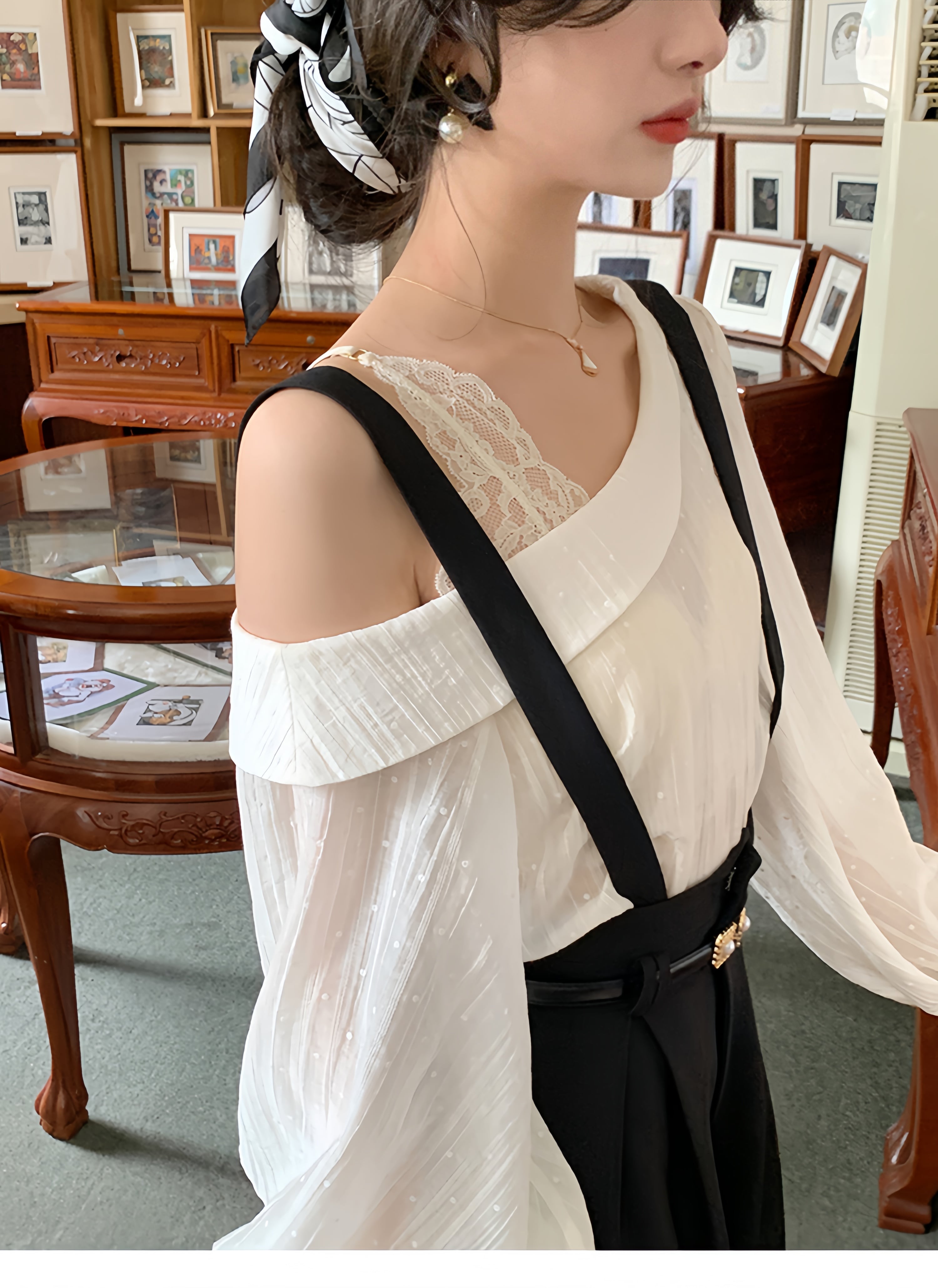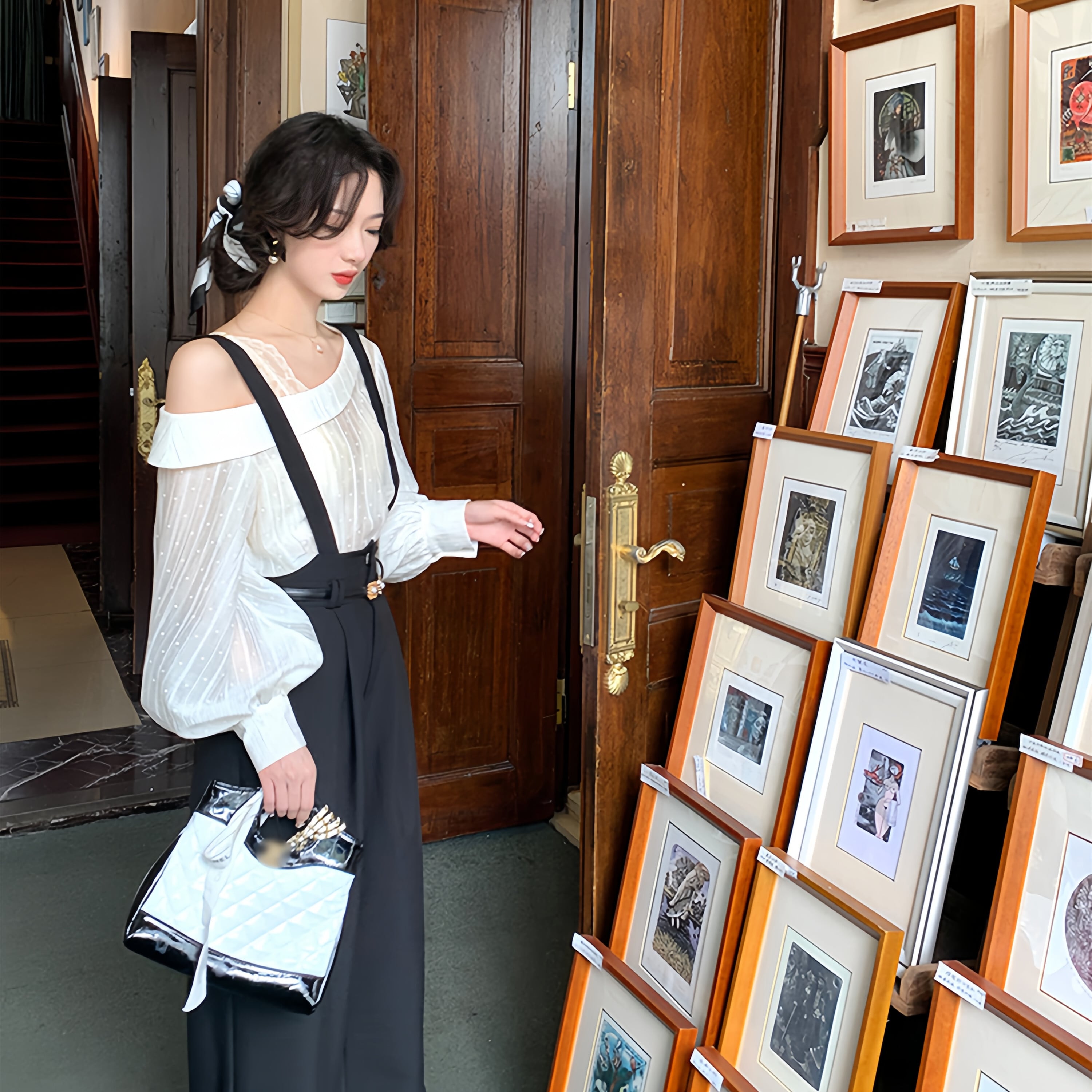 【set】オフショルブラウス×サスペンダーパンツセット N3377
