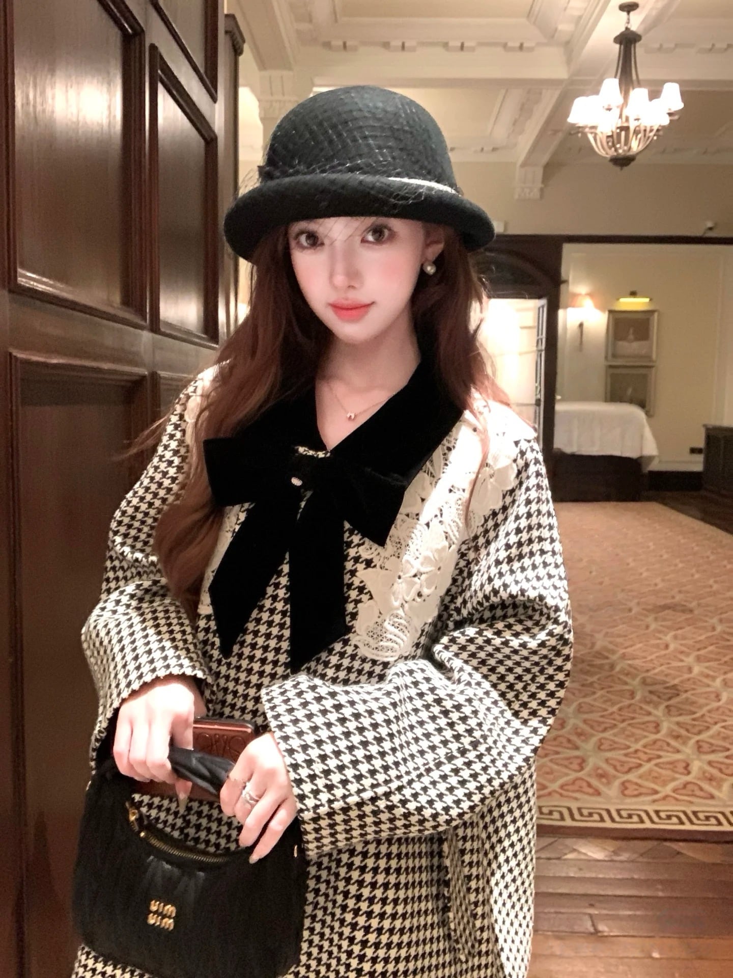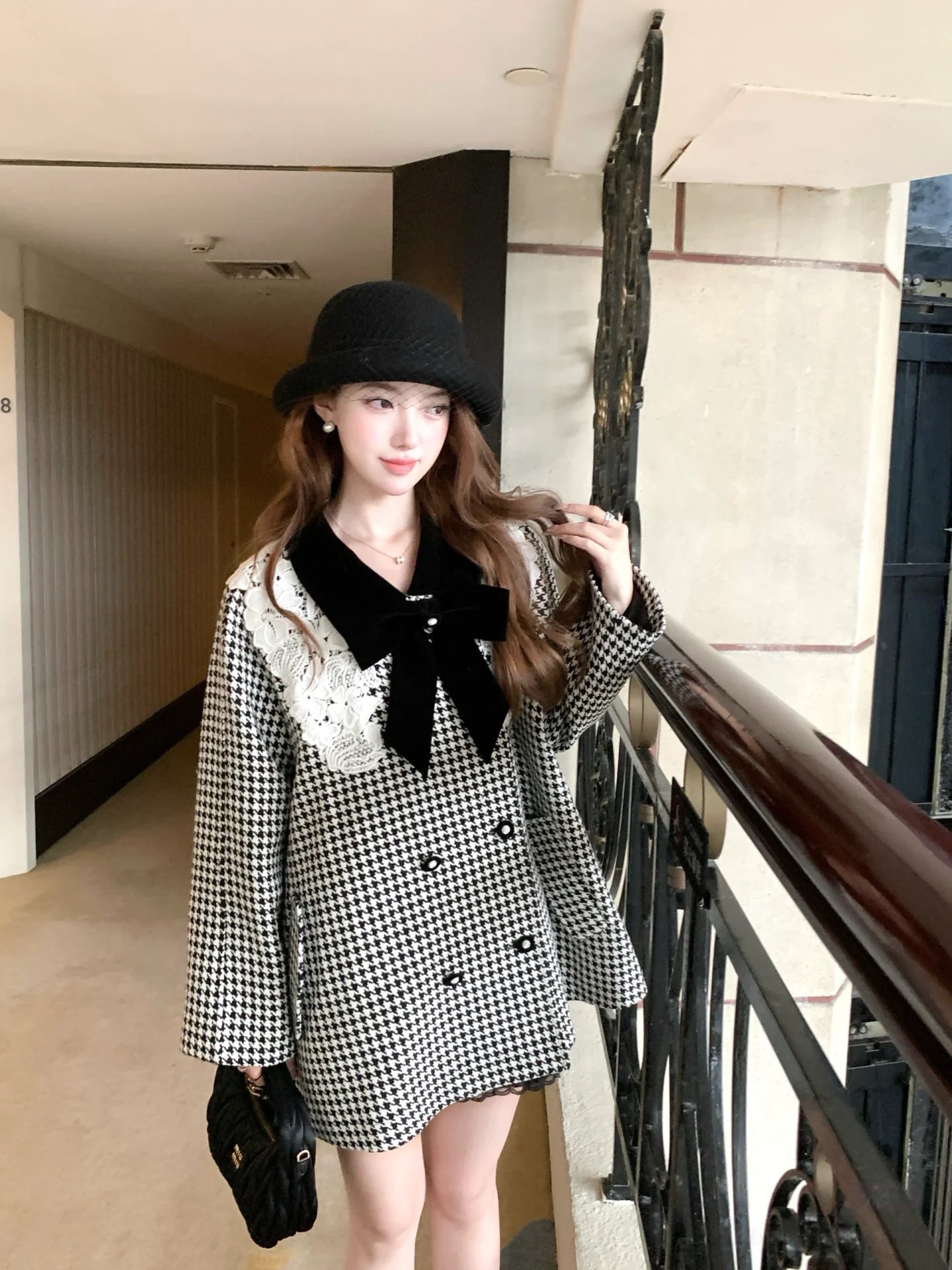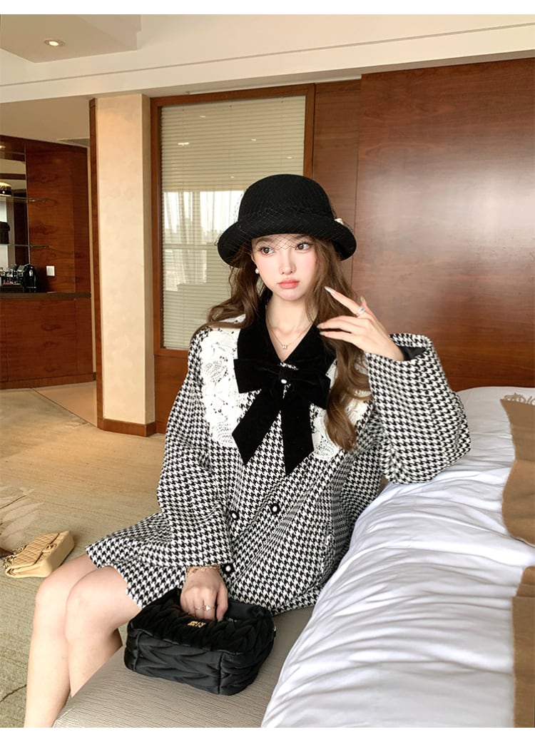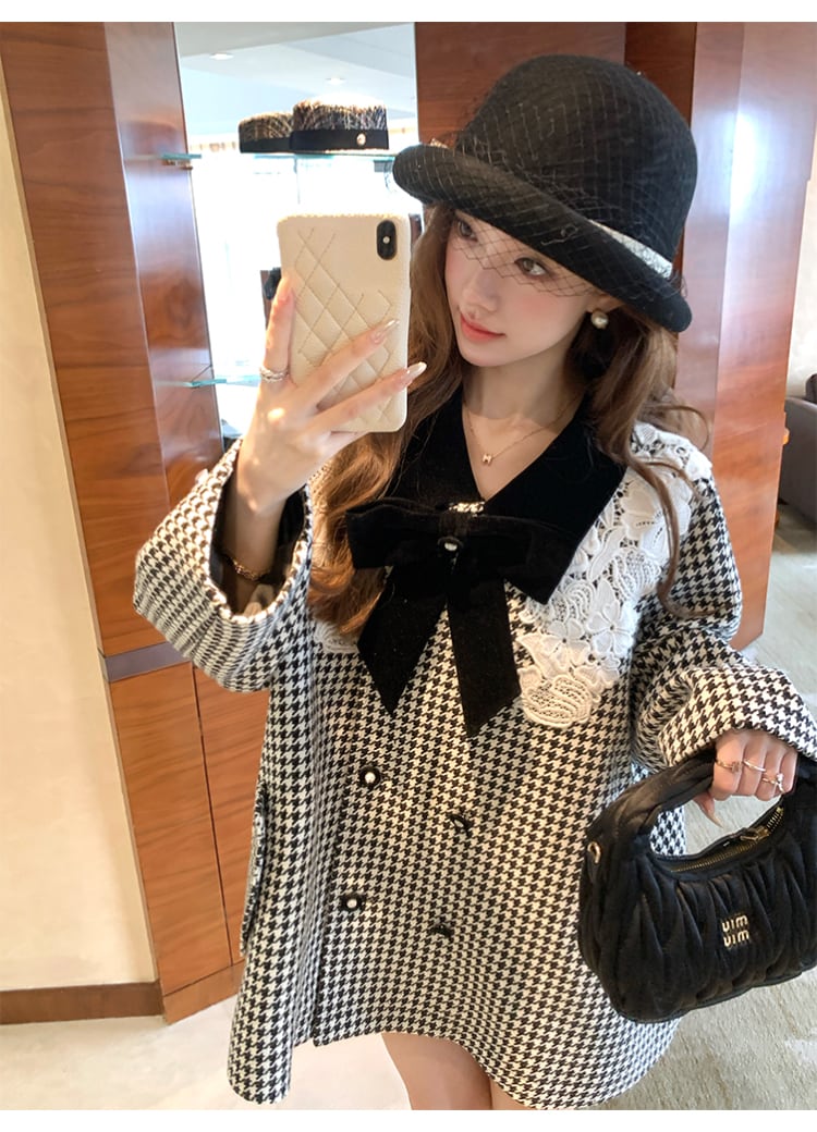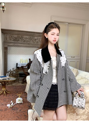 【outer】レースカラー千鳥格子コート N3382