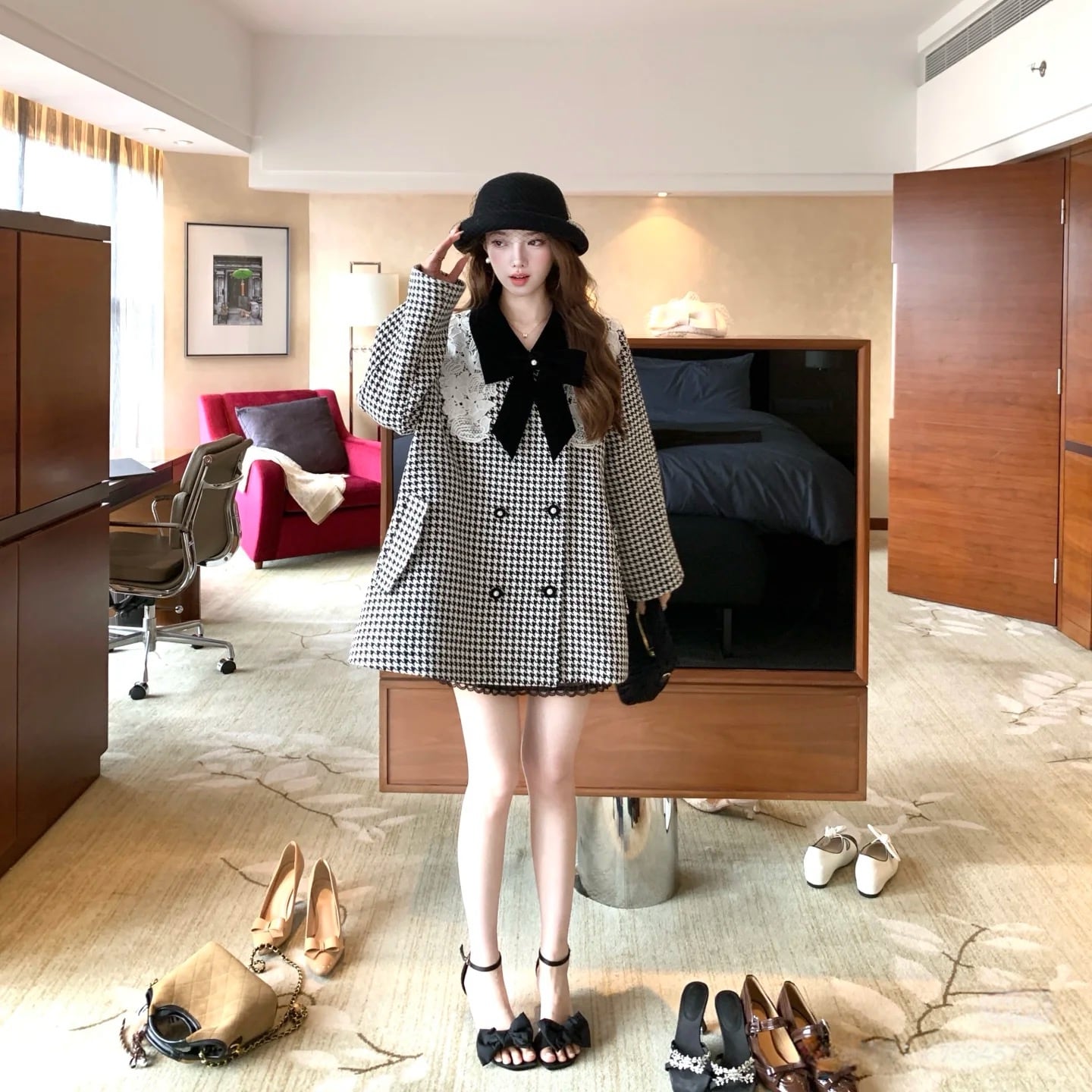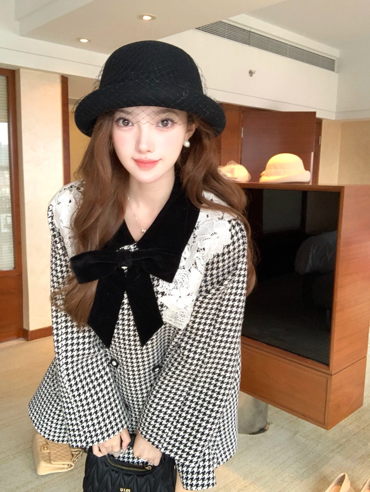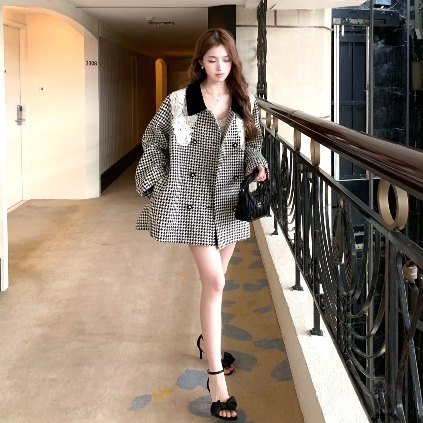 【outer】レースカラー千鳥格子コート N3382