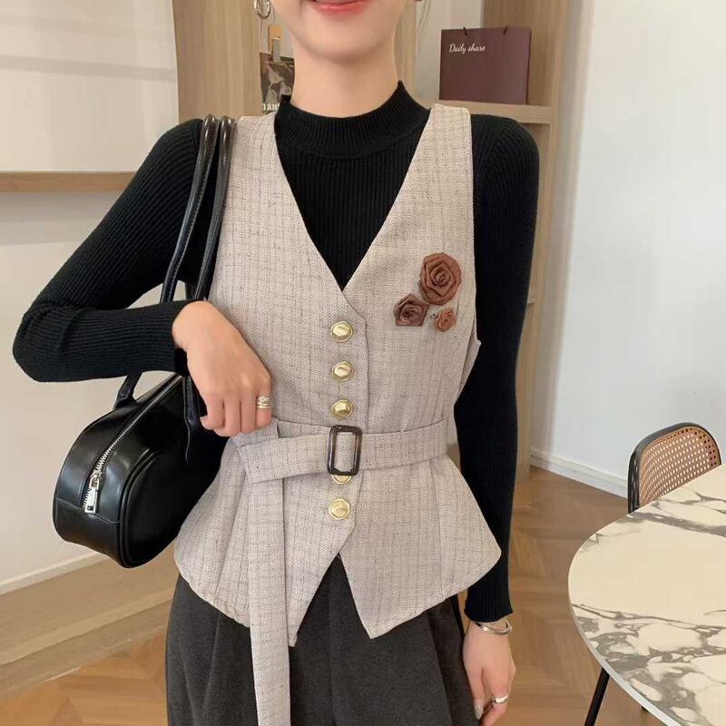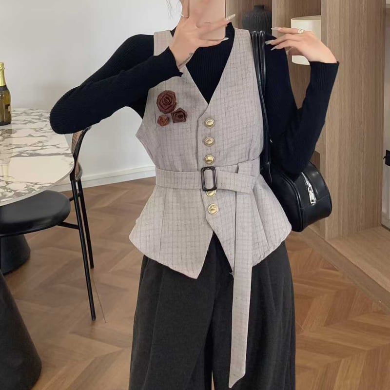 【set】ハイネックニットトップス×立体バラベストセット Q6760