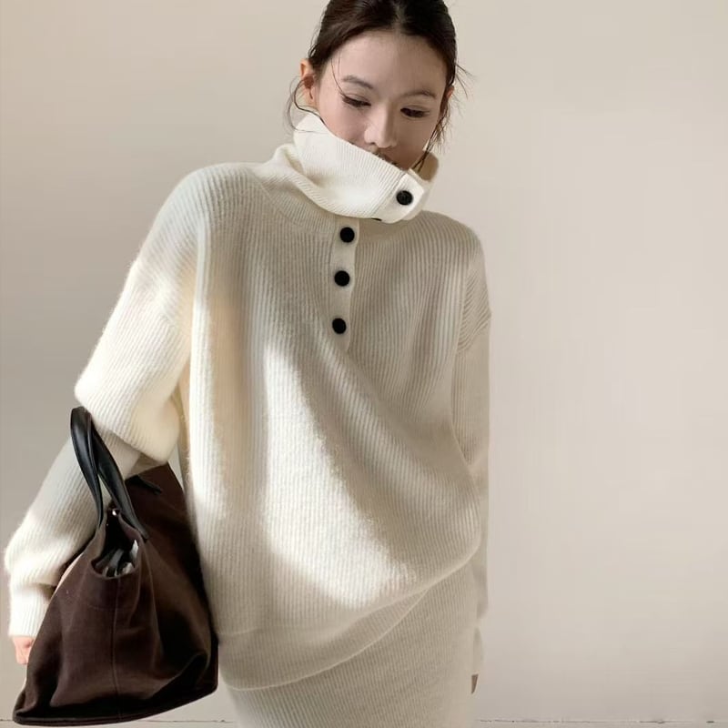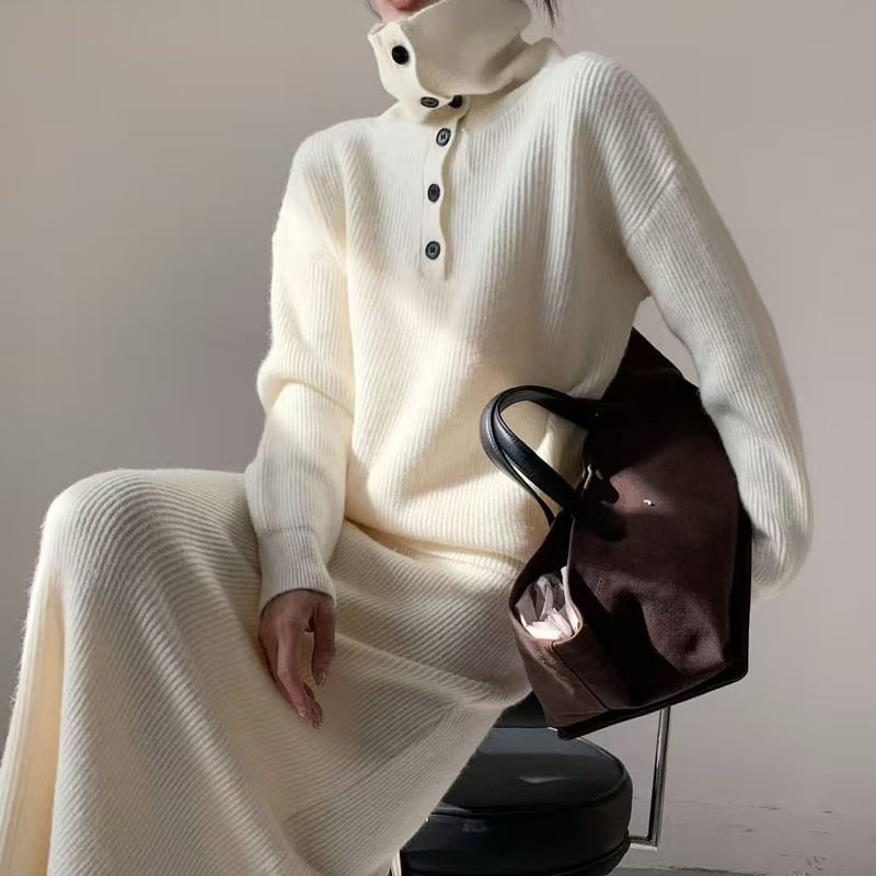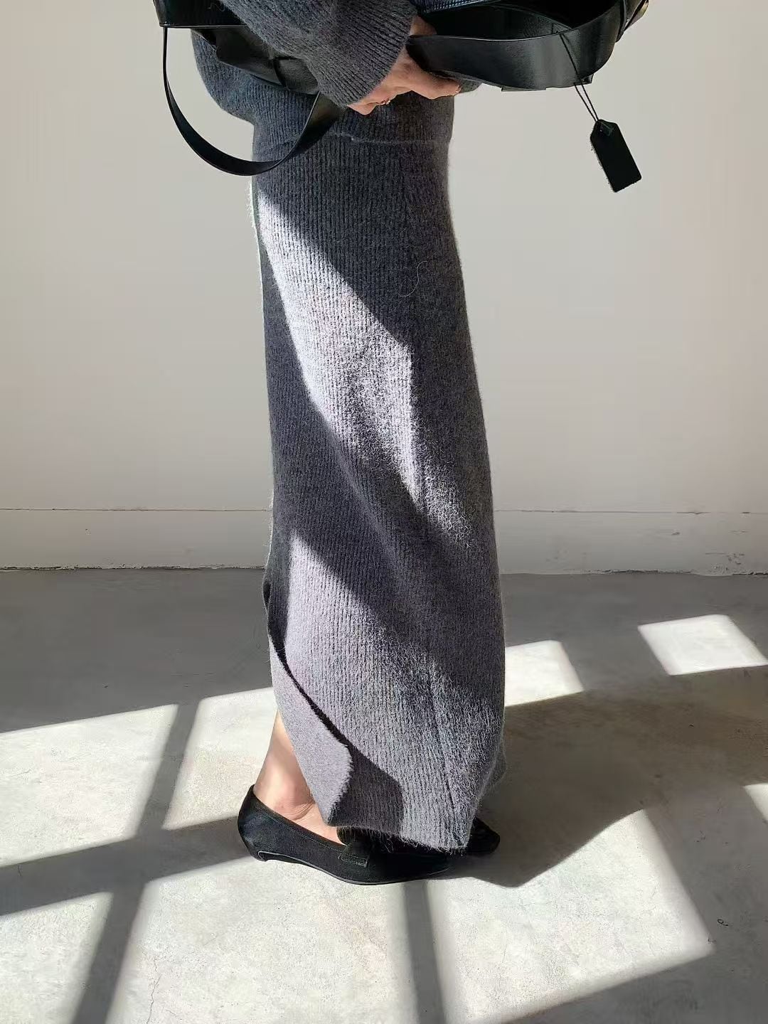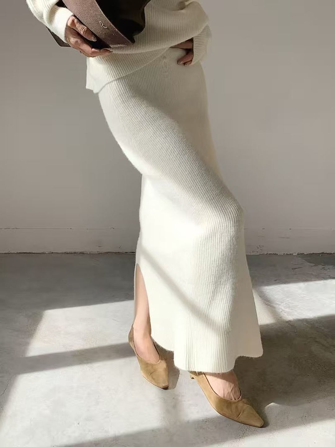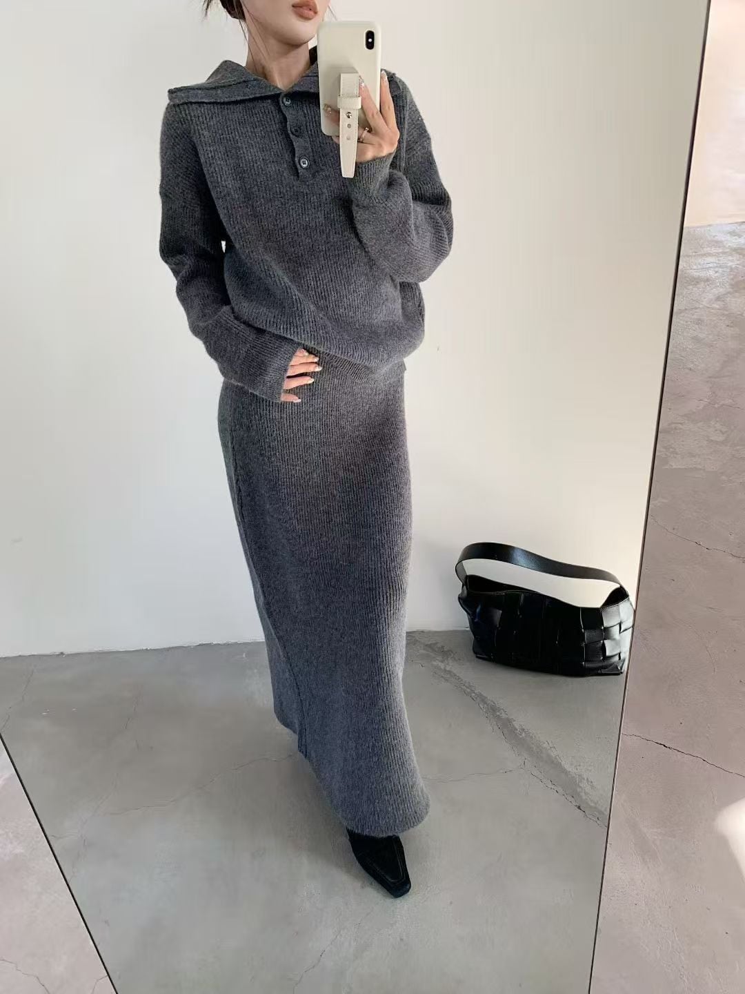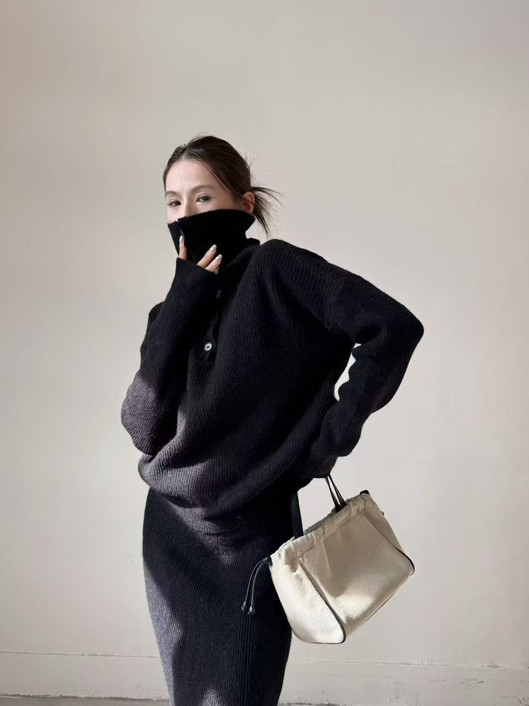 【set】ハイネックニットトップス×ロングスカートセット Q6773
