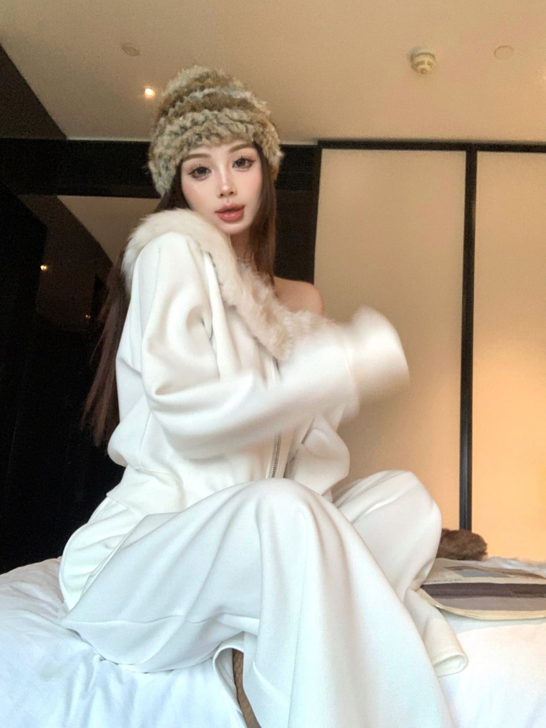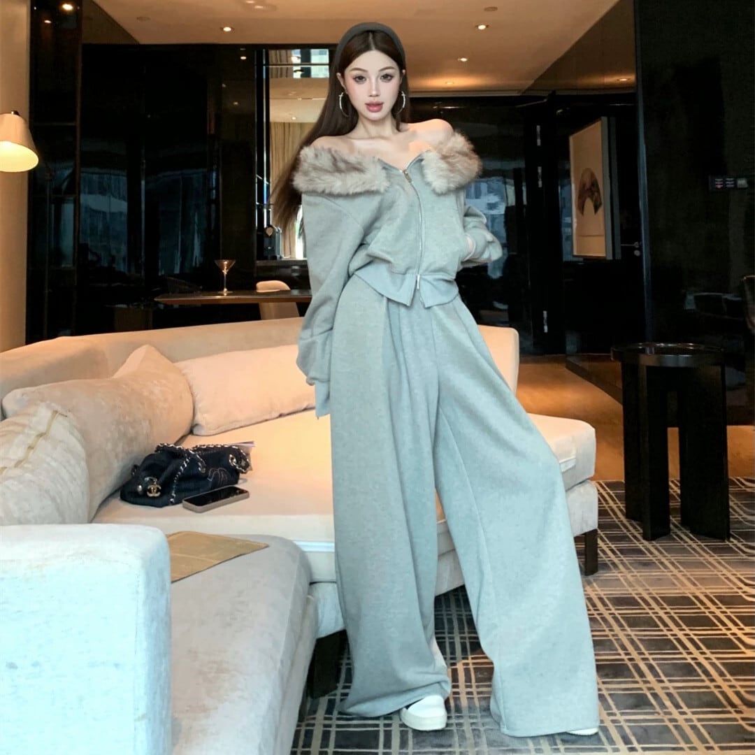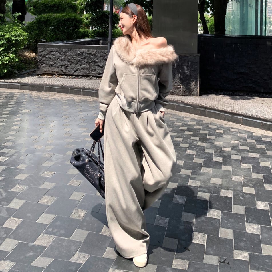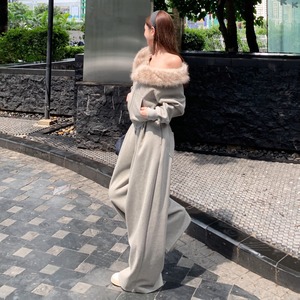 【set】デコルテファートップス×ワイドパンツセット N3393