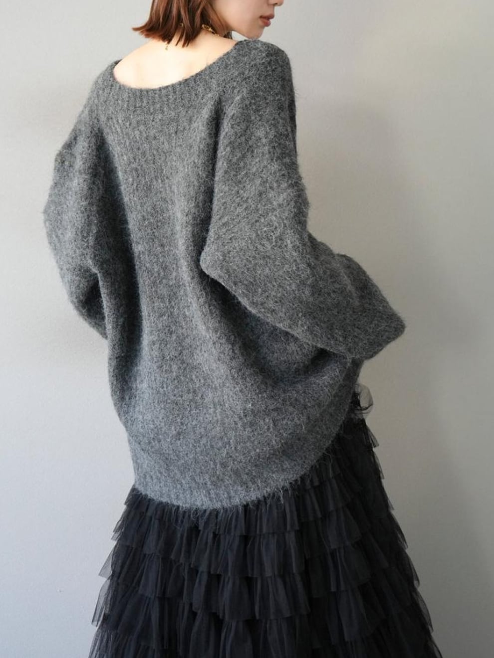 【set】フラワー刺繡ニットカーディガン×チュールスカートセット Q6825