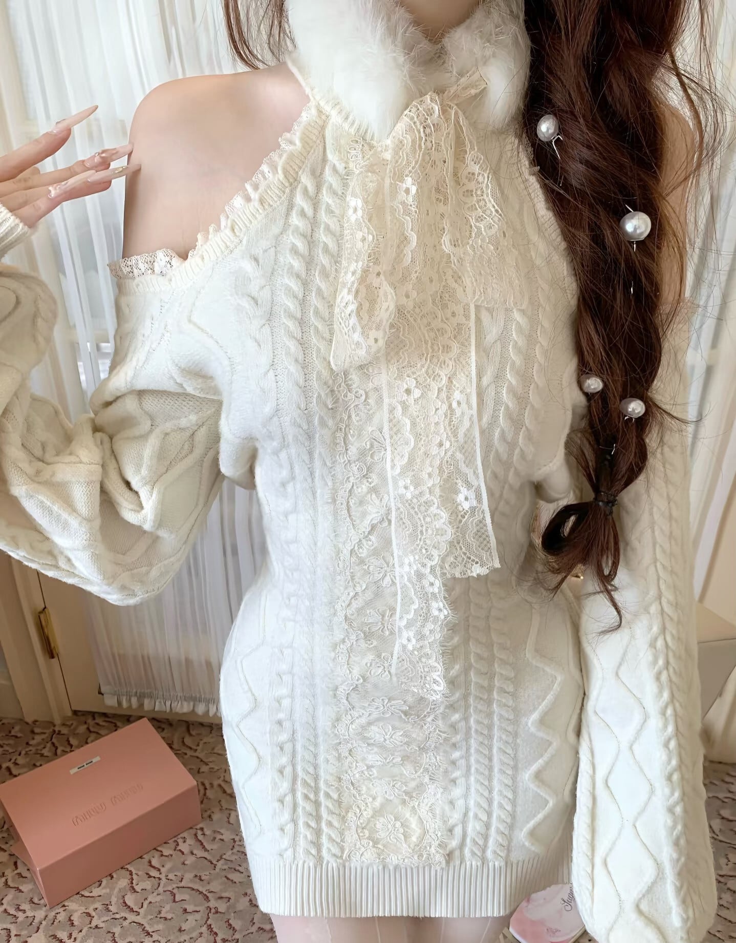 【予約商品】オフショルファーネックニットミニワンピース N3408