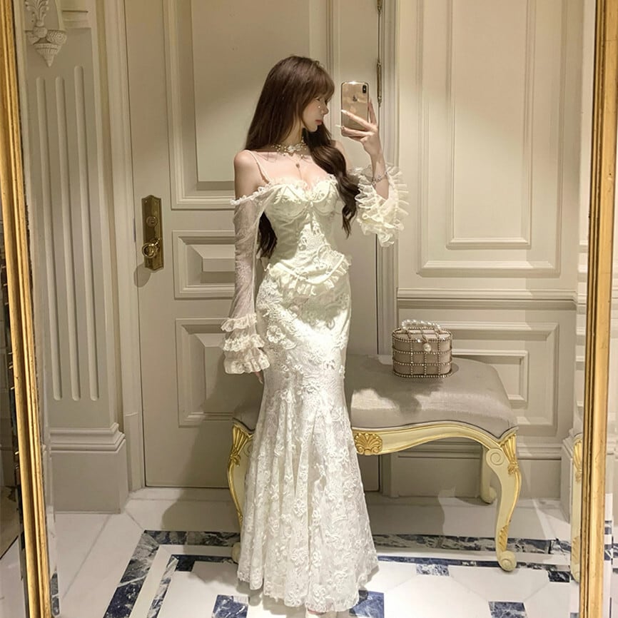 【set】ベルスリーブレーストップス×マーメイドスカートセット N3414