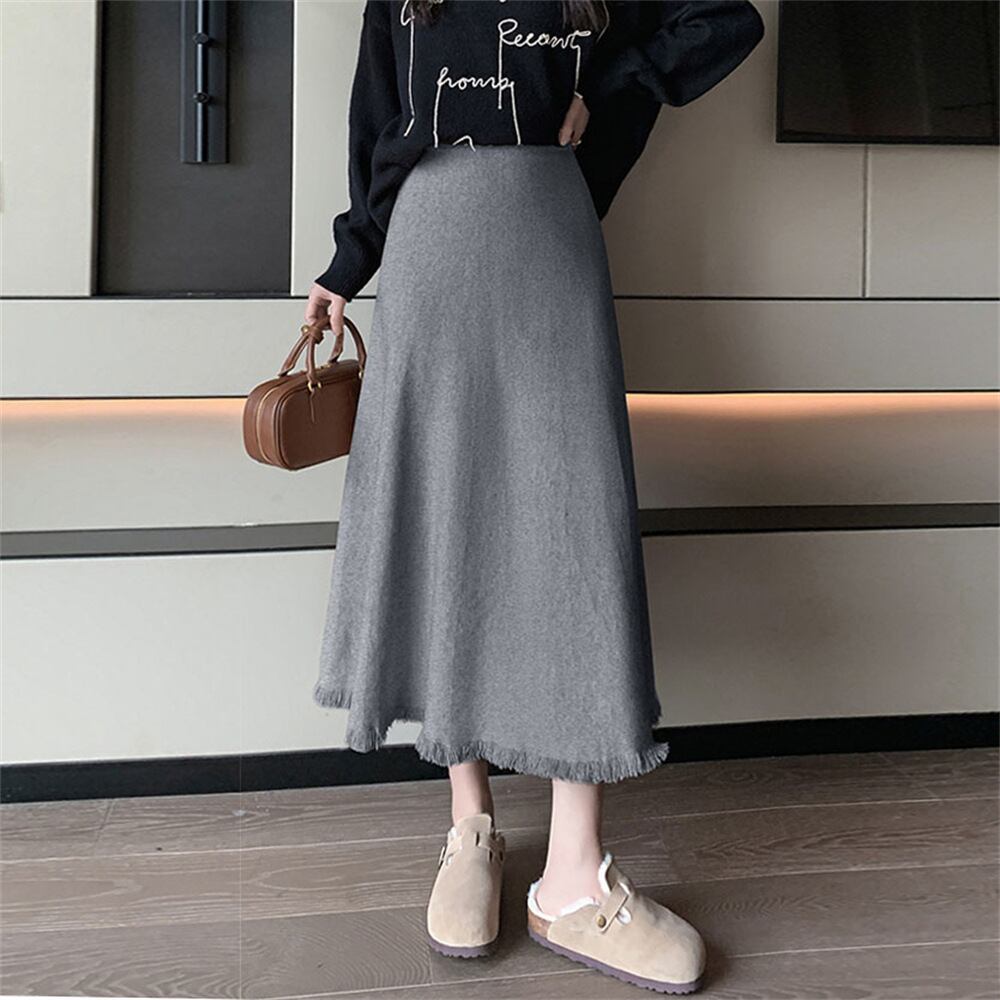 【bottoms】フリンジ付きニットAラインスカートL1058