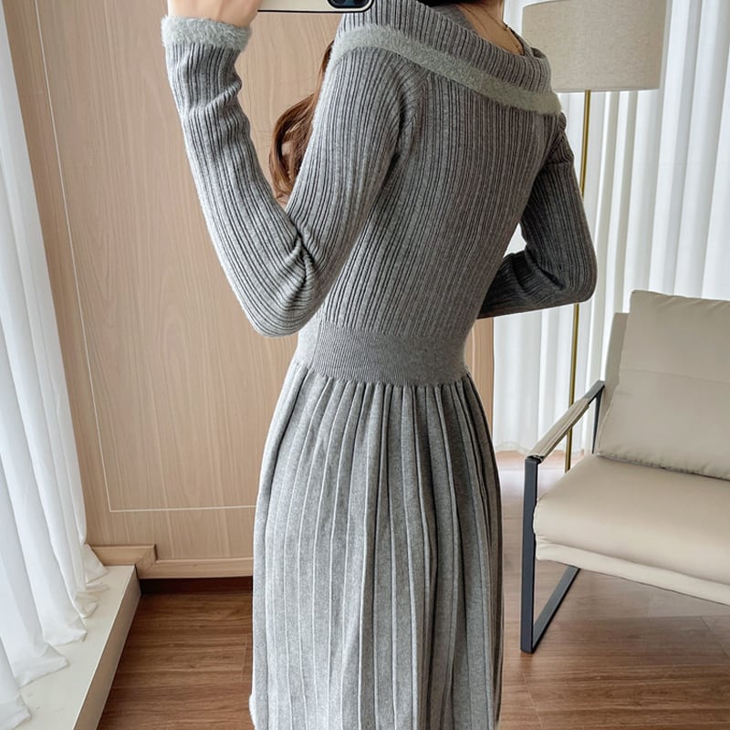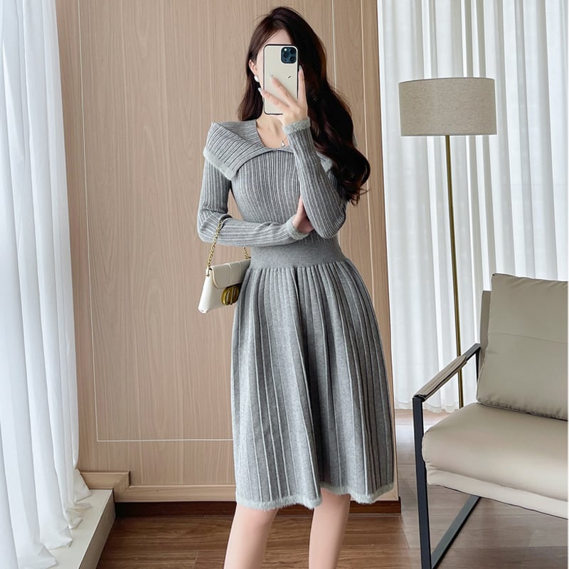 【dress】セーラーカラーニットプリーツワンピース Q6877