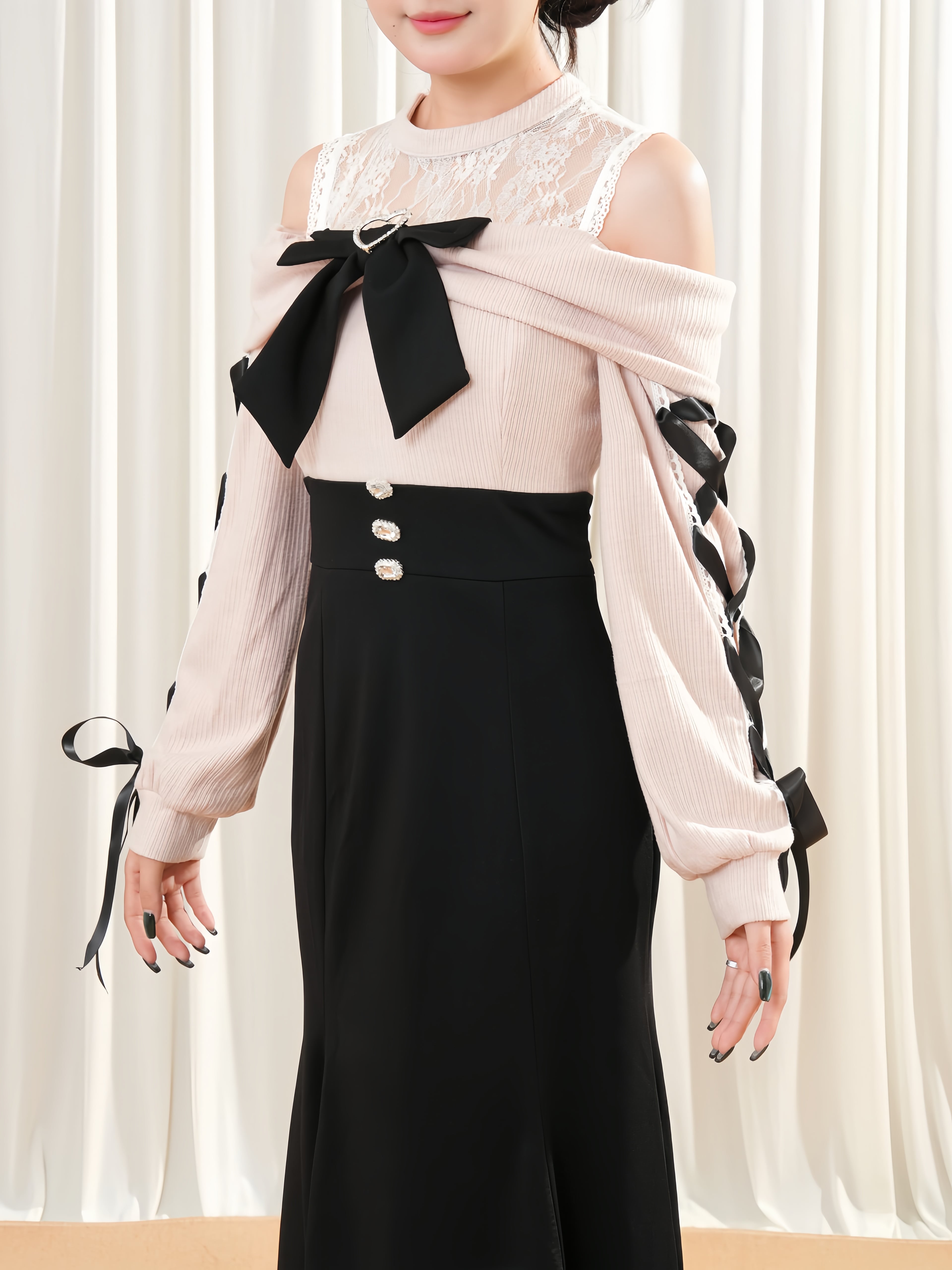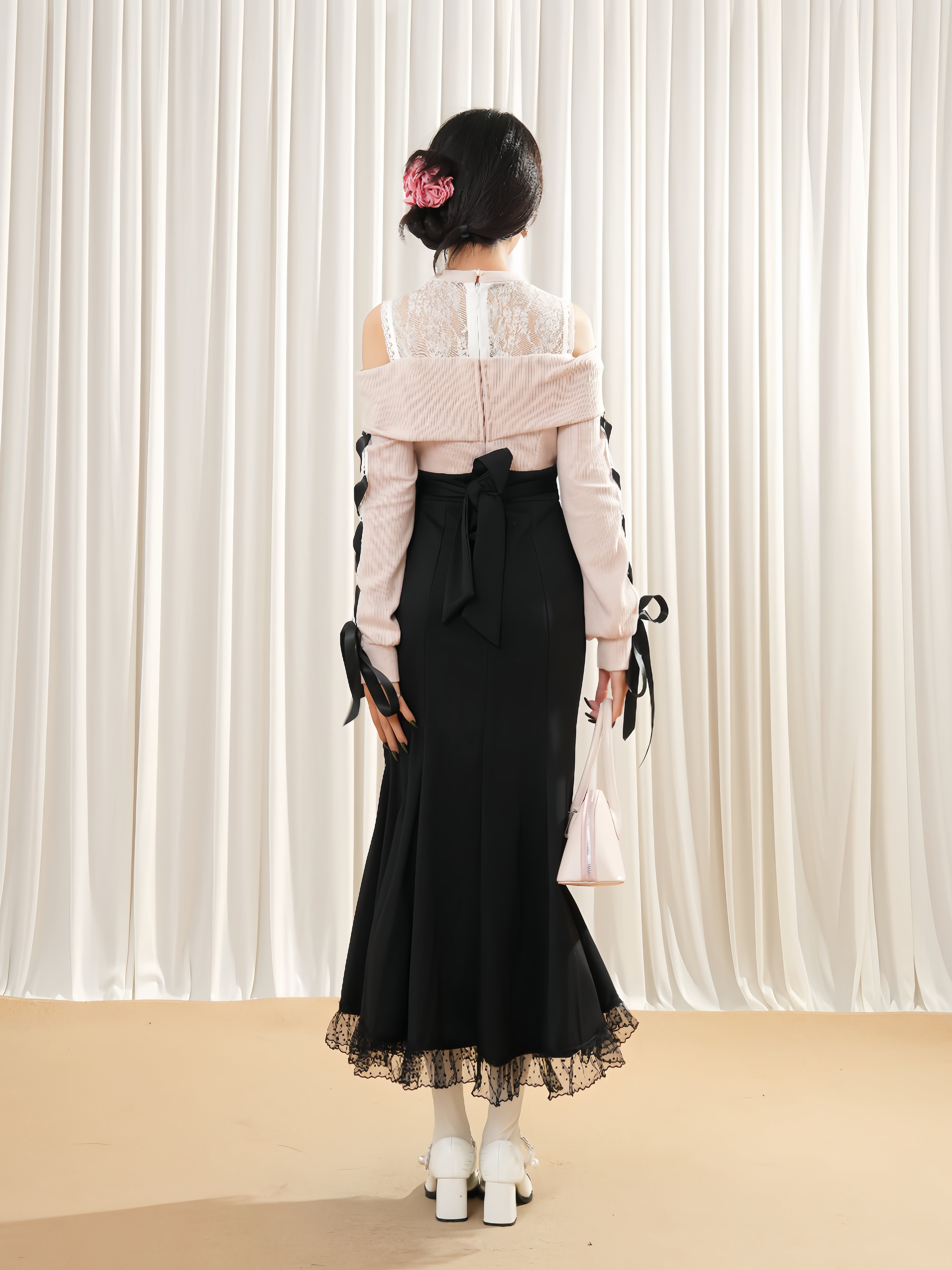 【dress】オフショルレースドッキングマーメイドワンピース N3424