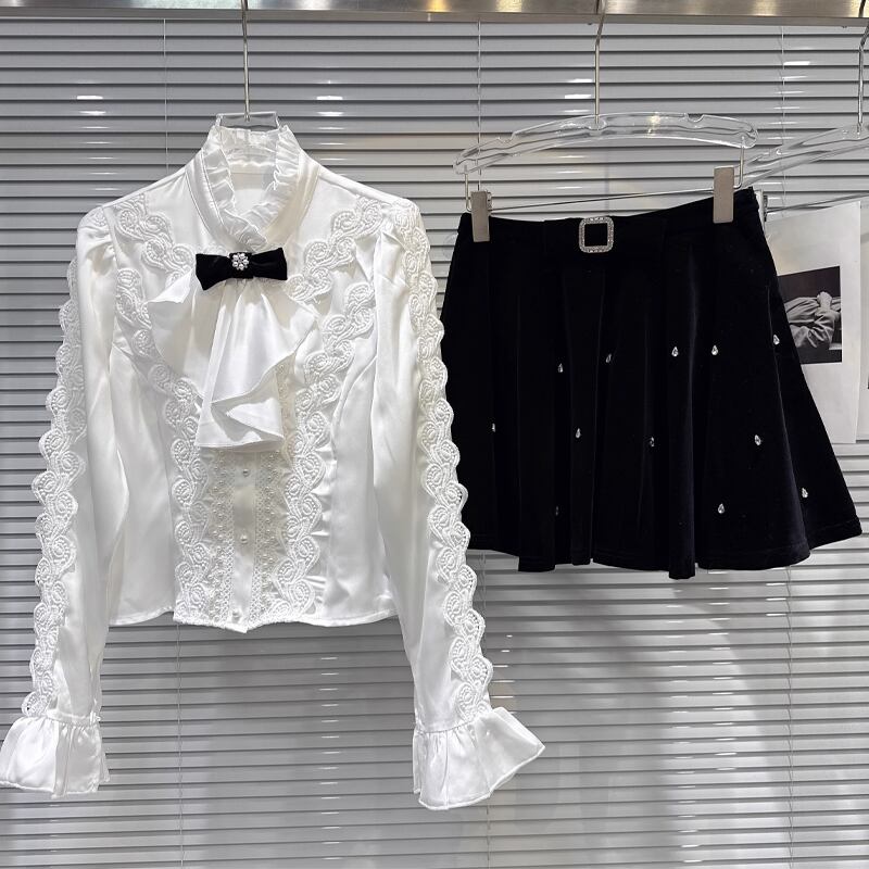 【set】レースシャツ×ラインストーン付きスカートセット Q6897