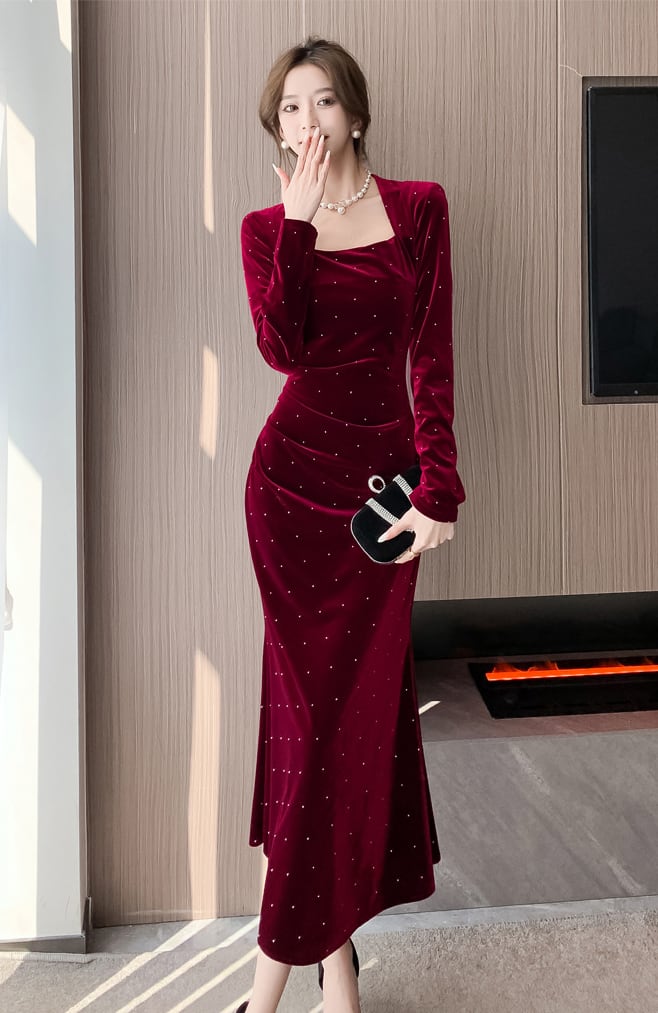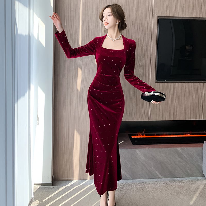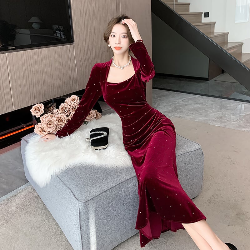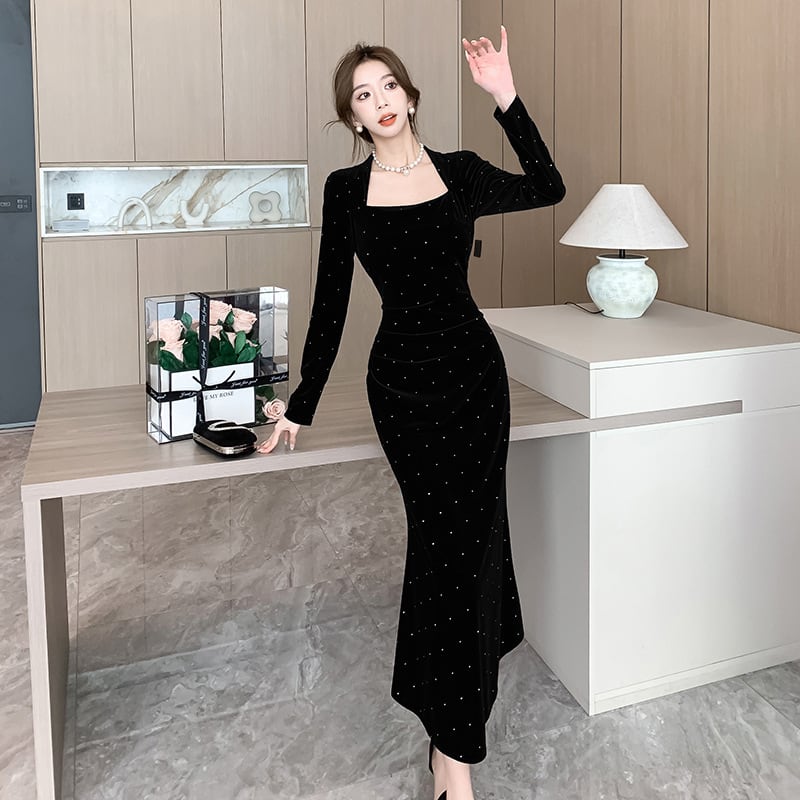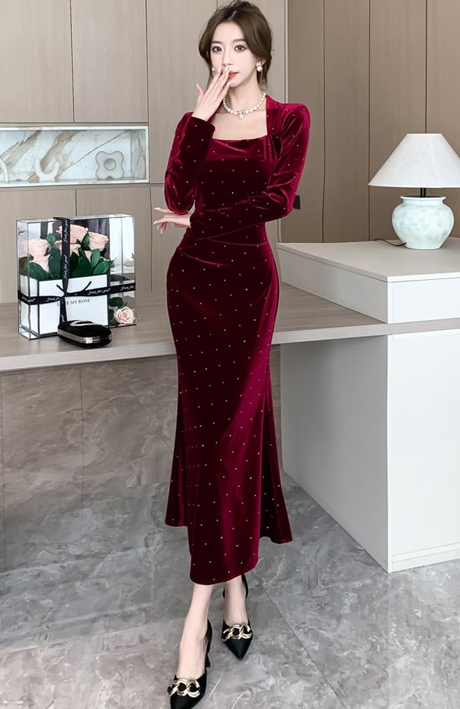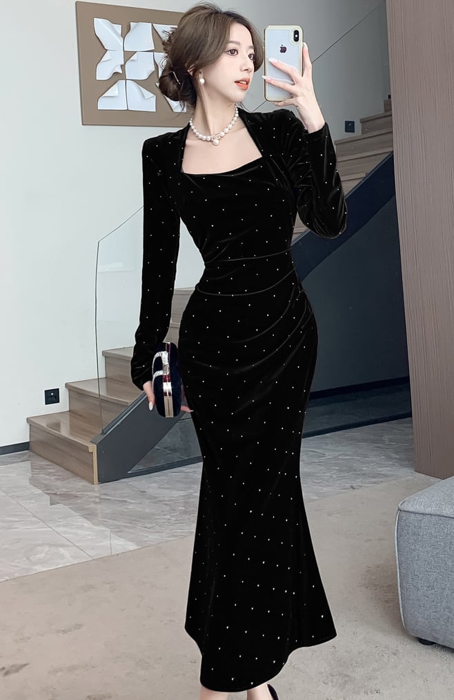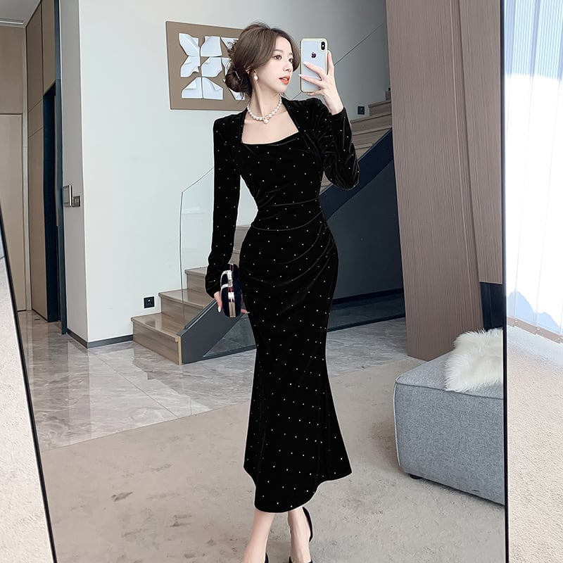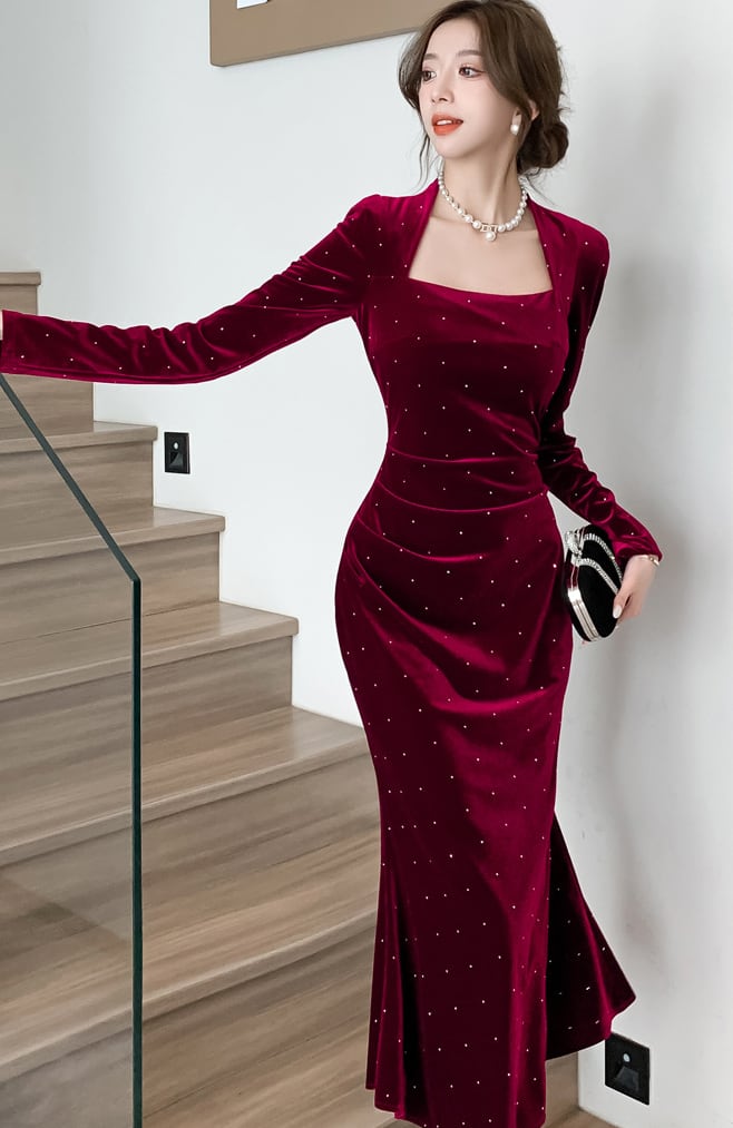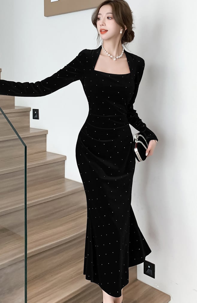 【dress】ラインストーン付きマーメイドワンピース Q6905