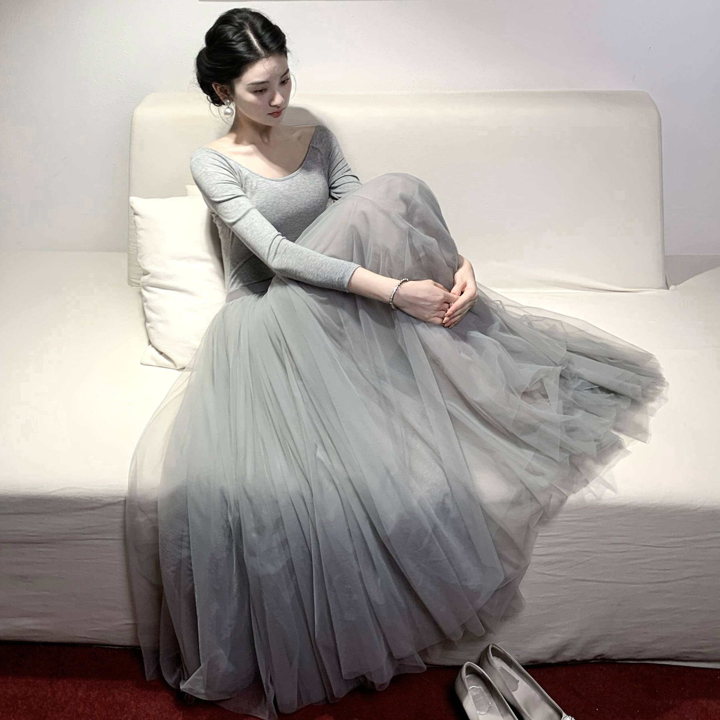 【dress】2WAYチュールドッキングロングワンピース N3426