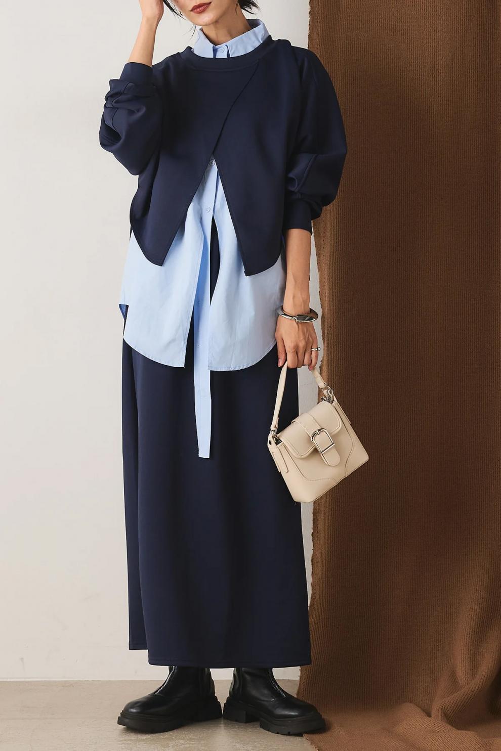 【set】シャツ×スリットトップス×ロングスカート3点セット N3429