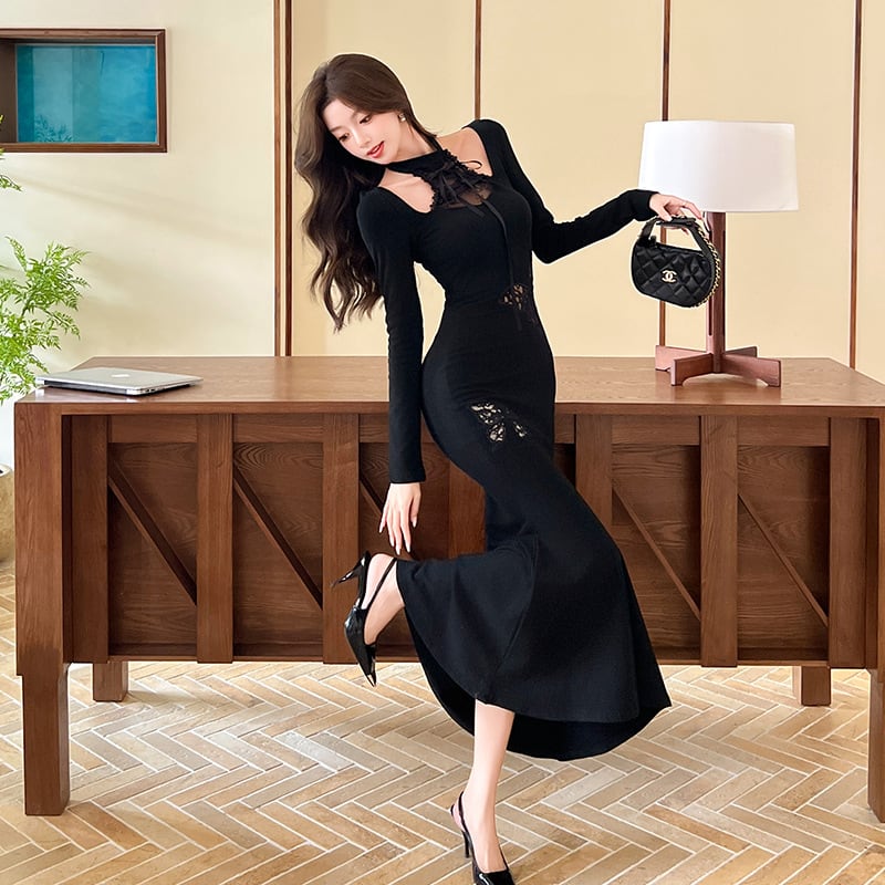 【dress】レースドッキング透かし彫りワンピース Q6930