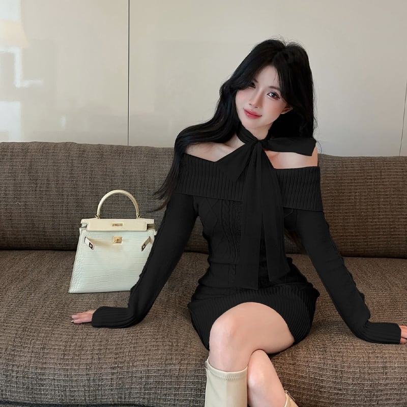 【dress】オフショルダーニットワンピース Q6938