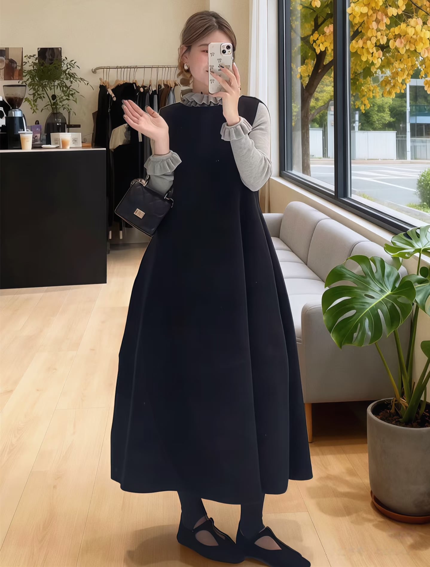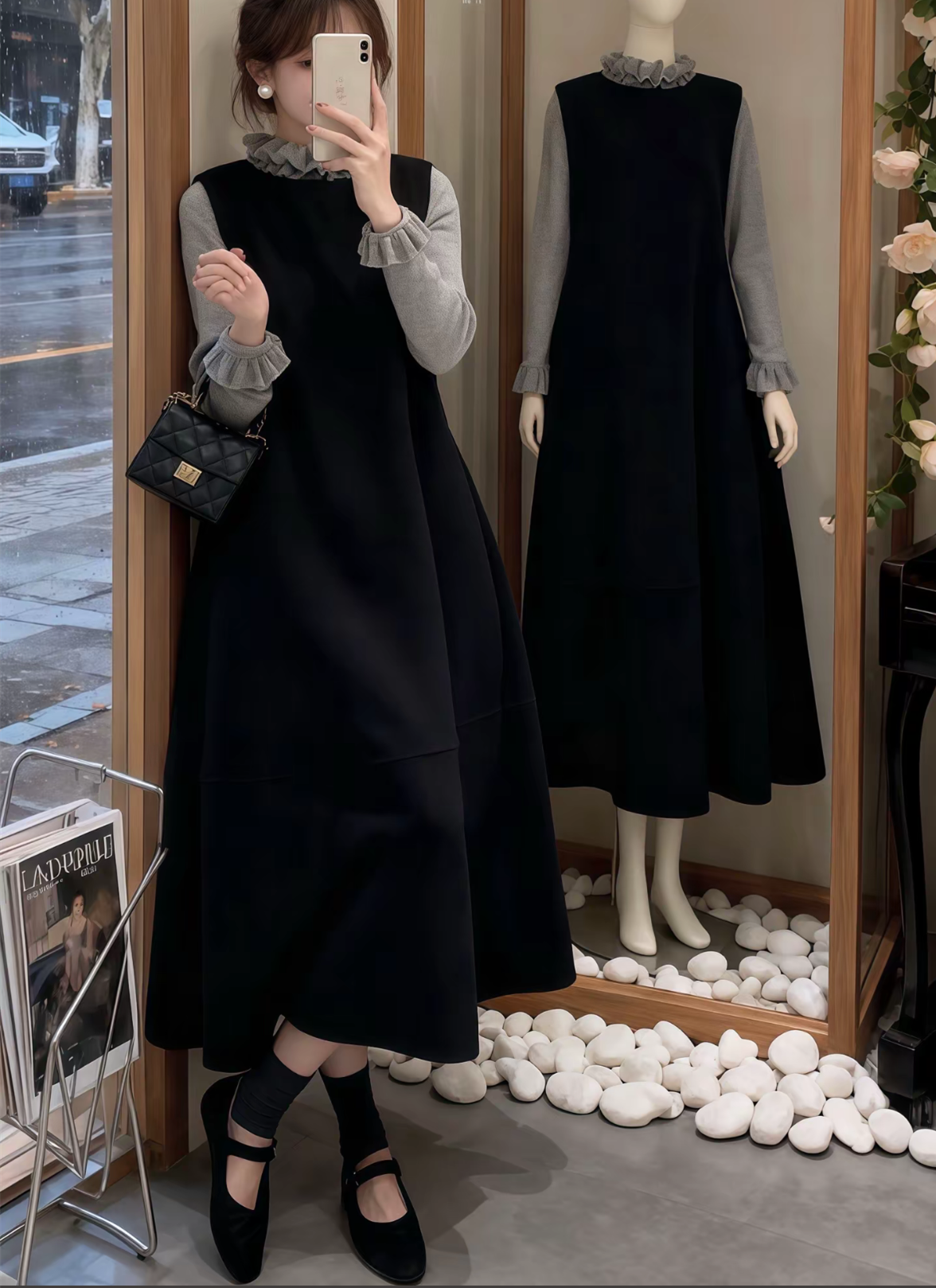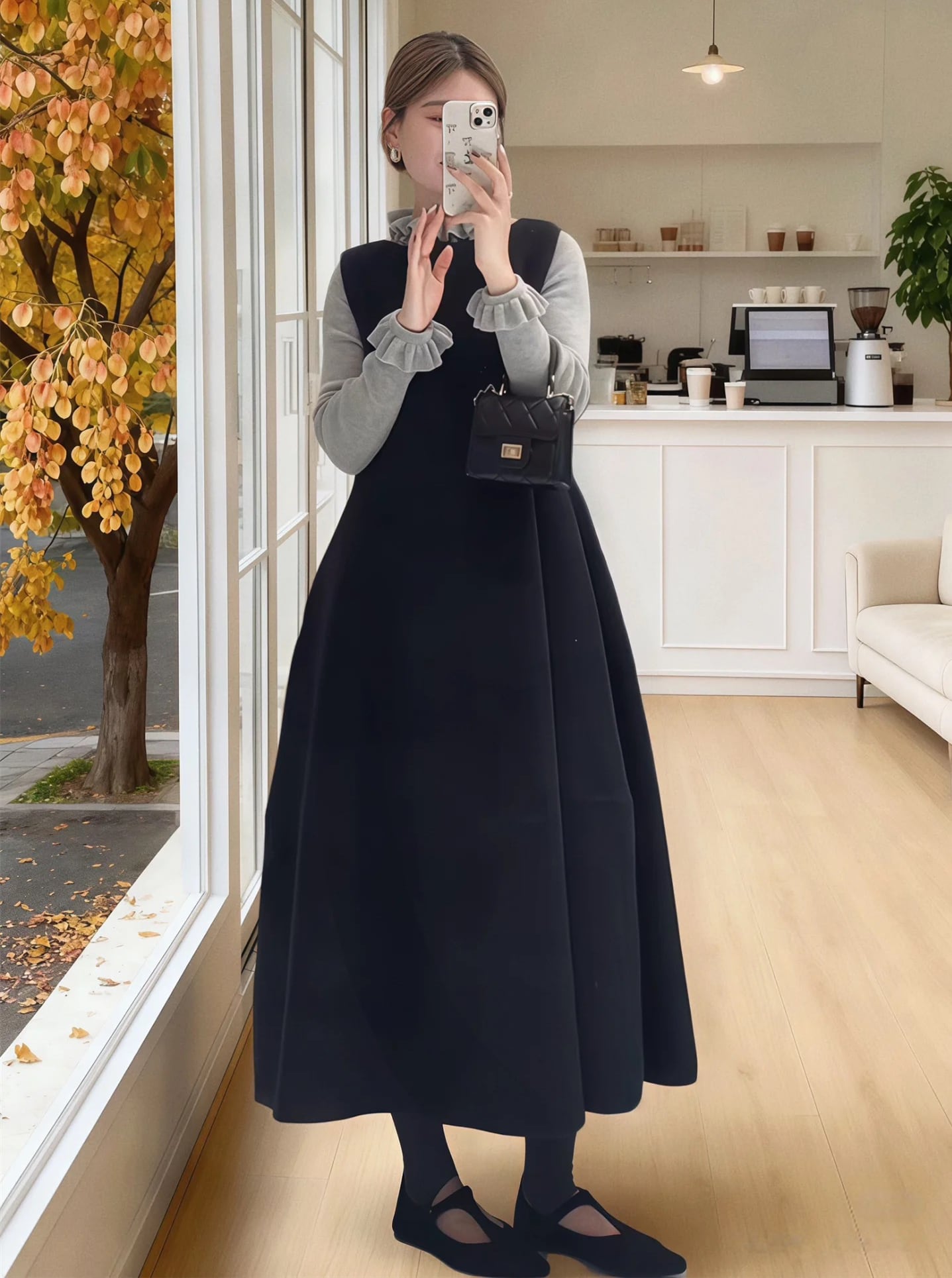 【set】フリルニットトップス×ノースリーブワンピースセット N3434