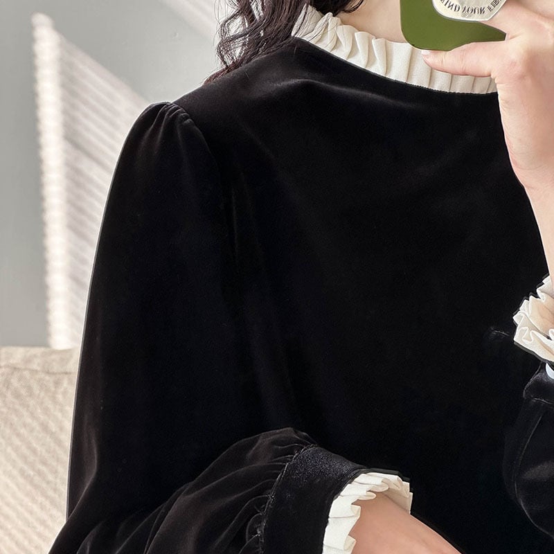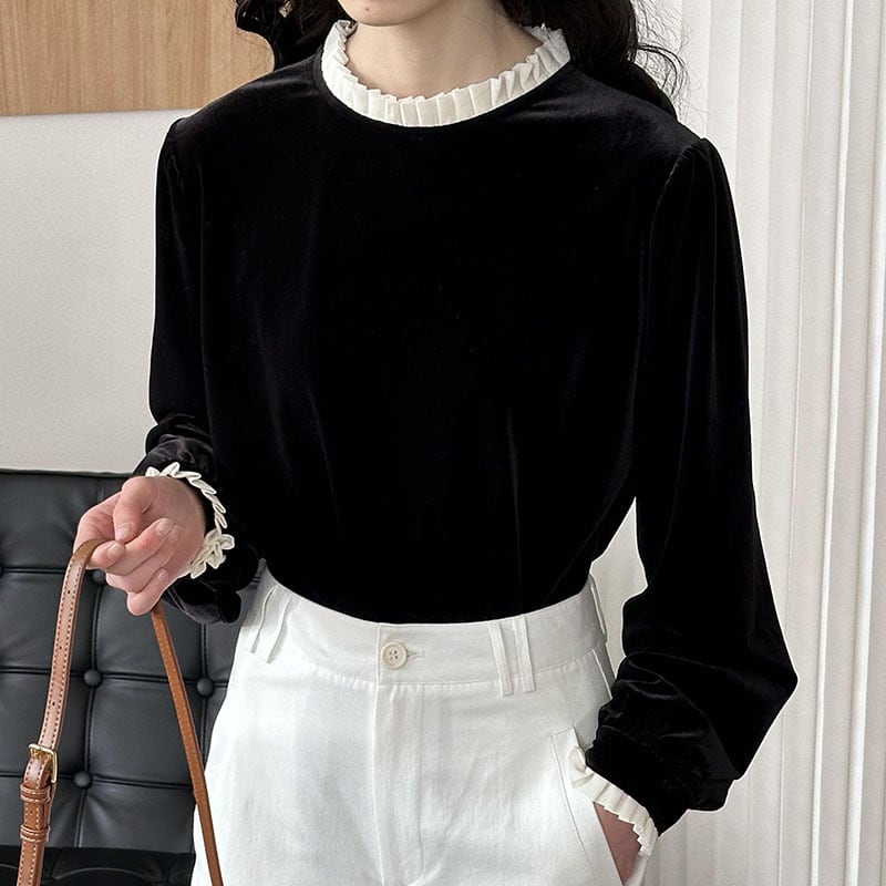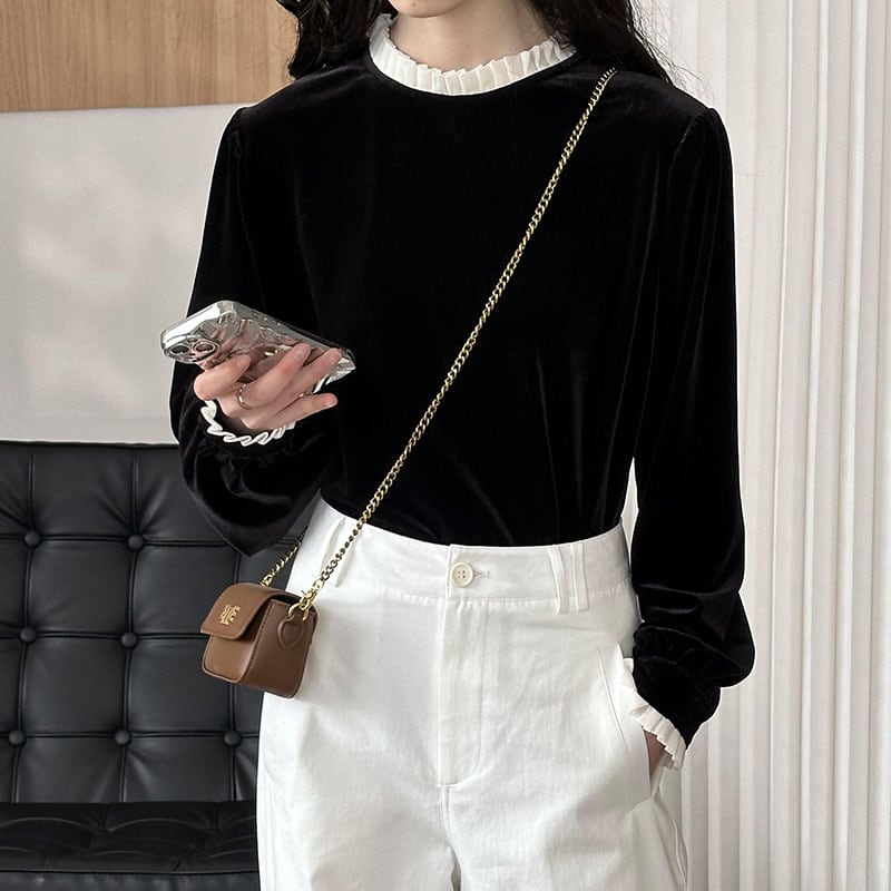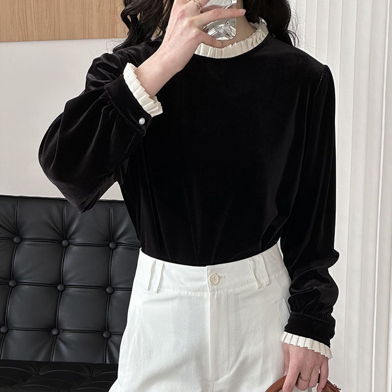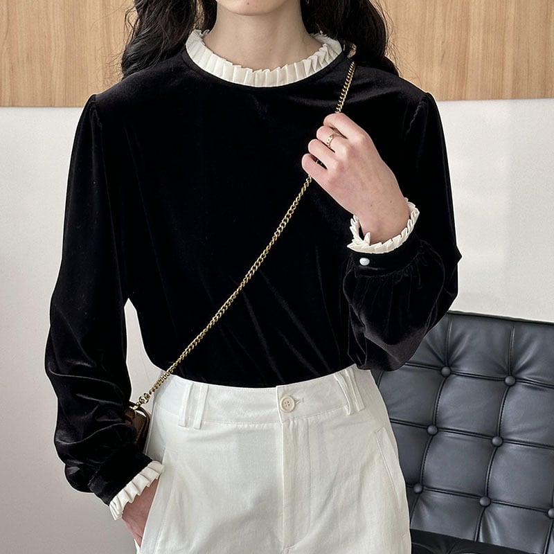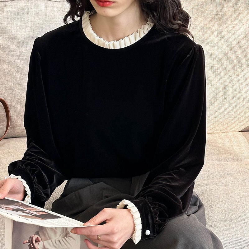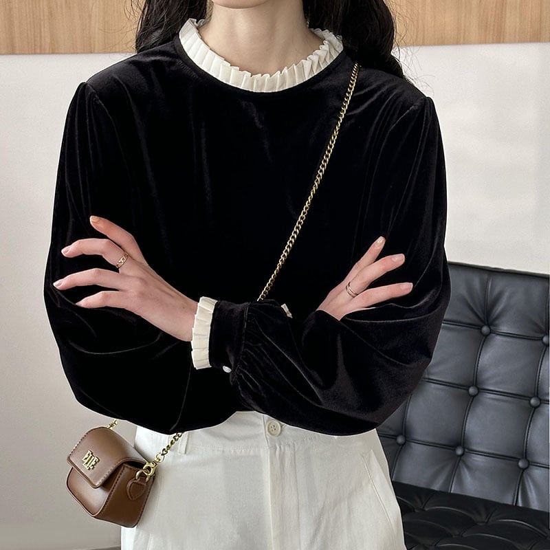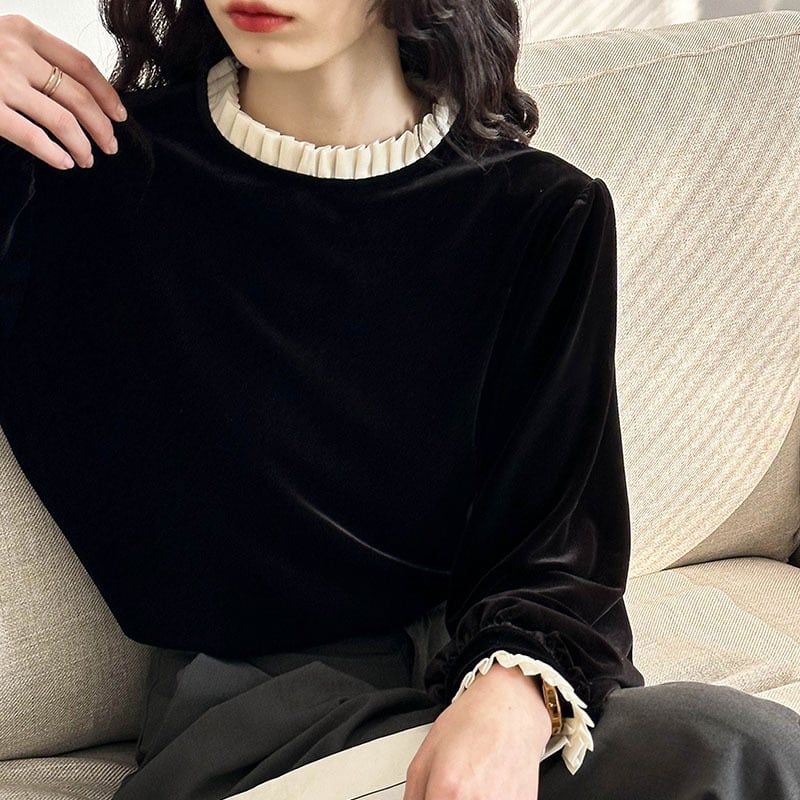 【tops】フェイクレイヤードベルベットトップス Q6964