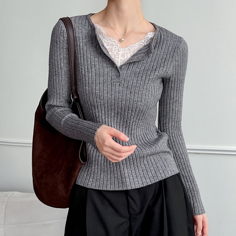 【tops】レースドッキングニットトップス Q6969