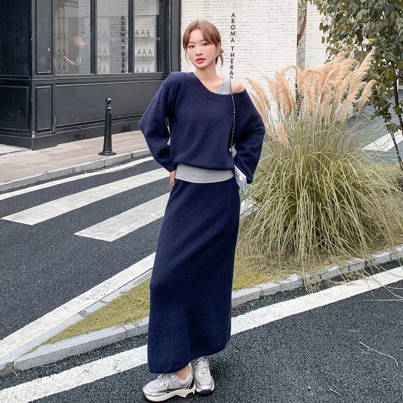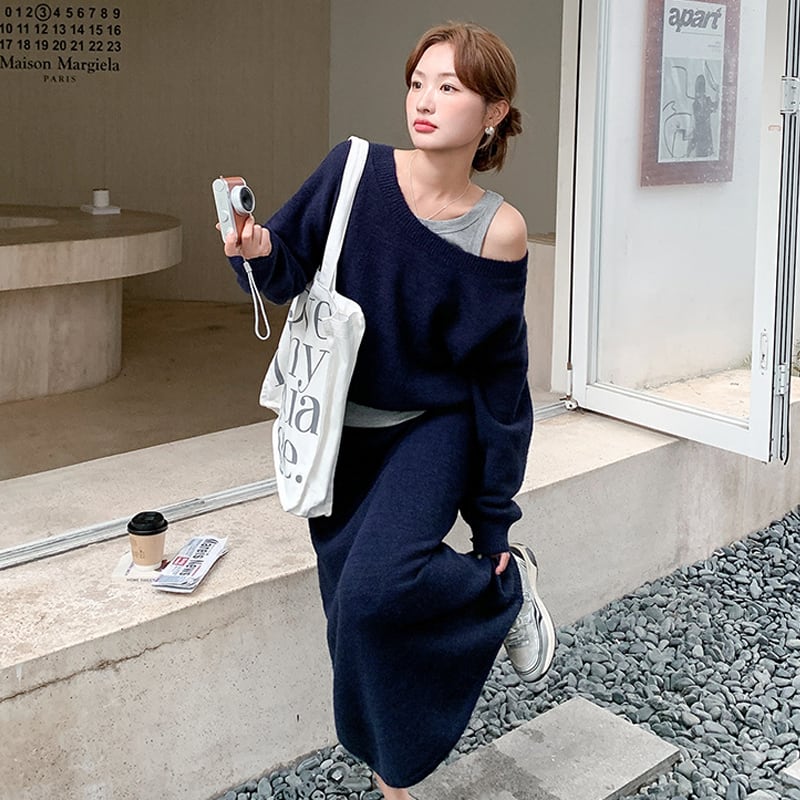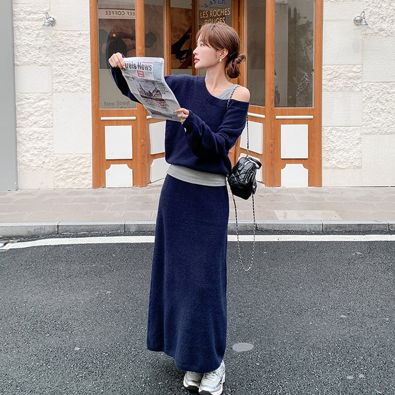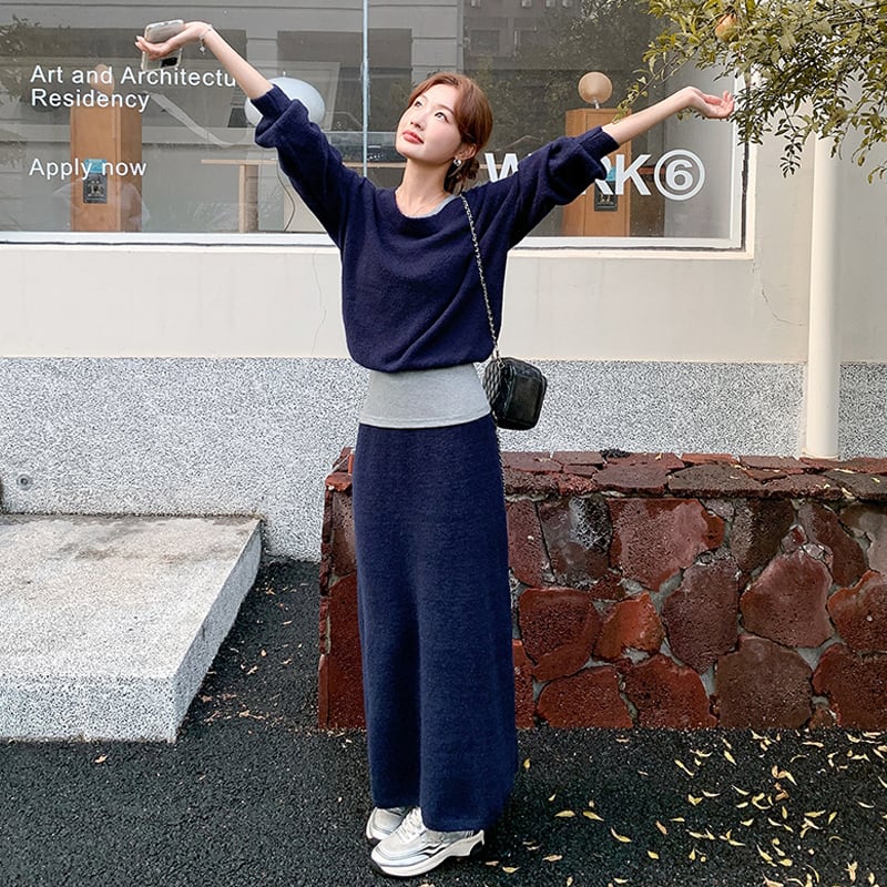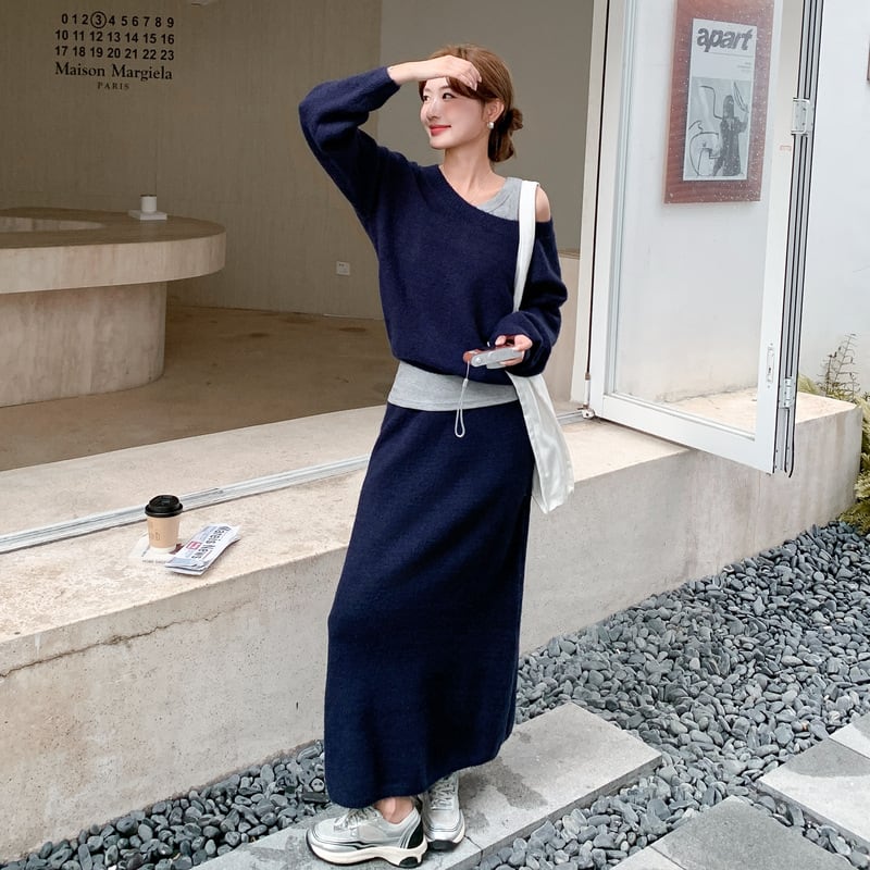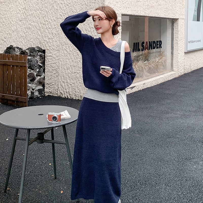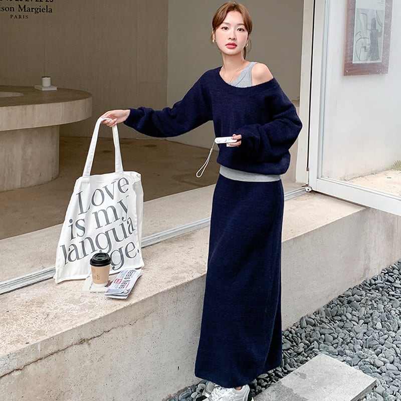 【set】キャミ×ニットトップス×ロングスカート3点セット Q6974