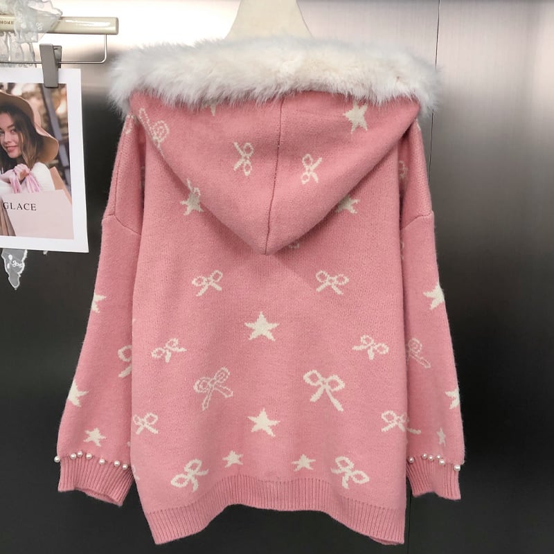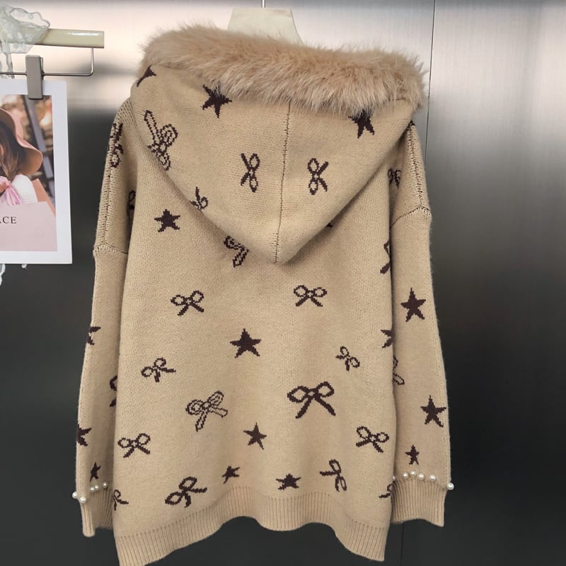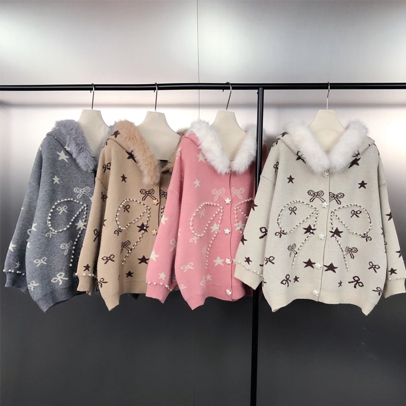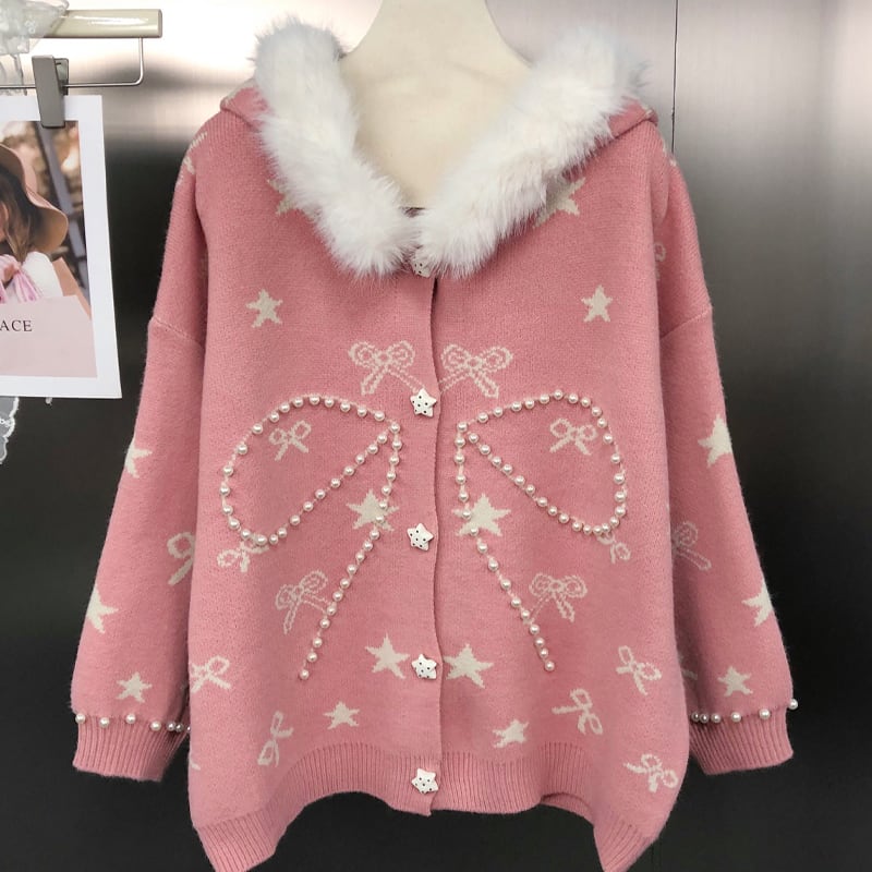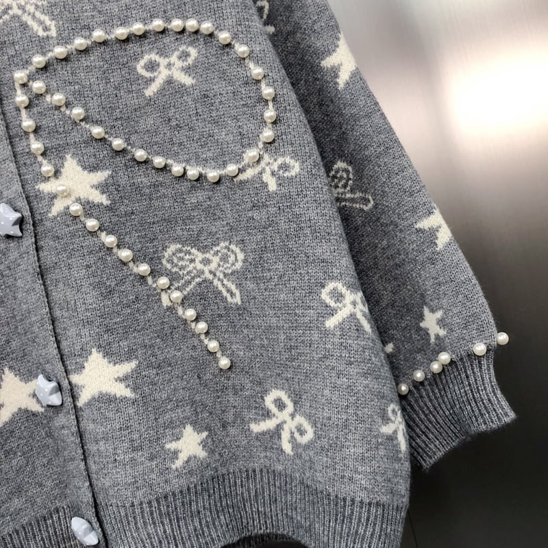 【outer】パール付きニットカーディガン Q6981