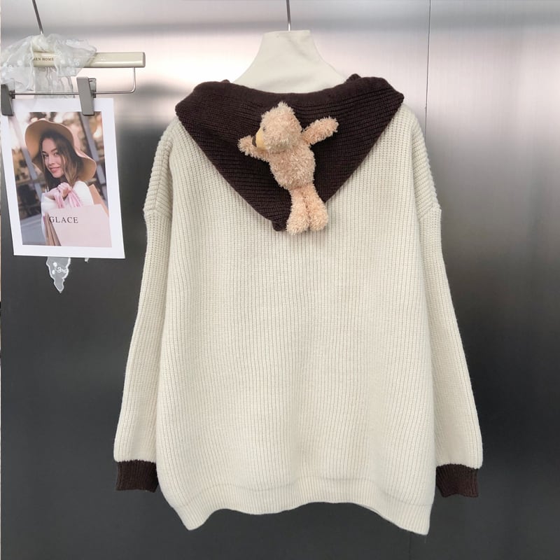 【outer】フード付きニットカーディガン Q6983