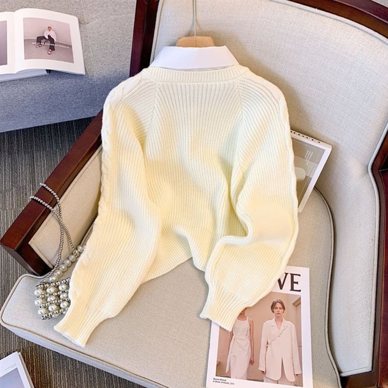 【tops】フェイクレイヤードニットトップス Q6986