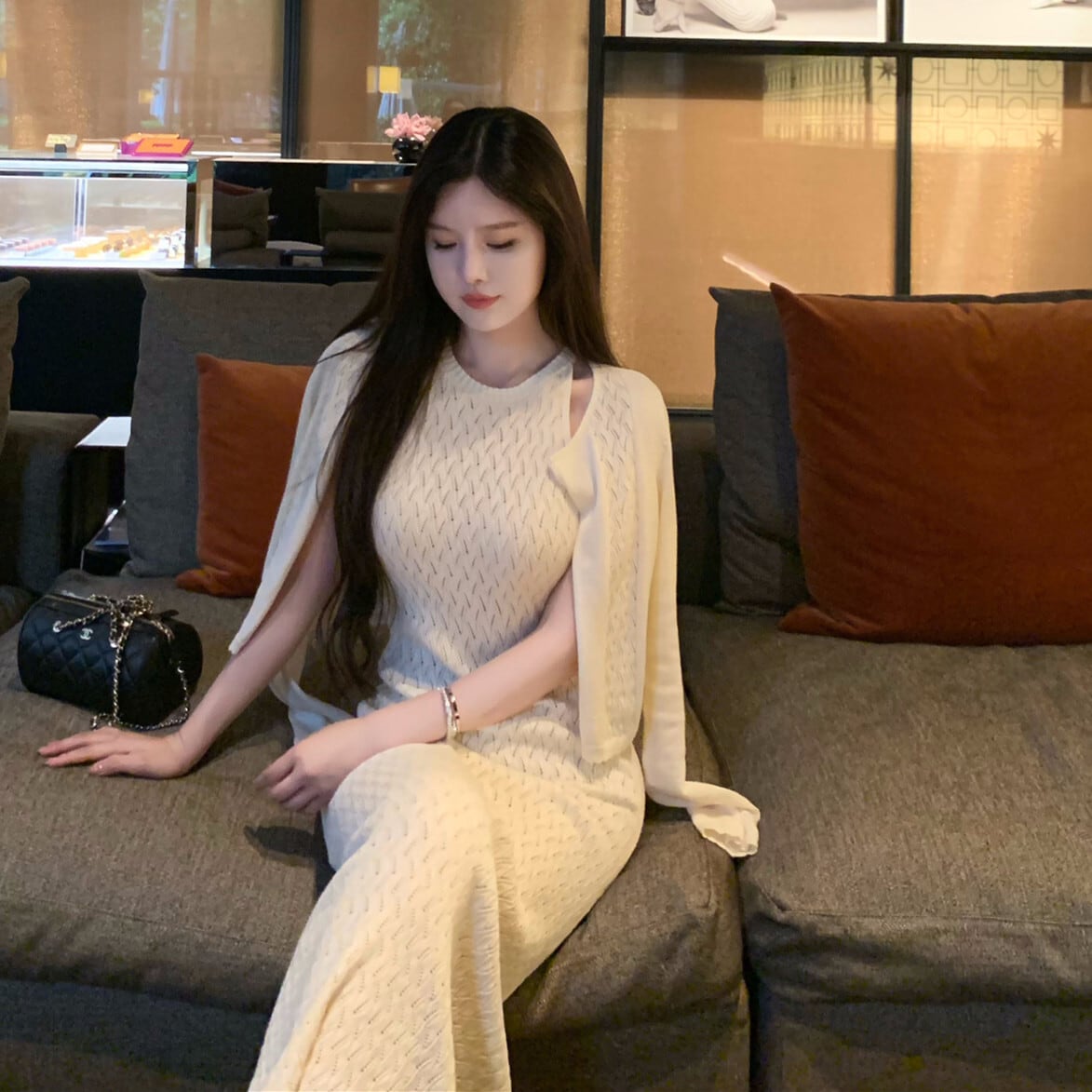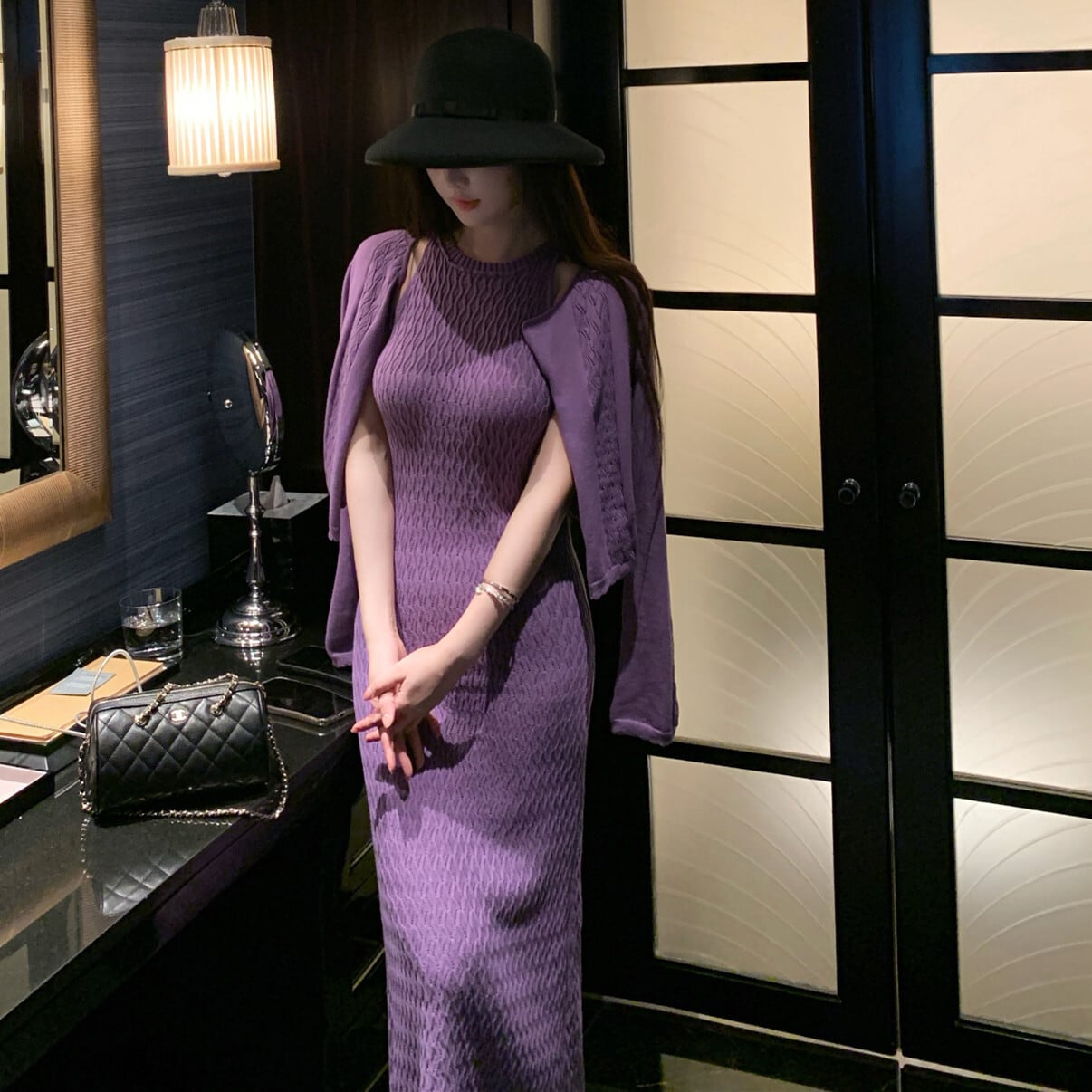 【set】ニットカーディガン×ノースリーブワンピースセット N3447