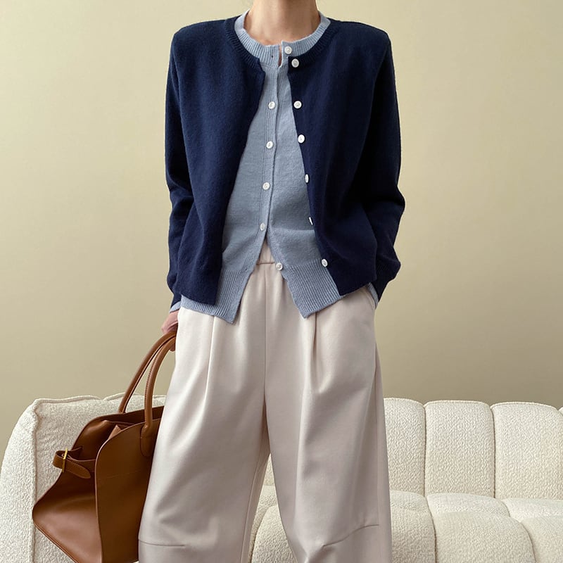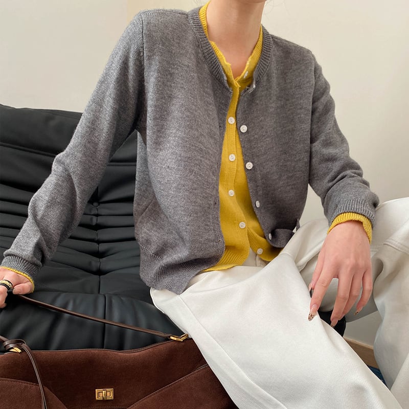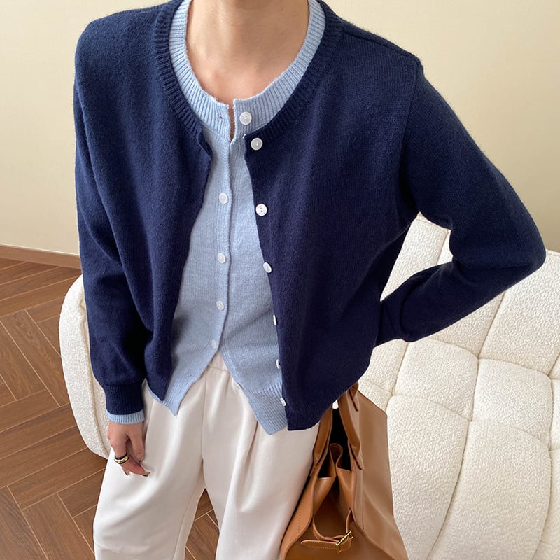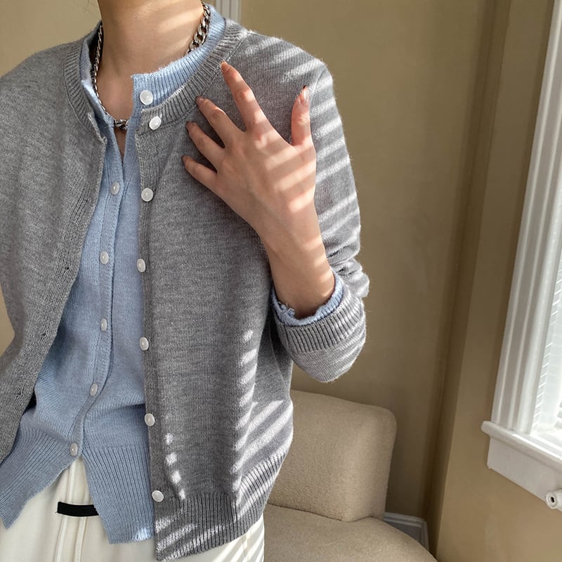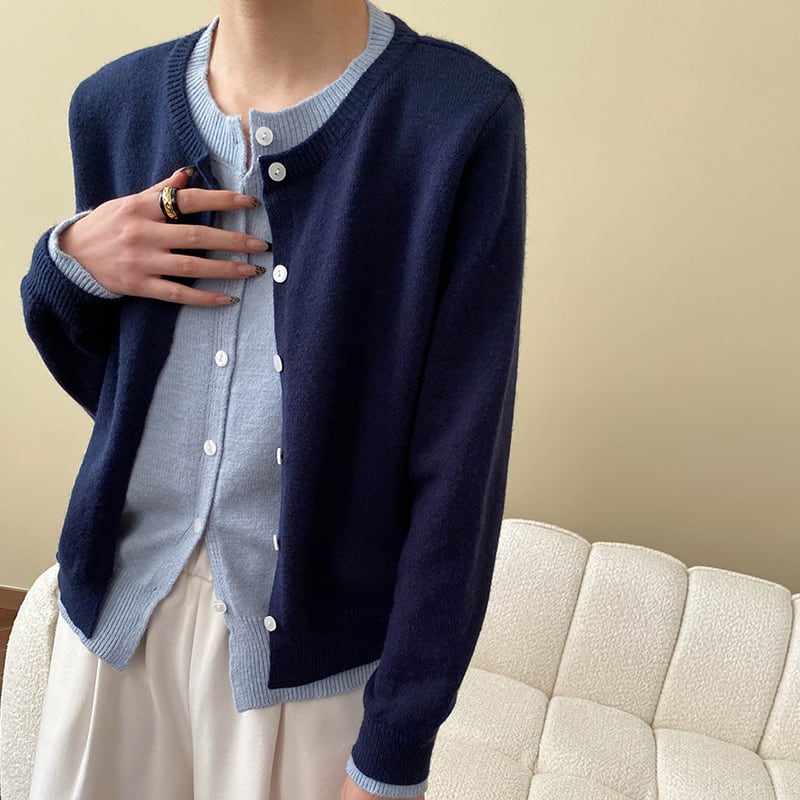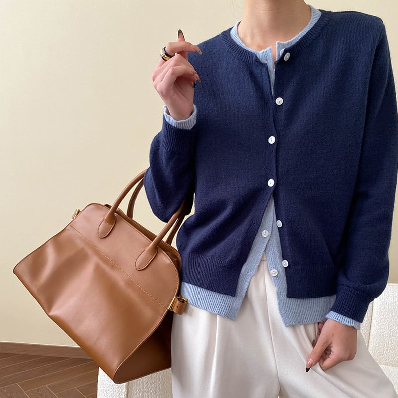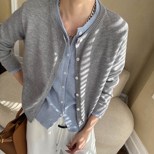 【outer】フェイクレイヤードニットカーディガン Q7001