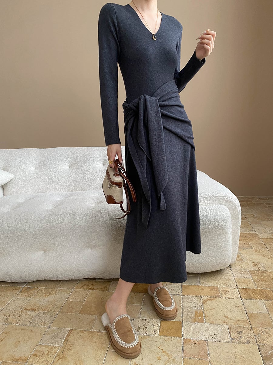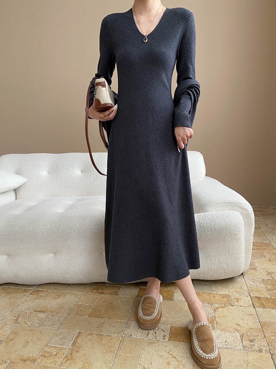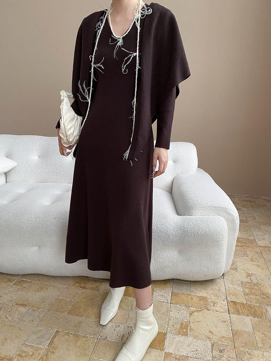 【dress】ショール付きニットワンピース Q7003