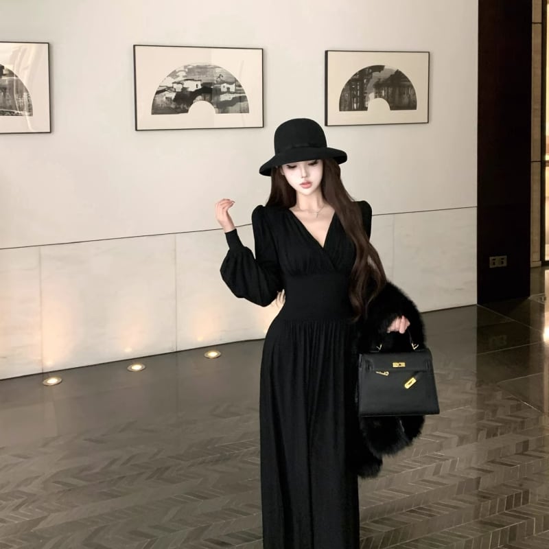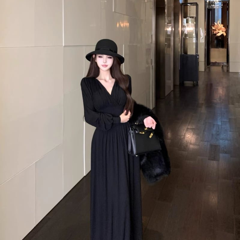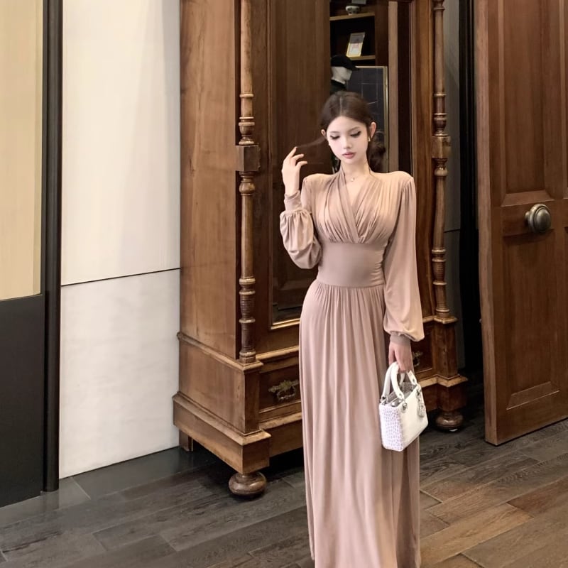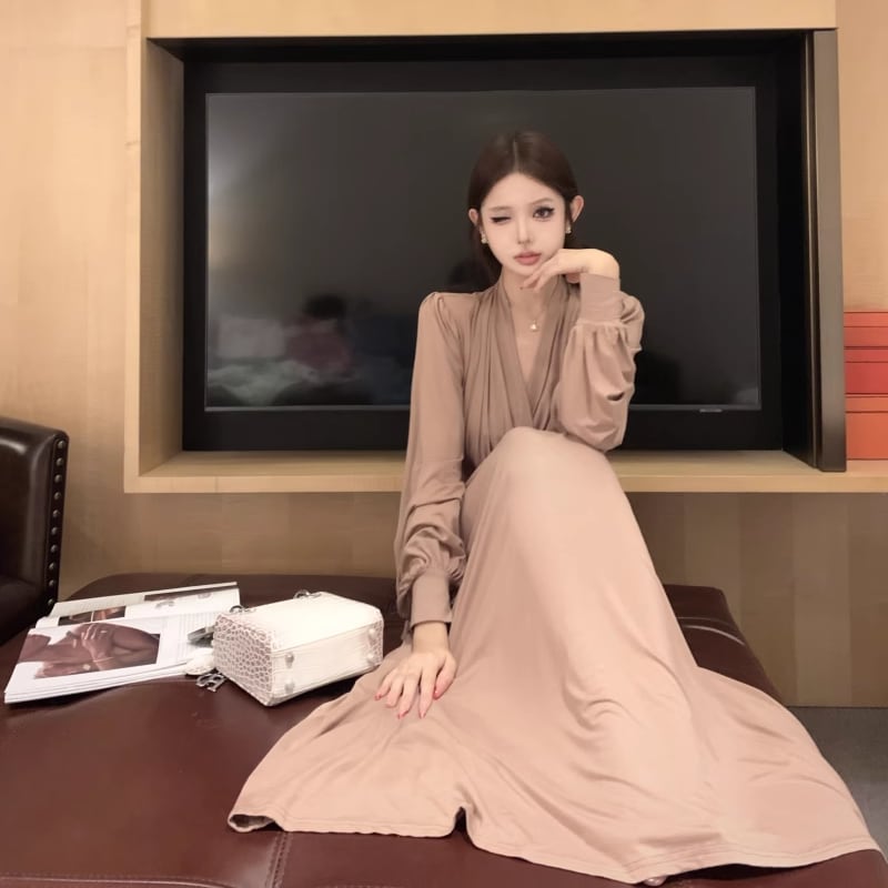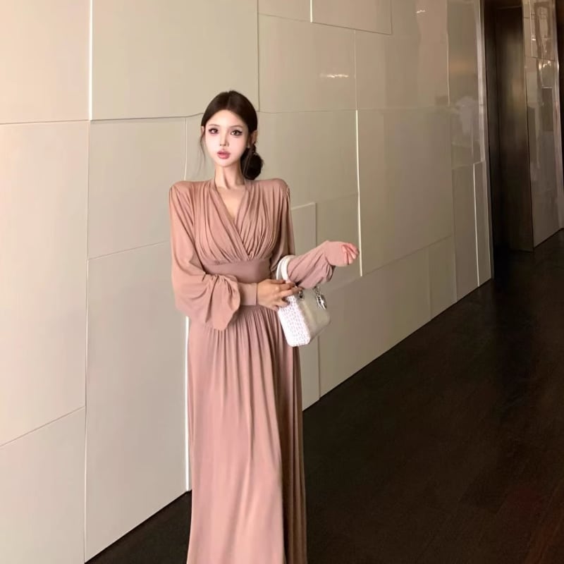 【dress】クロスネックロングワンピース Q7014