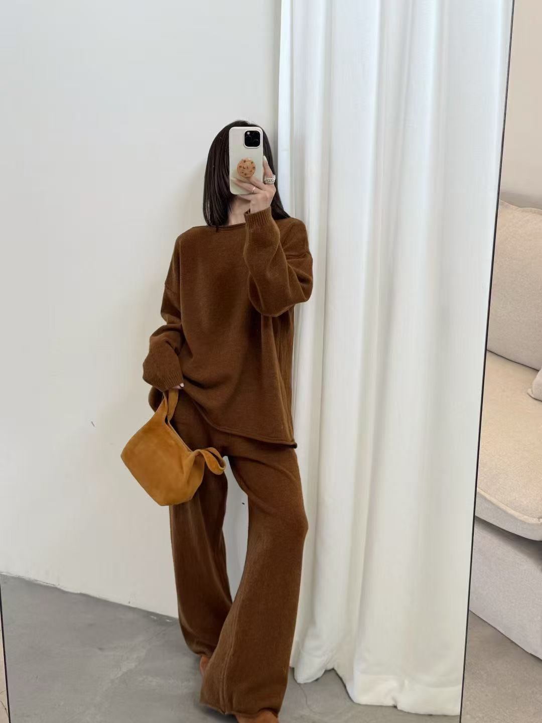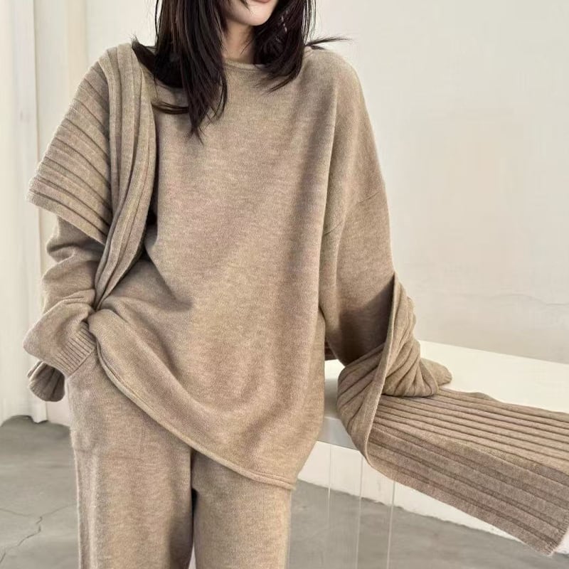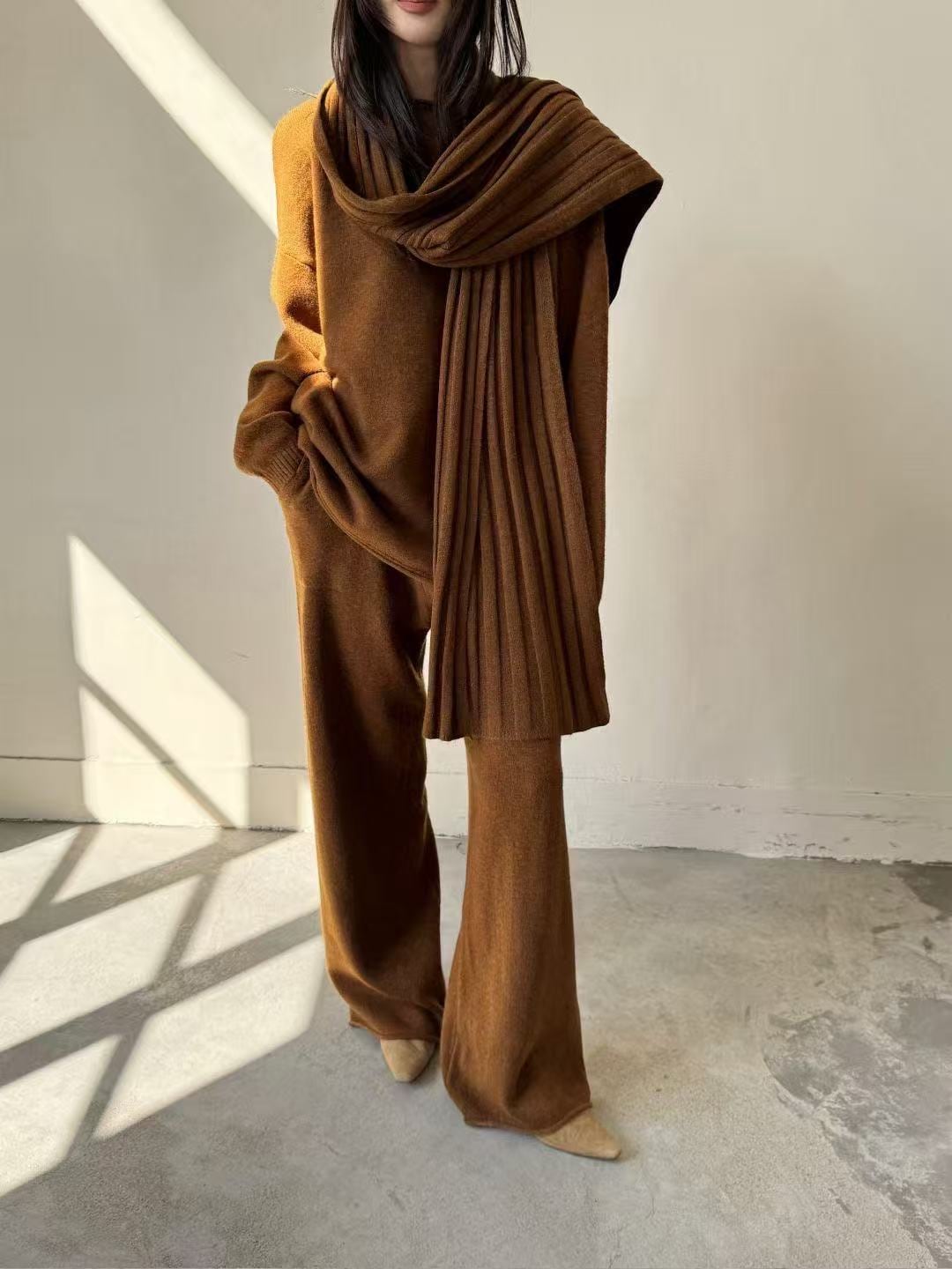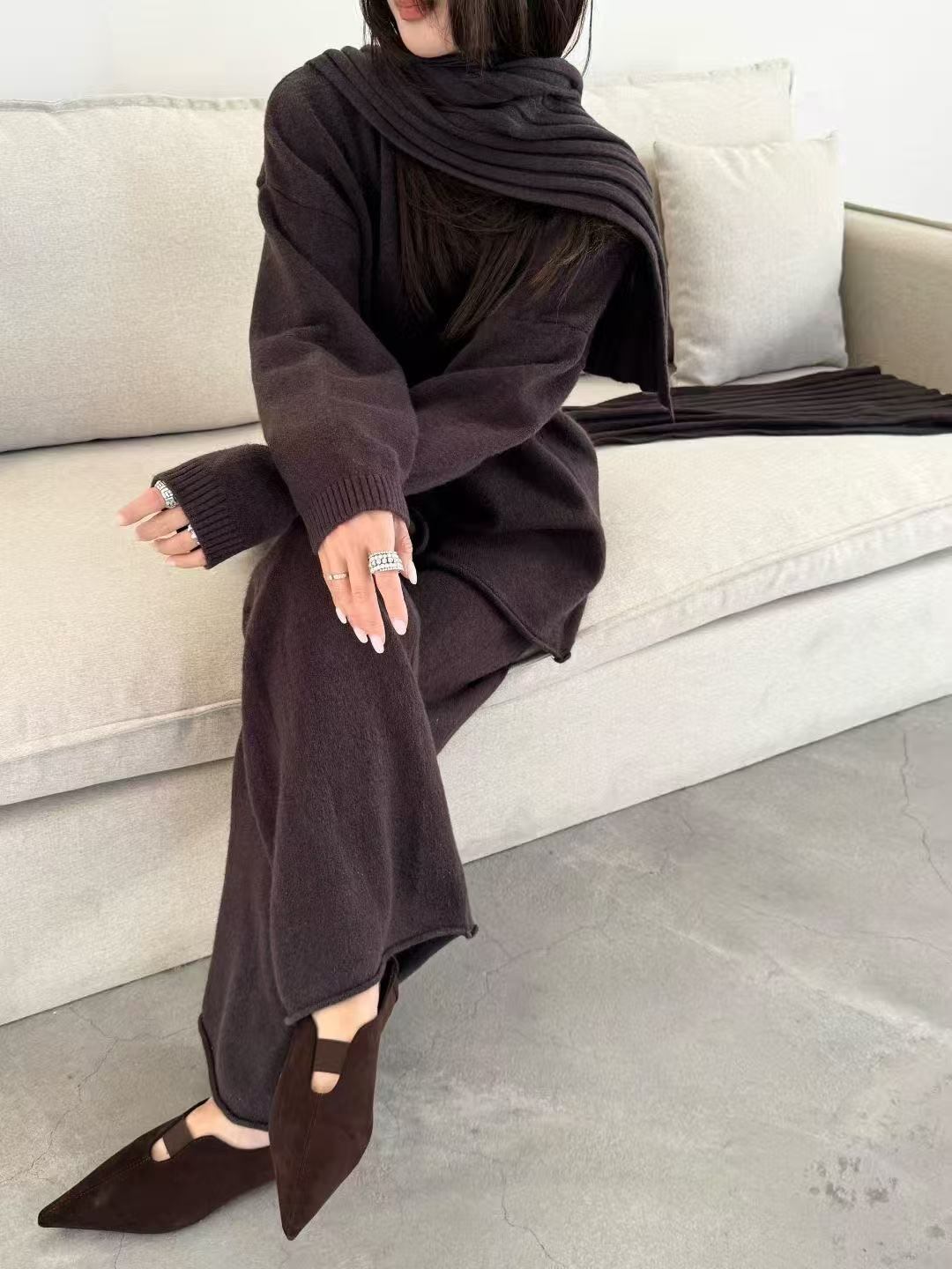 【set】マフラー×ニットトップス×ワイドパンツ3点セット Q7022