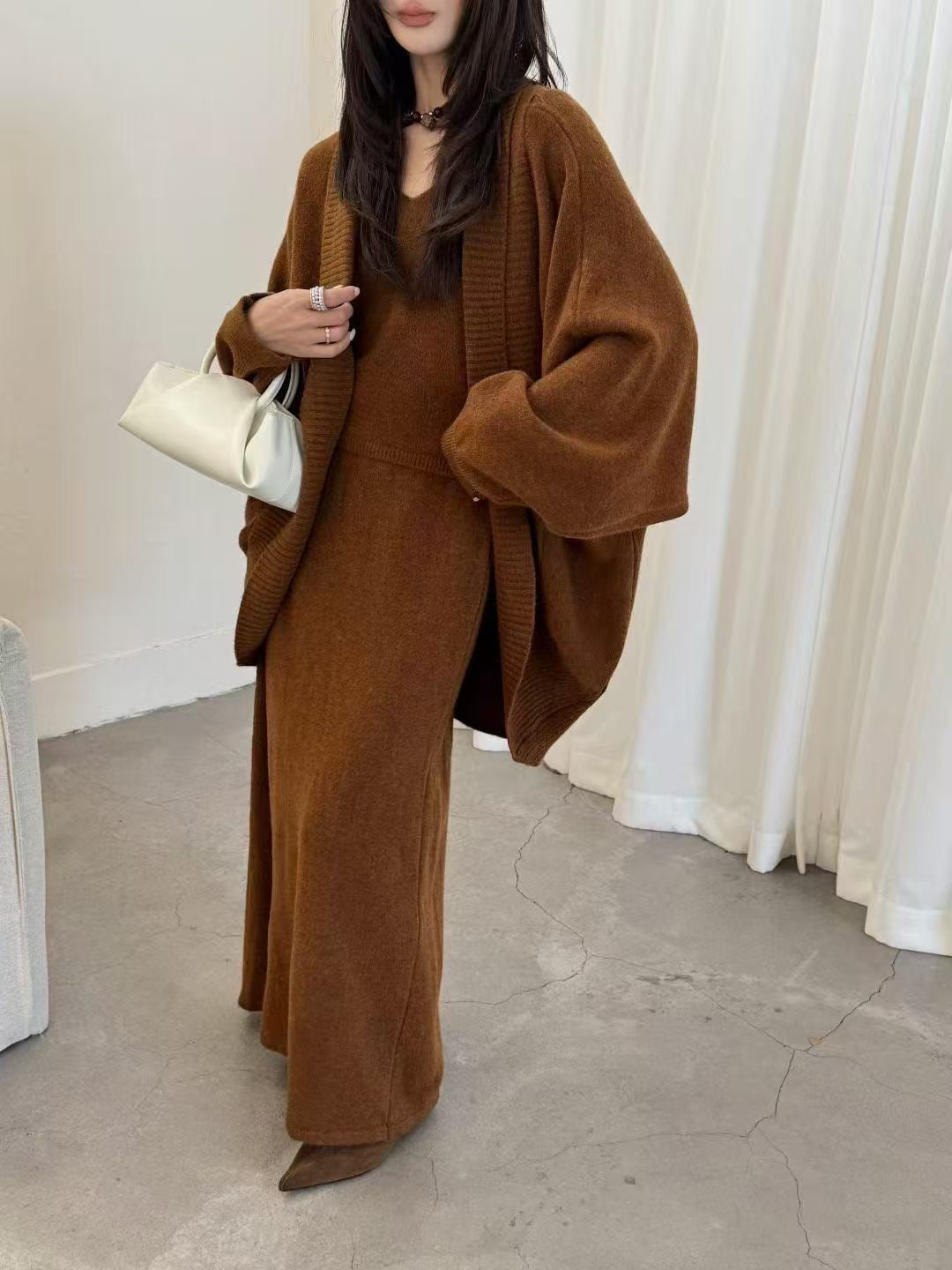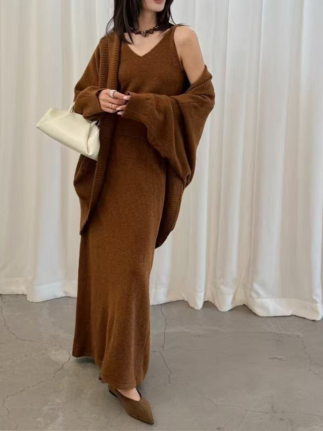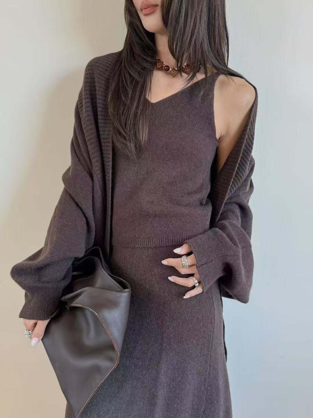 【set】ニットキャミ×カーディガン×ロングスカート3点セット Q7024