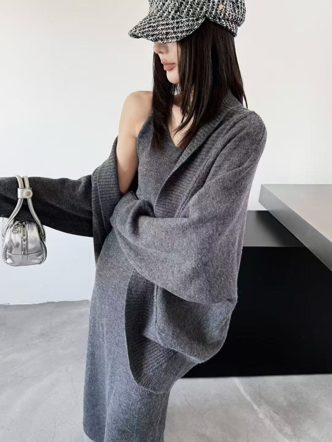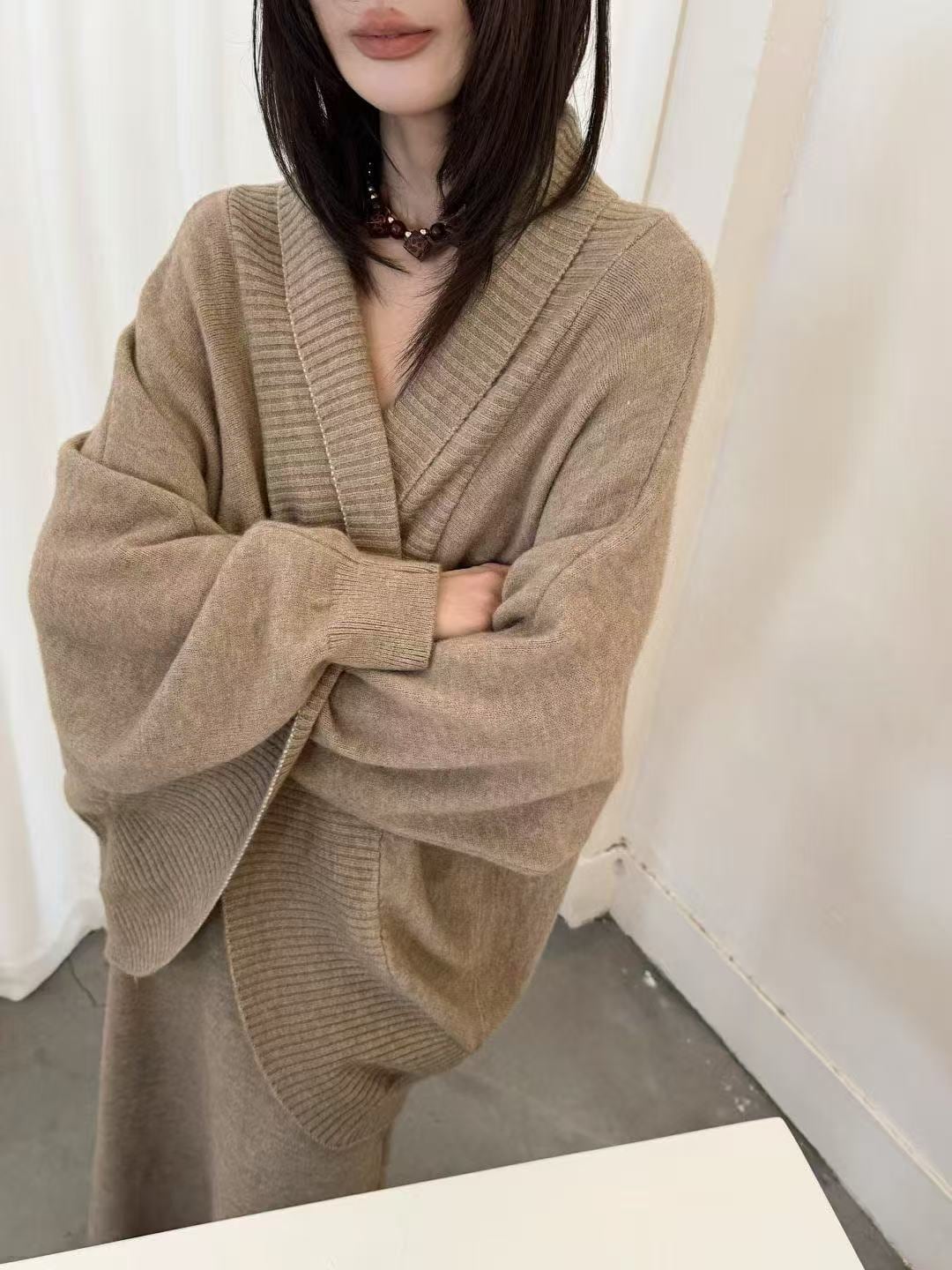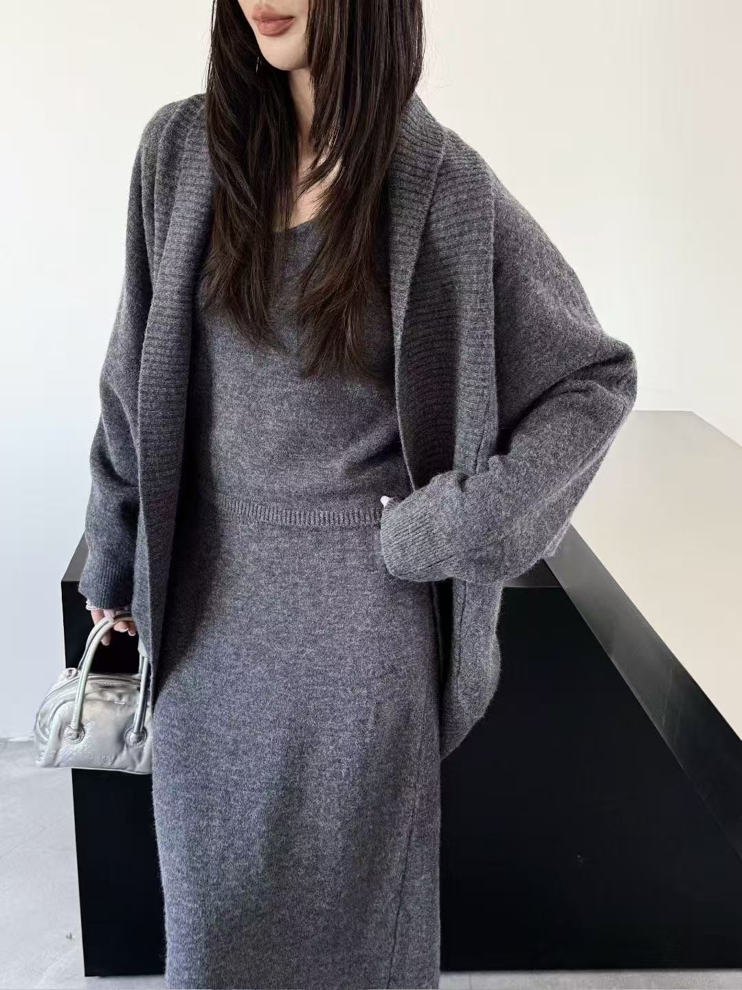 【set】ニットキャミ×カーディガン×ロングスカート3点セット Q7024