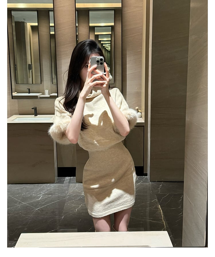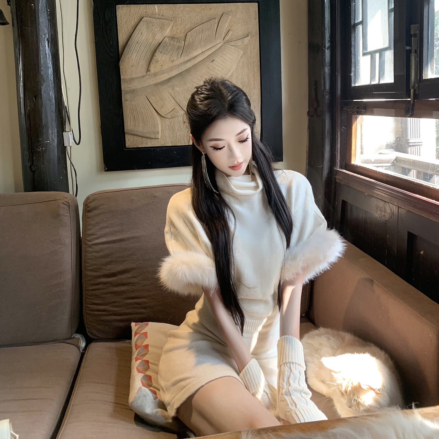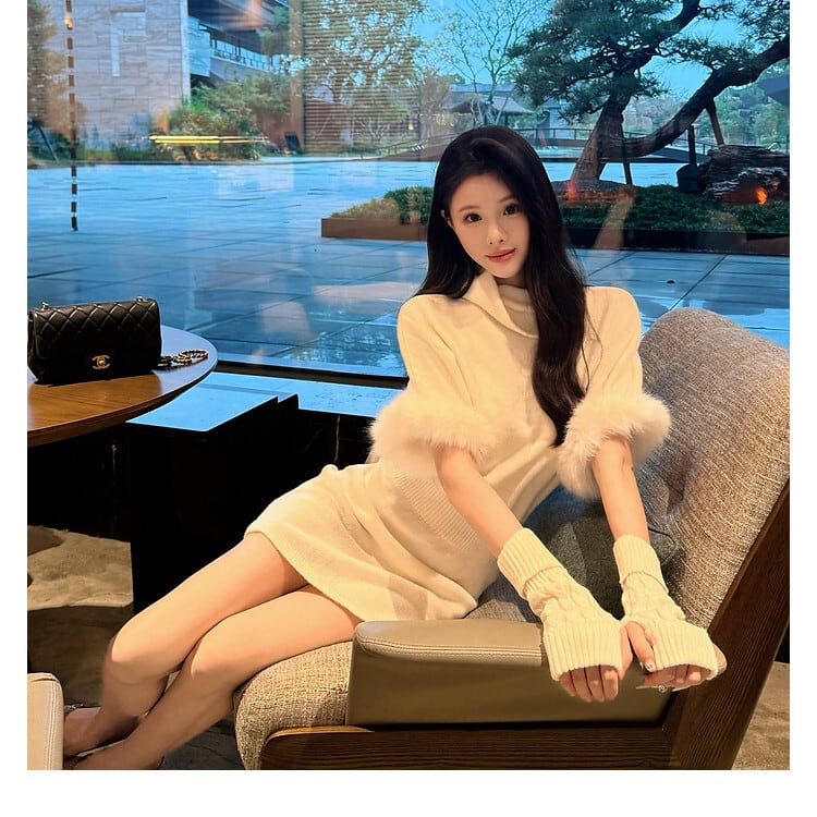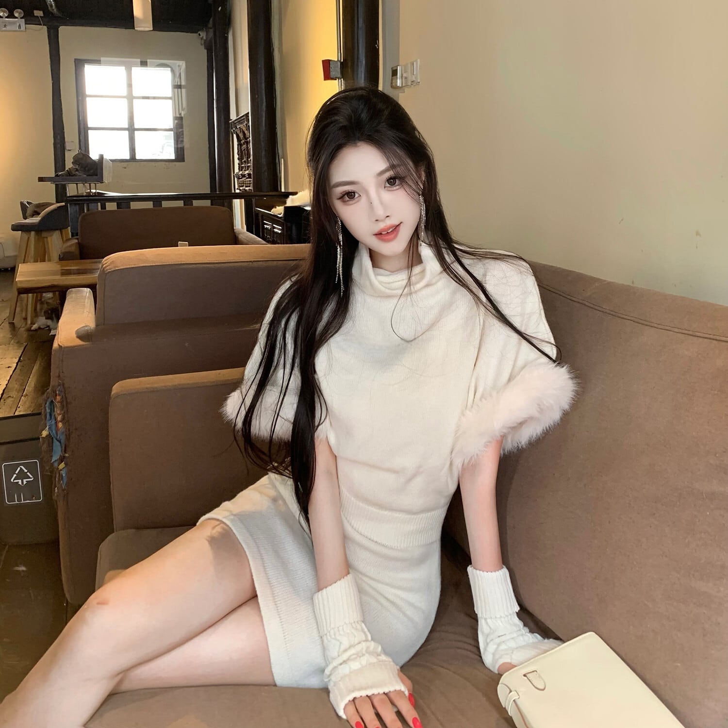 【dress】アームカバー付き袖ファーミニワンピース N3449