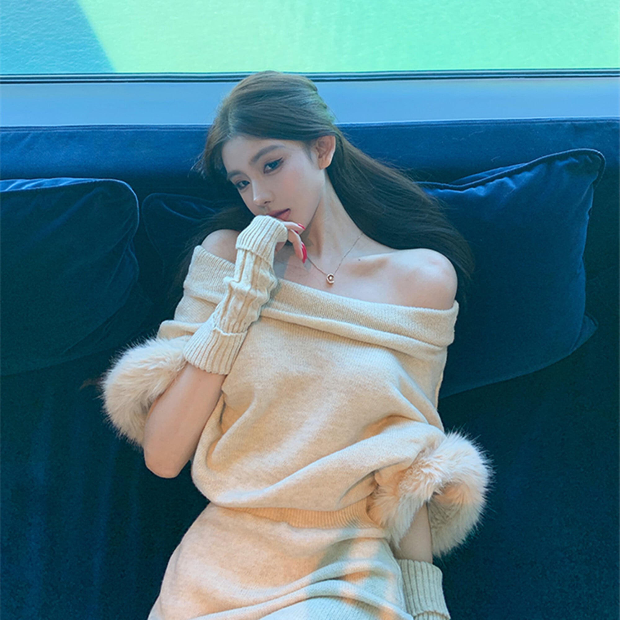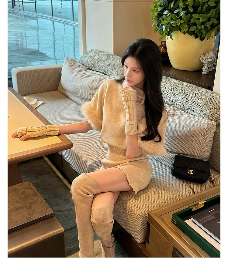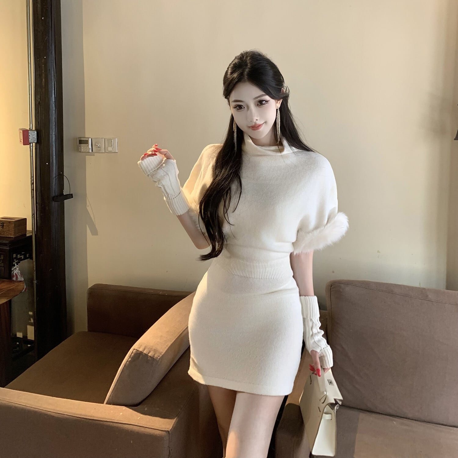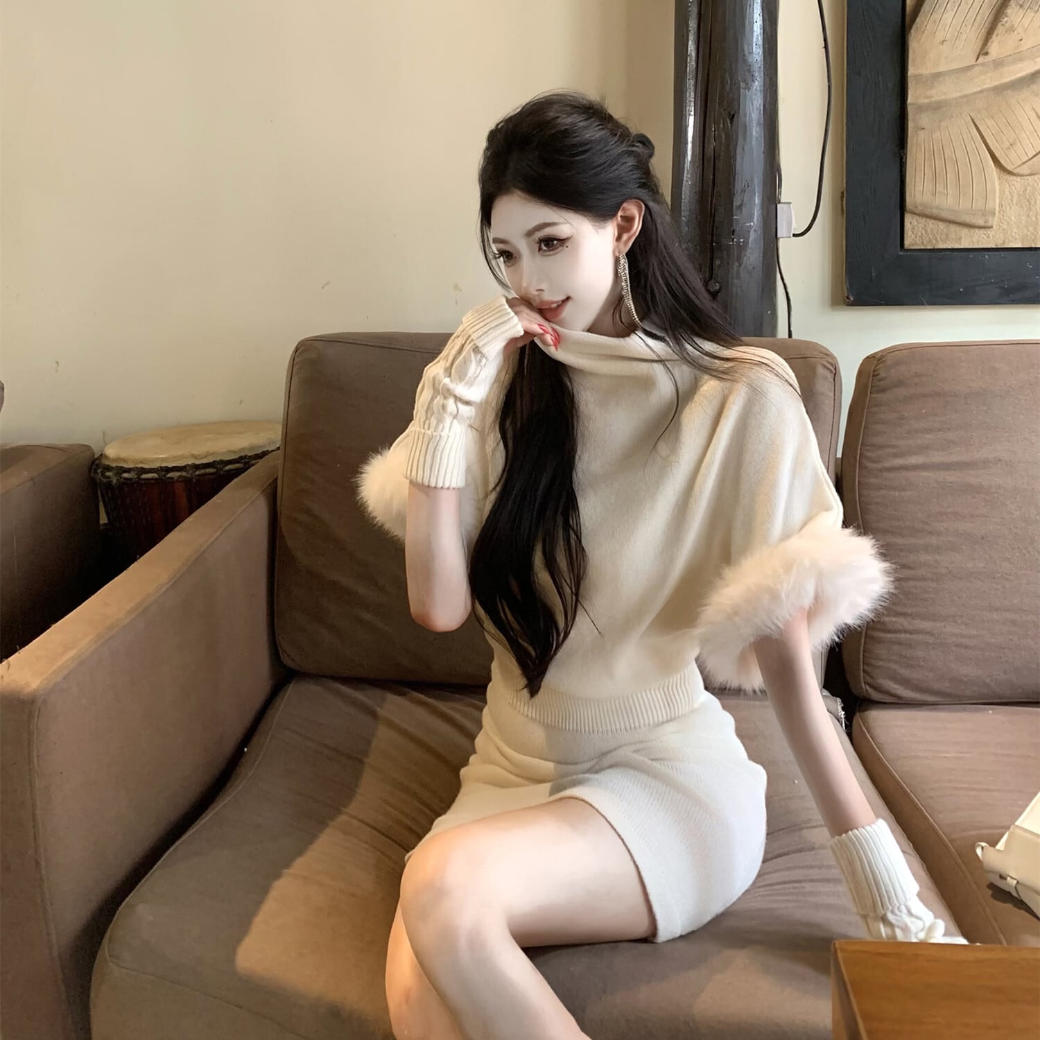 【dress】アームカバー付き袖ファーミニワンピース N3449