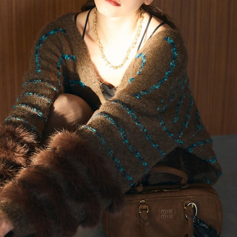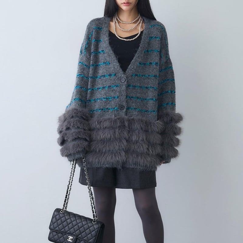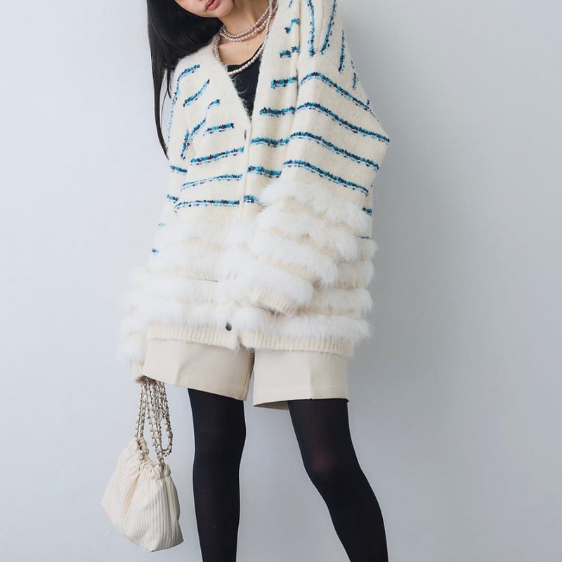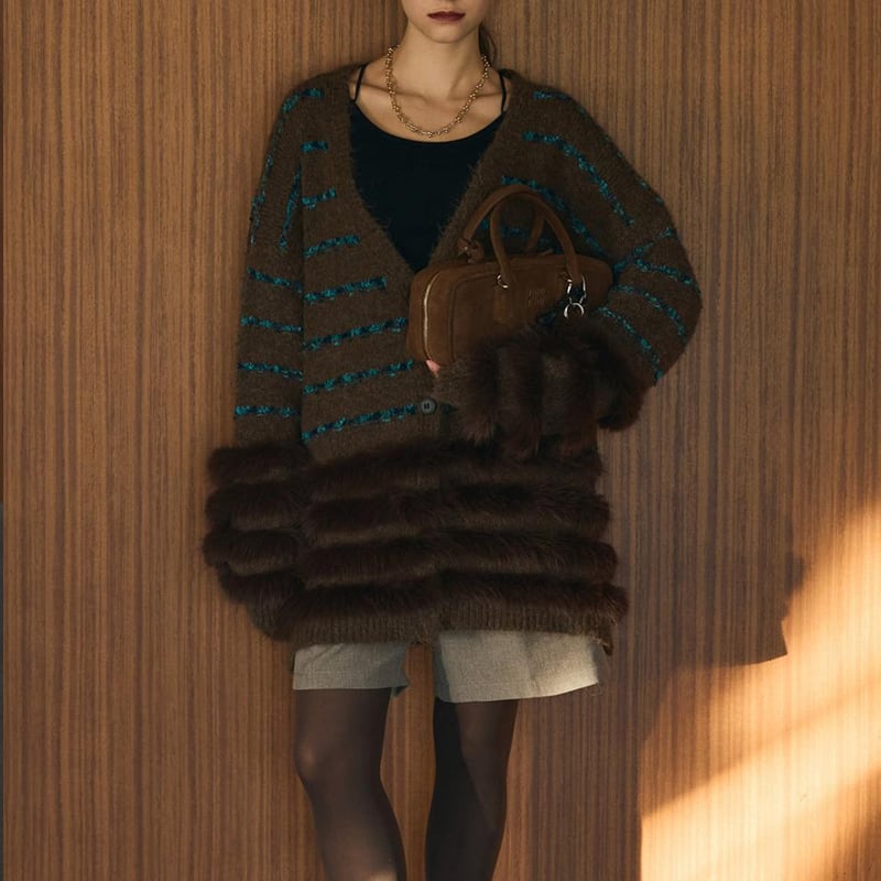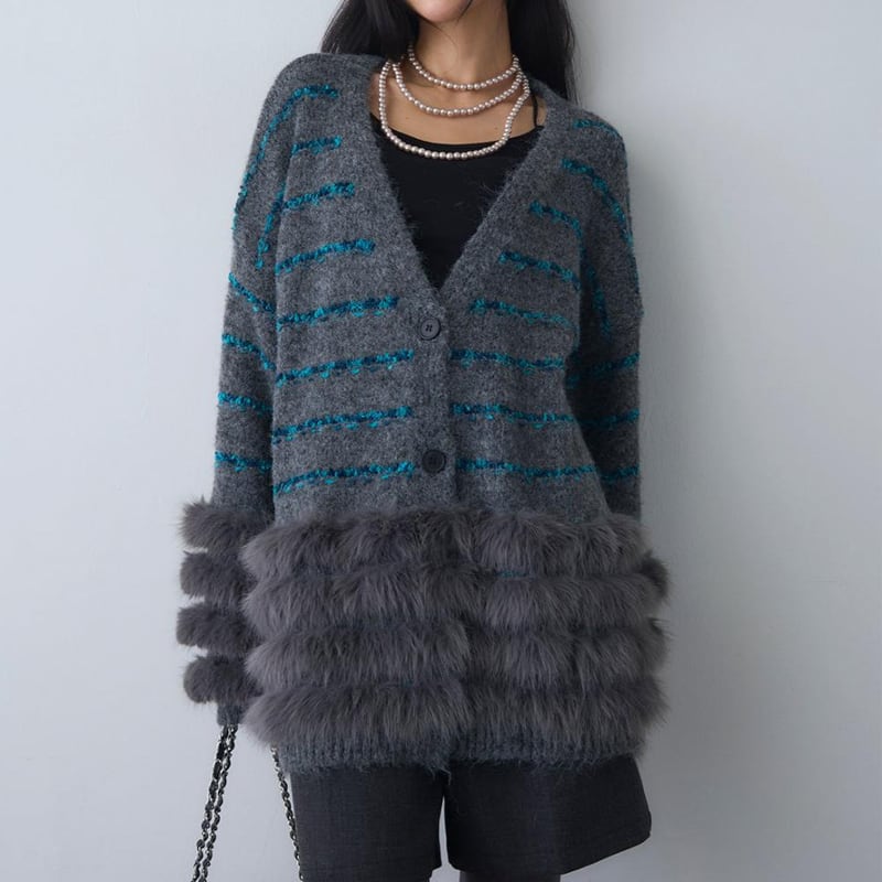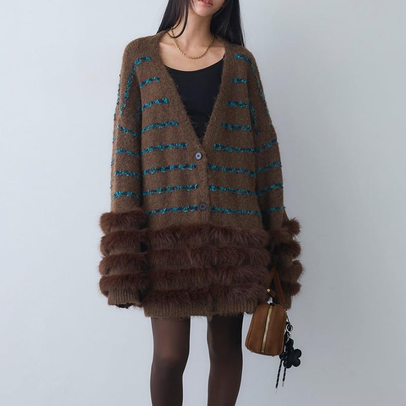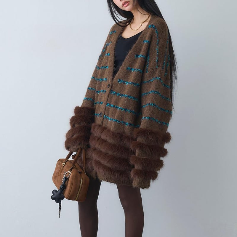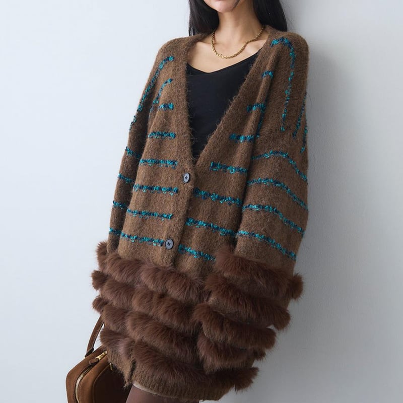 【outer】ファードッキングニットカーディガン Q7027