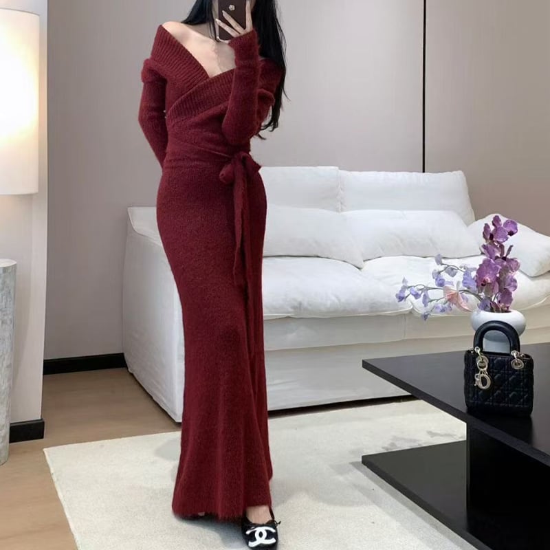 【set】カシュクールトップス×ロングスカートセット Q7043