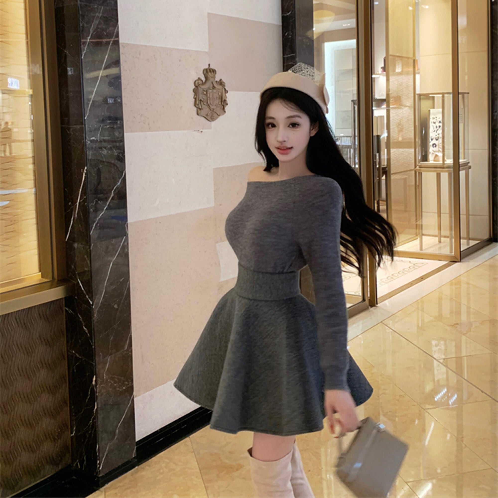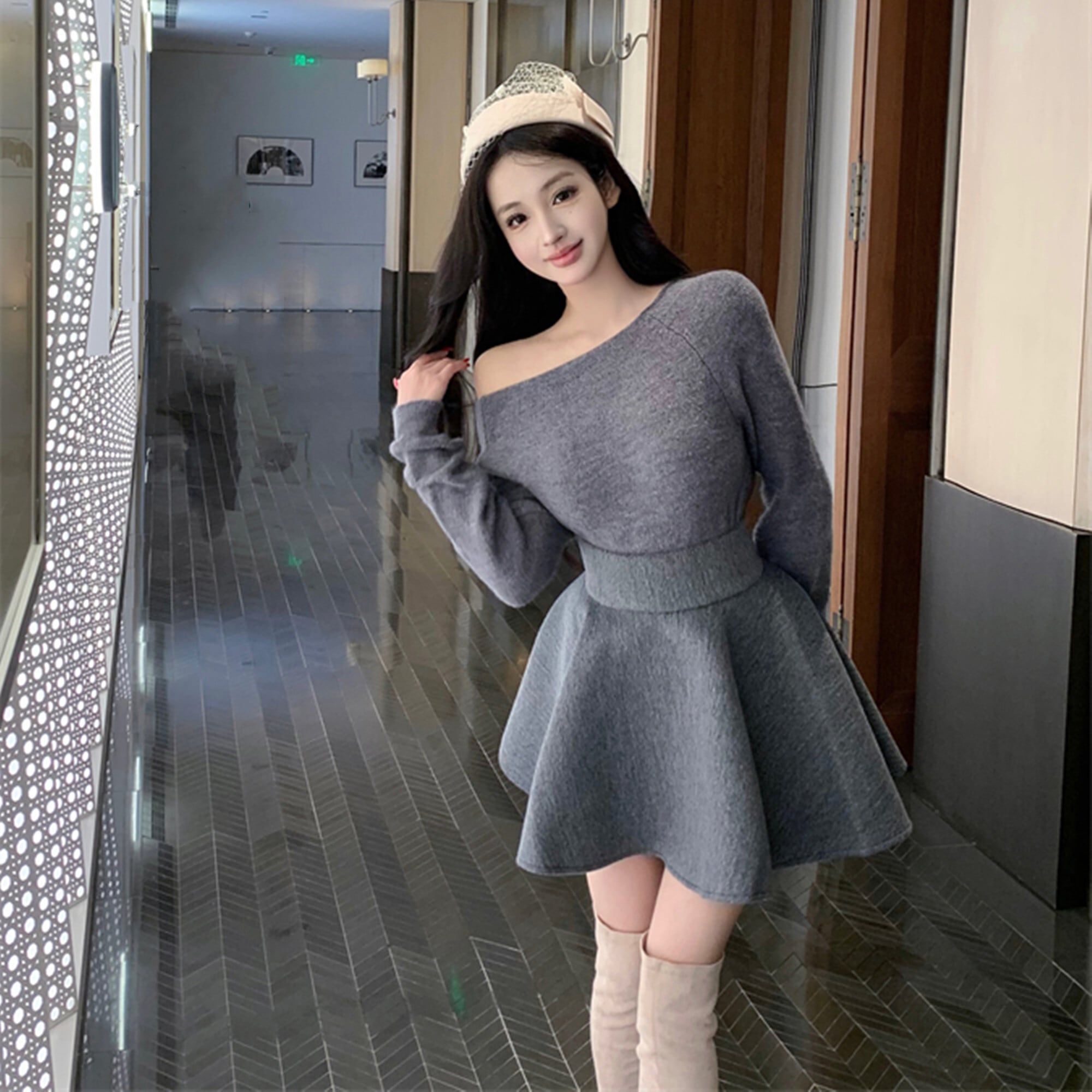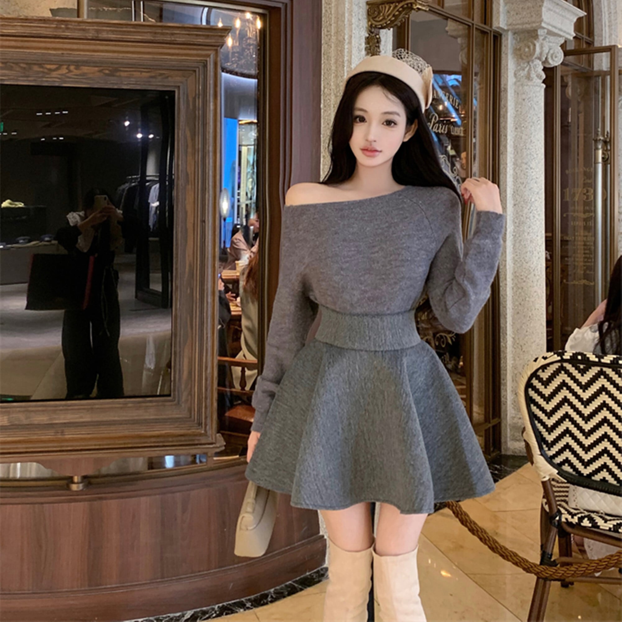 【set】オフショルニットトップス×ミニスカートセット N3456