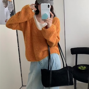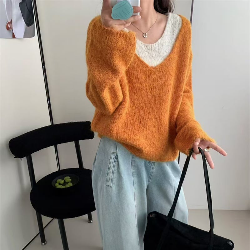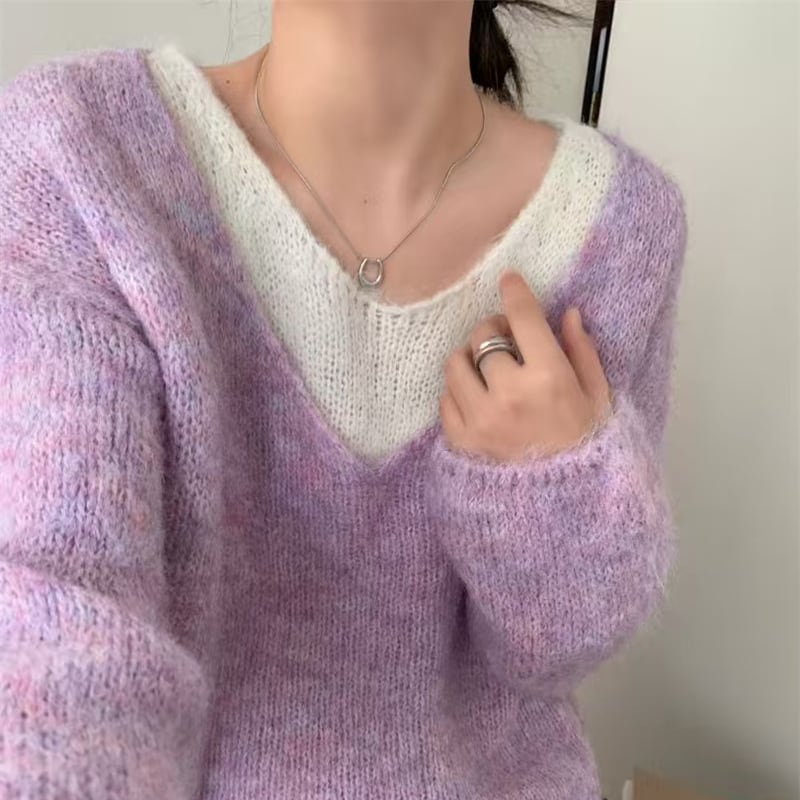 【tops】フェイクレイヤードニットトップス Q7072