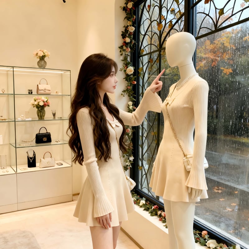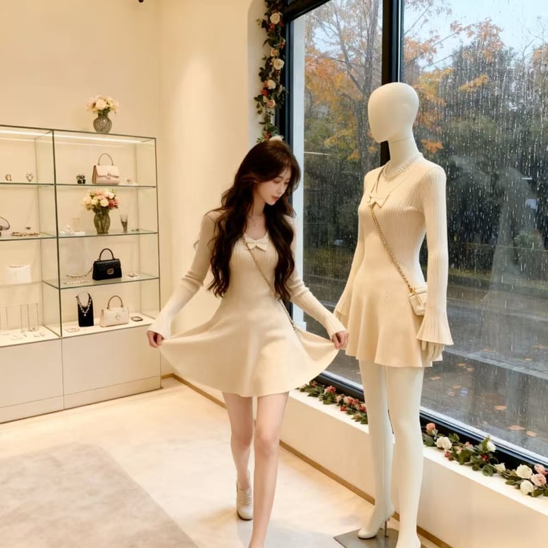 【dress】リボン付きフレアニットワンピース Q7118