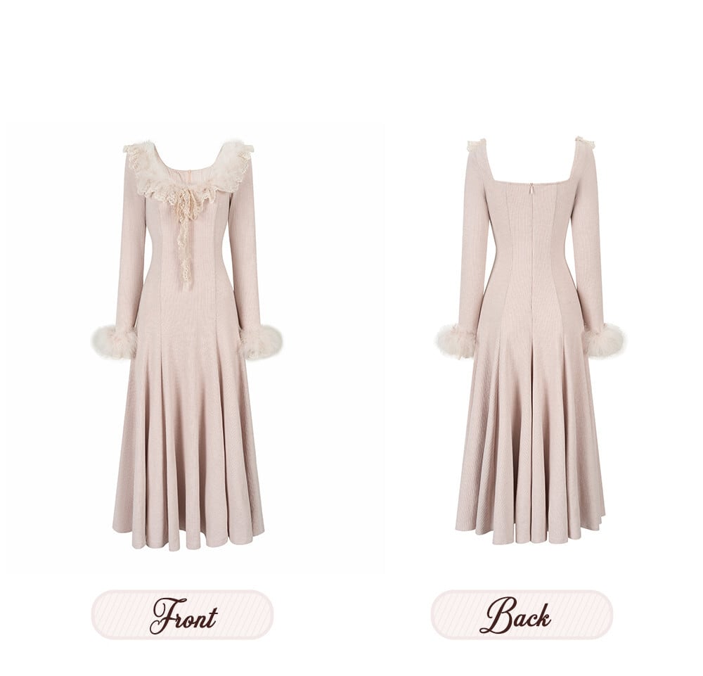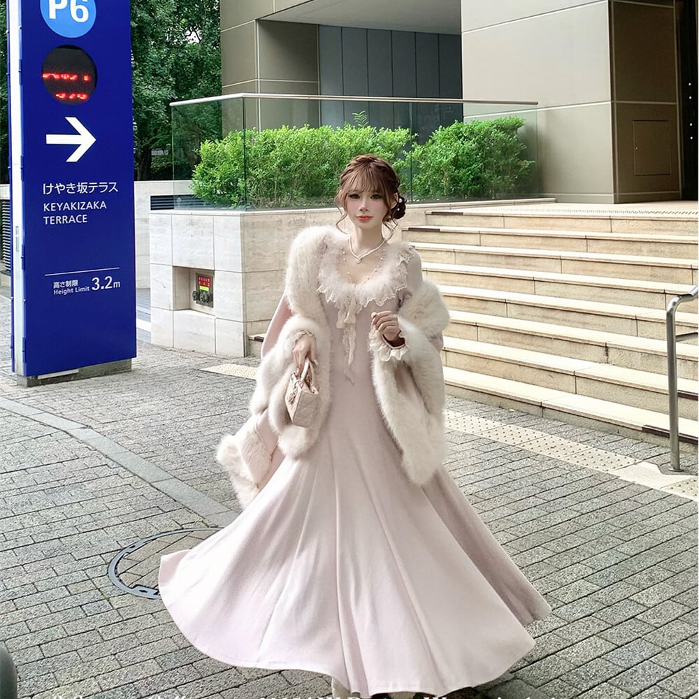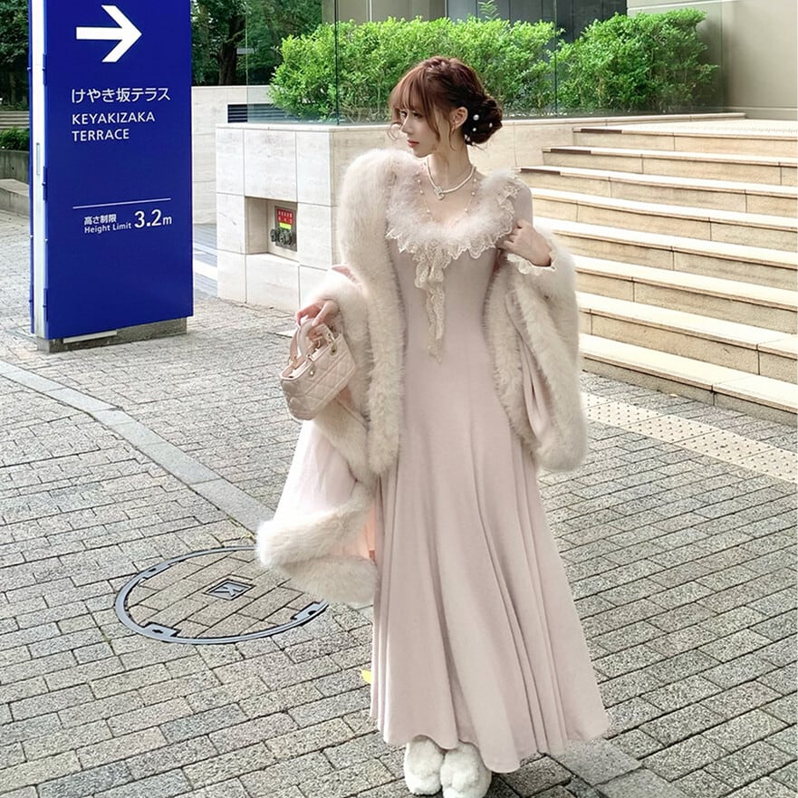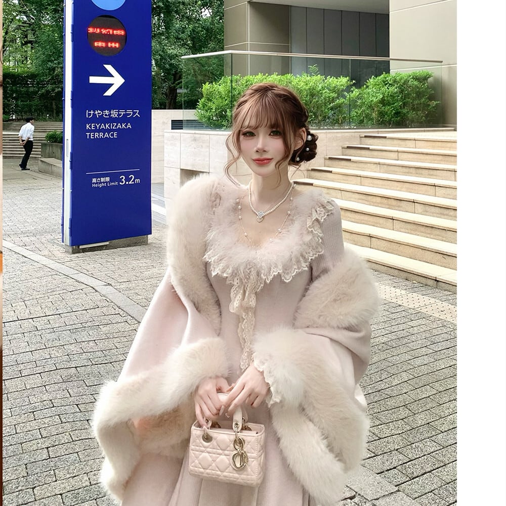 【dress】ファーレースドッキングニットワンピース N3464