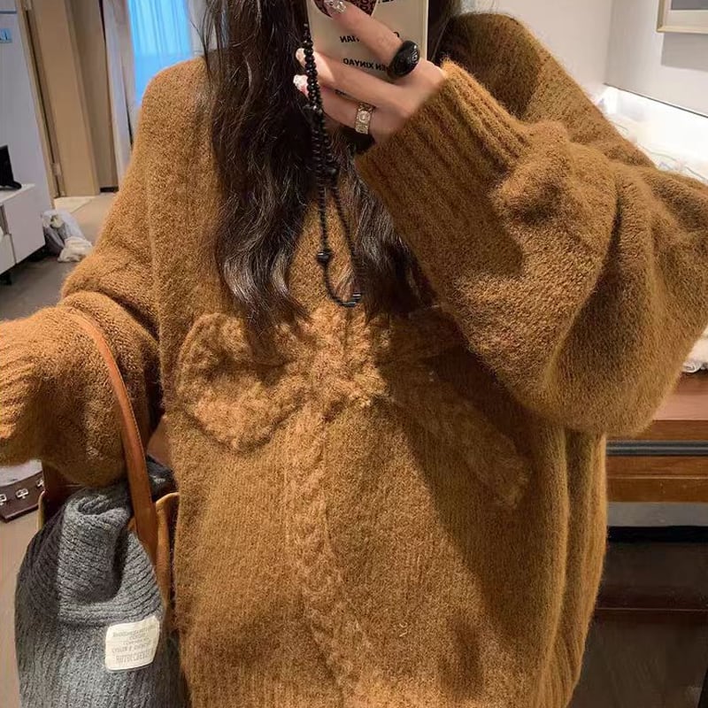 【tops】ビッグリボンニットトップス Q7127