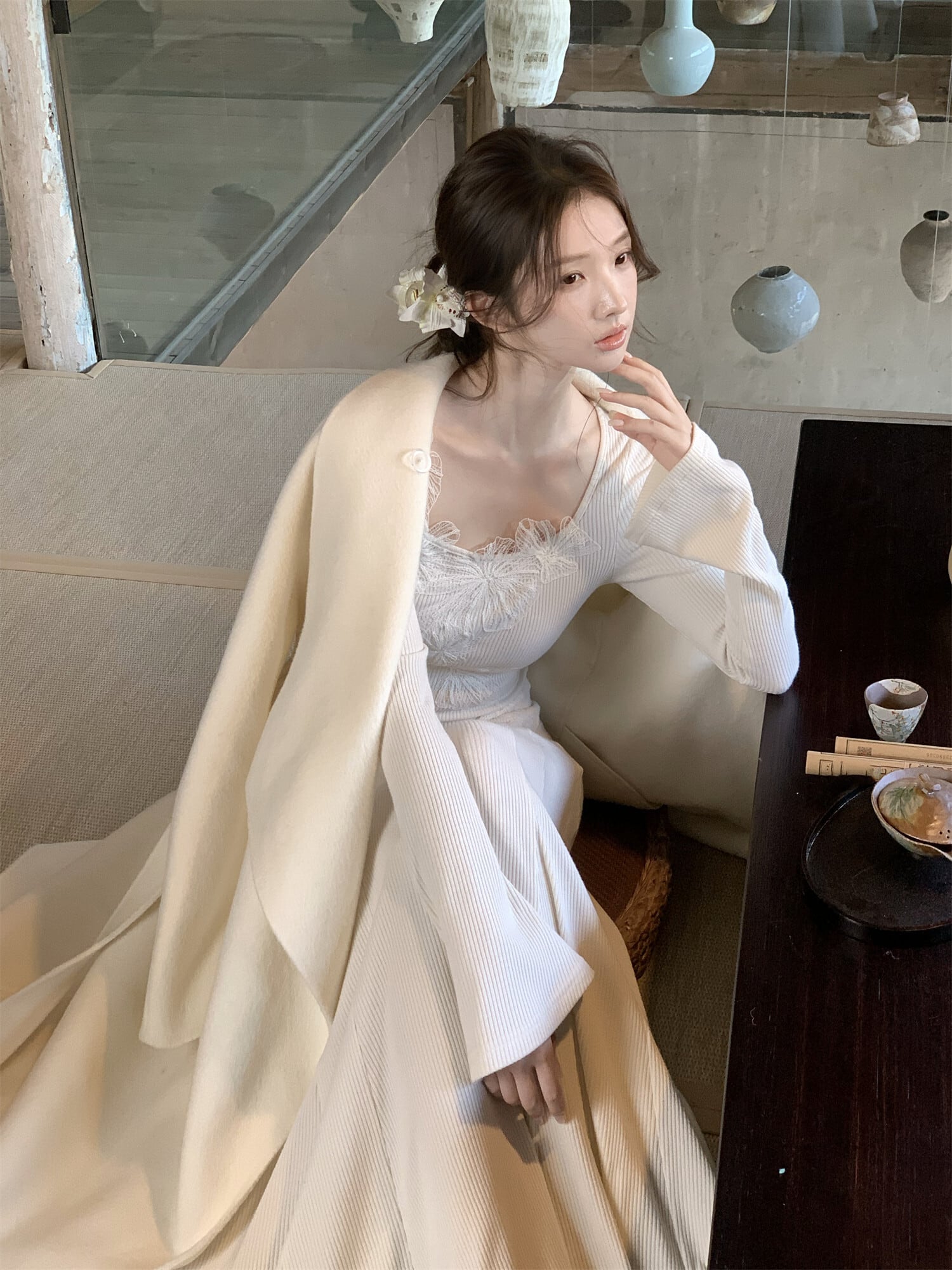 素材:本体:アクリル39%、ナイロン50%、アルパカ11%/レース:ポリエステル58%、ナイロン42%