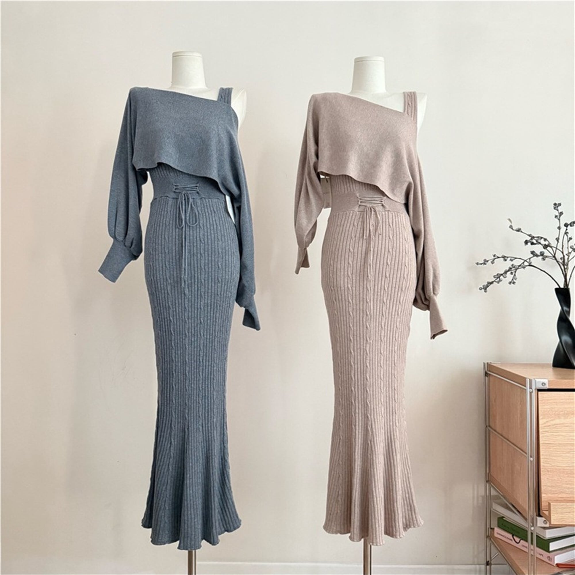 4WAYのスタイリングが楽しめるニットワンピースセット。