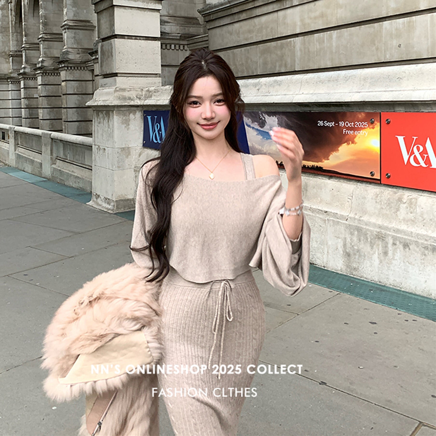 レイヤードしたオープンショルダーや、羽織風なスタイリングなど、様々な着こなしのアレンジが可能。