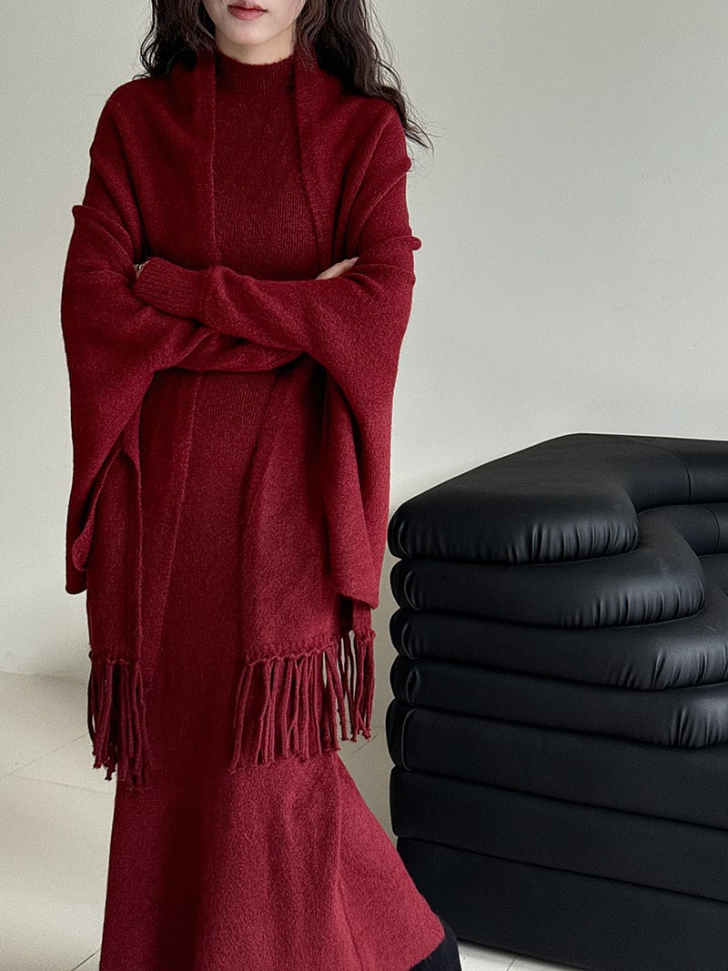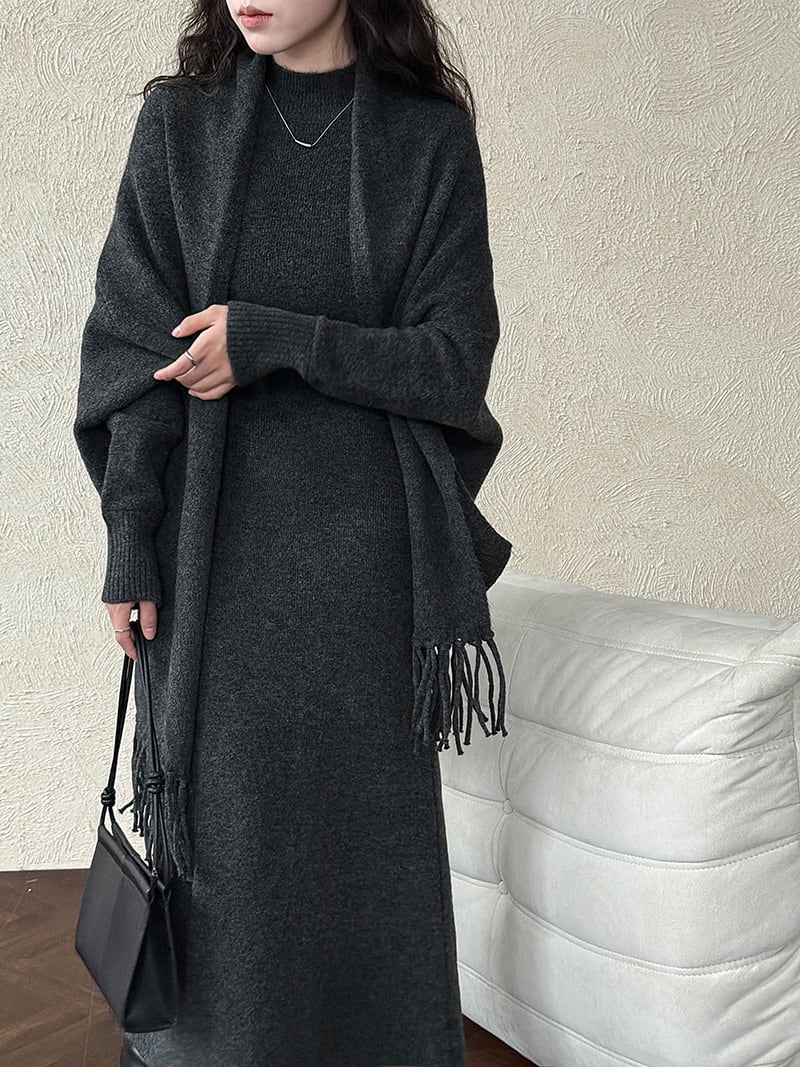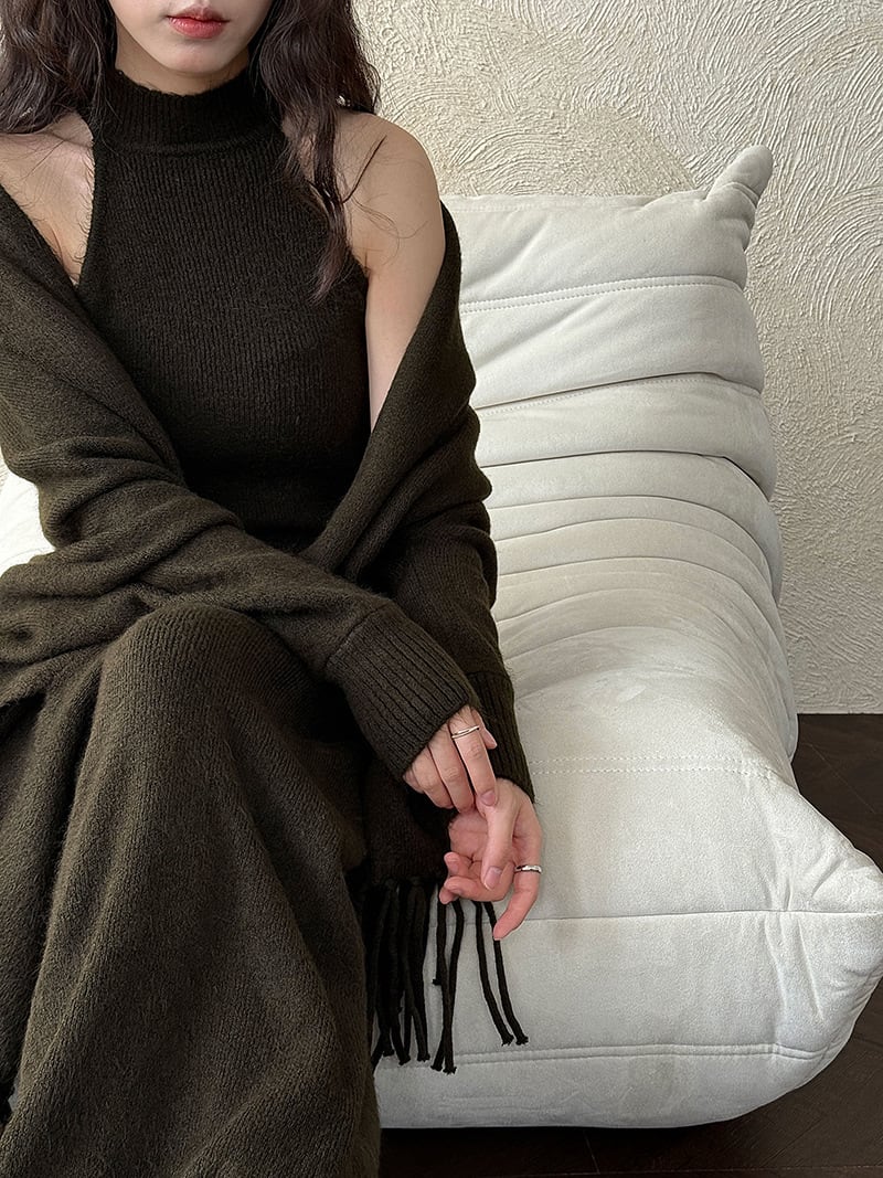 【set】ストール×ノースリーブニットワンピースセット N3472