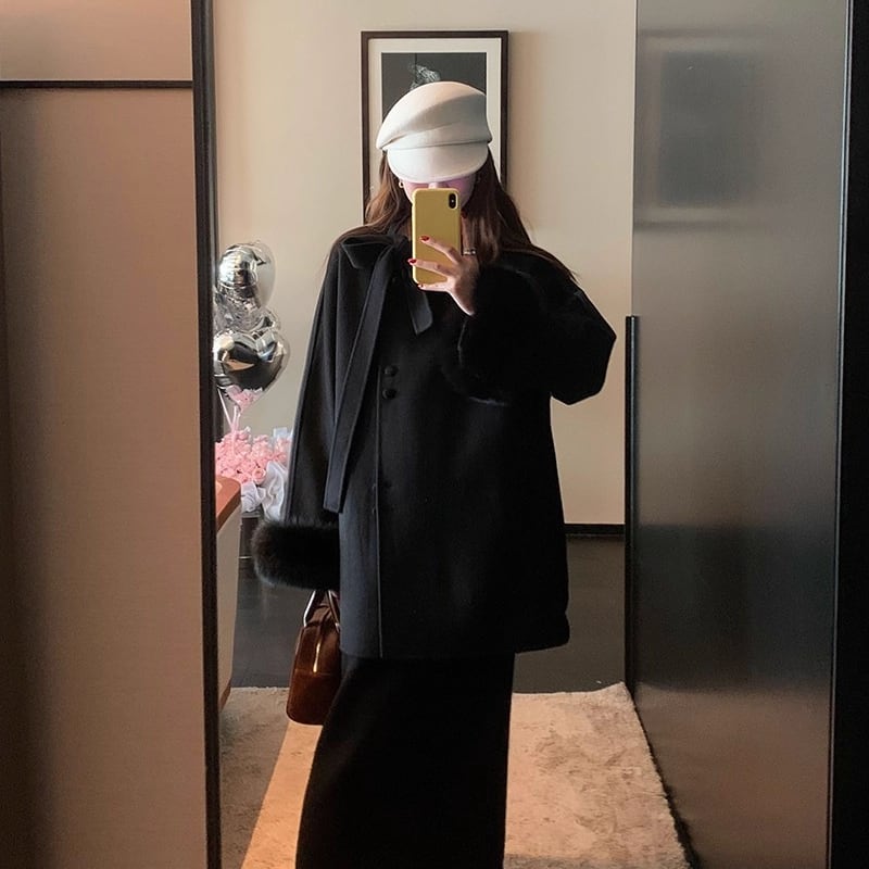 【outer】リボン付き袖ファーコート Q7172