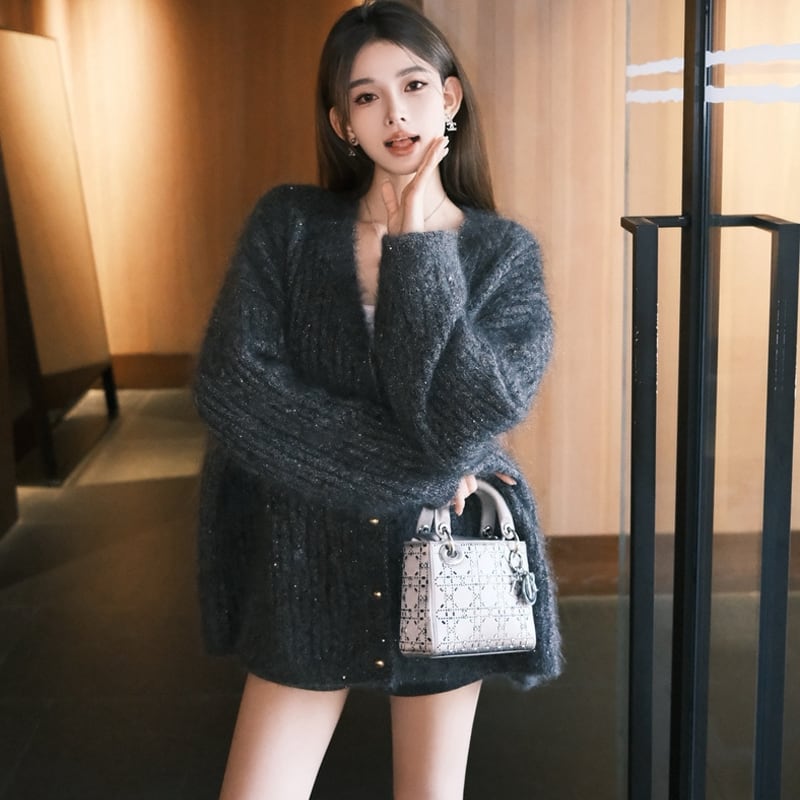 【outer】Vネックラメ入りニットカーディガン Q7180